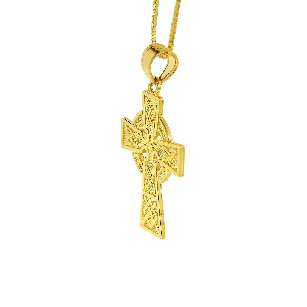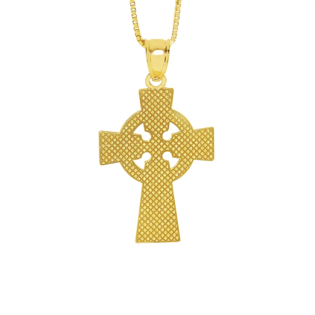 Precious Stars 14K Yellow Solid Gold Fancy Celtic Cross Unisex Religious Pendant with 22" Chain Necklace
