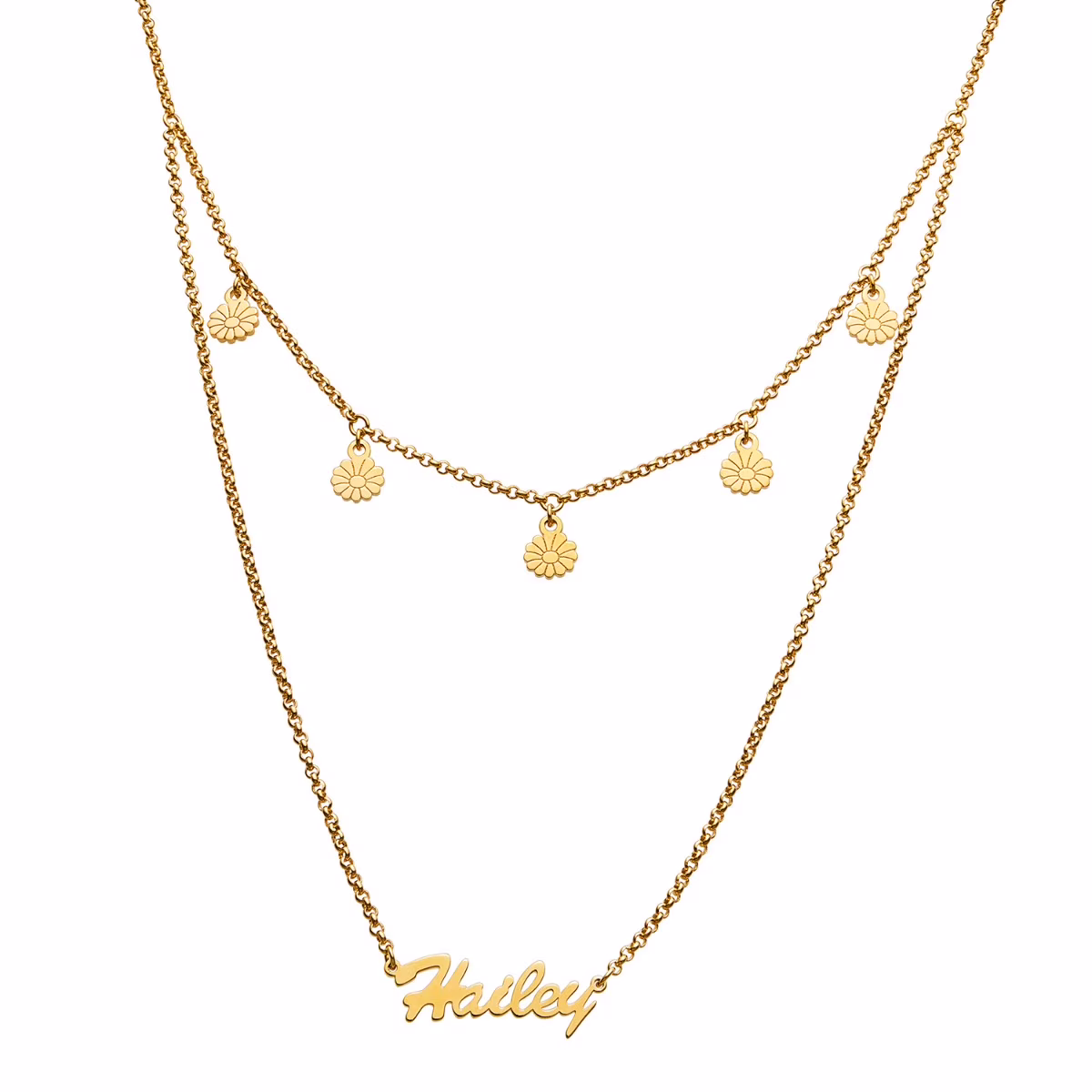 Personalized Planet Goldtone Layered Name Necklace with Flower Charms ,Women's