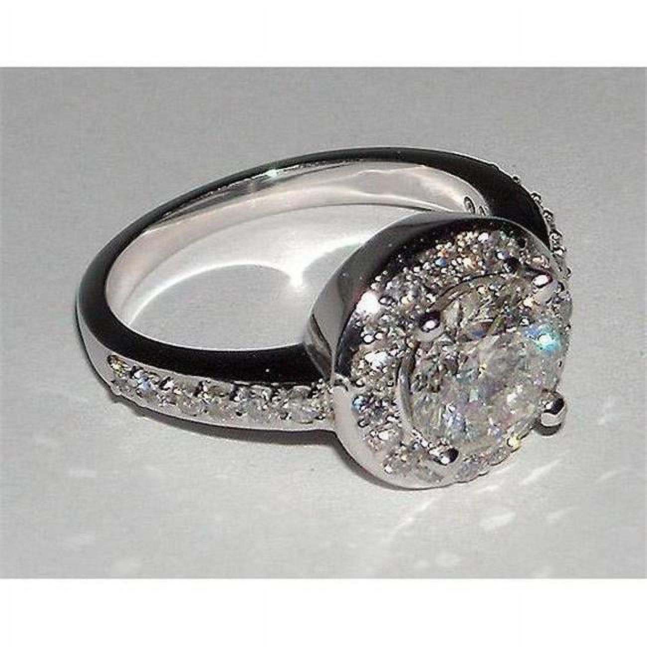 2.51 CT Round Diamond Pave Setting Engagement Ring, 14K White Gold - Size 6.5