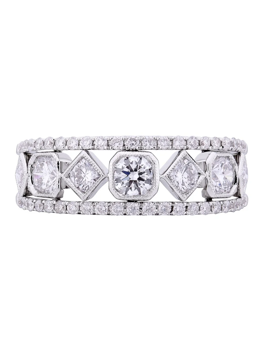 Pre-Owned Ross-Simons C. 1990 Vintage 2.25 ct. t.w. Pave Diamond Dome Ring in 18kt White Gold, Women's, Adult, (Good)