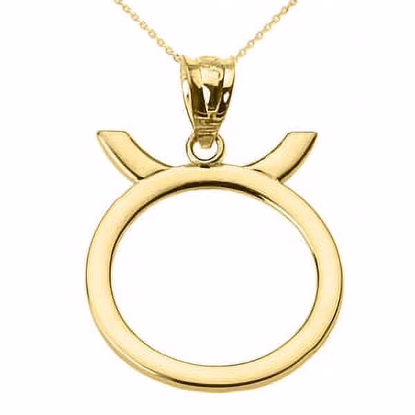 Yellow Gold Taurus May Zodiac Sign Pendant Necklace : Pendant with 20" chain