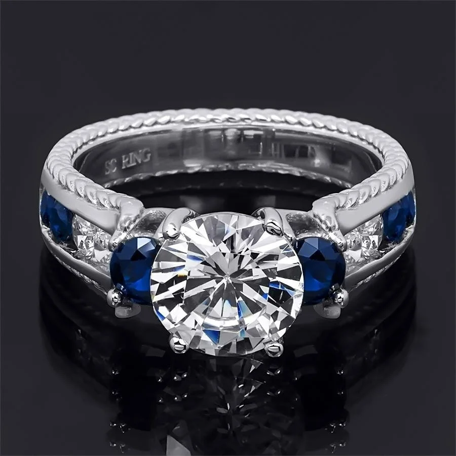 Majesty Diamonds 0.9 CTW Round Diamond 6-Prong Hidden Halo Solitaire Engagement Ring with Accents in 14K White Gold - Size 4.5