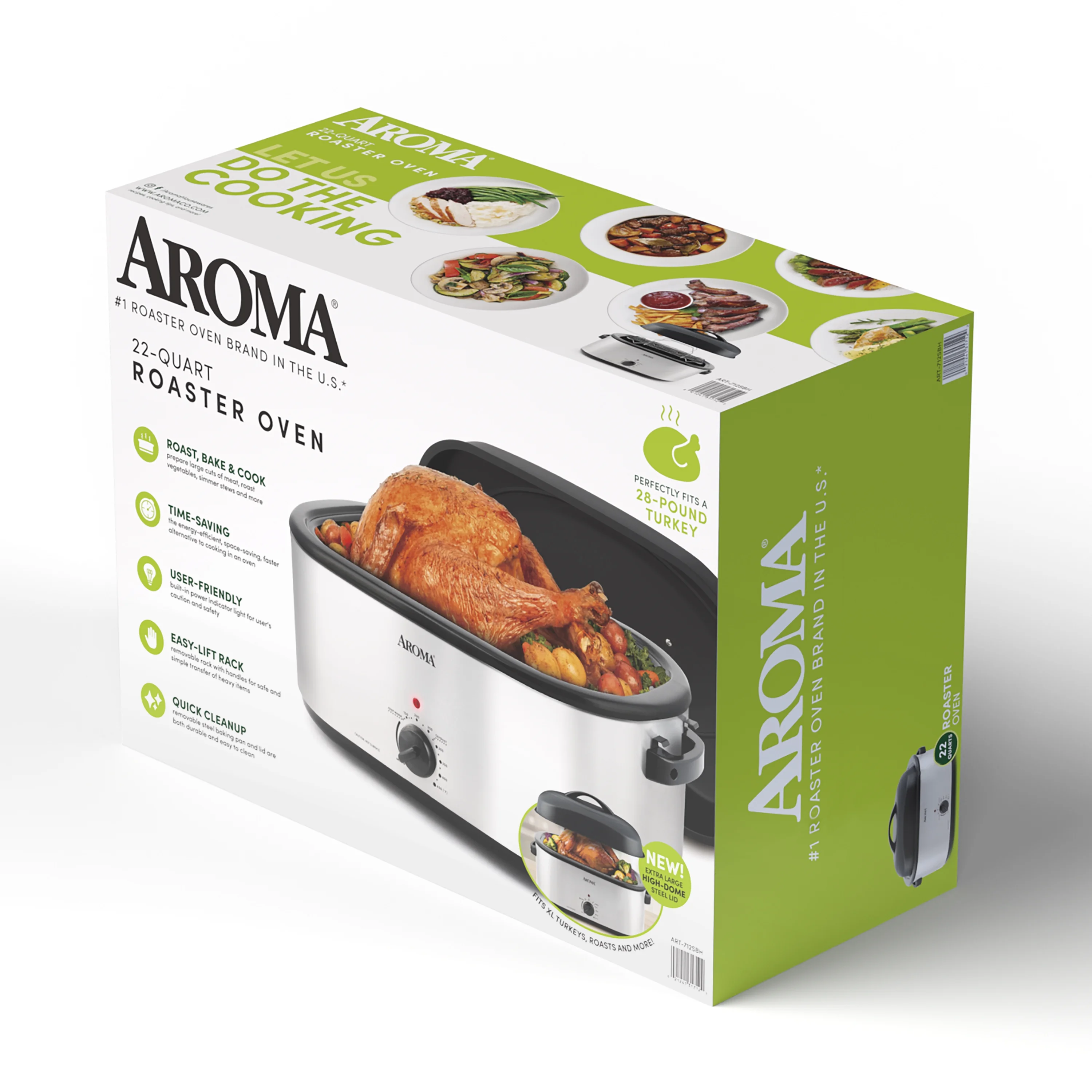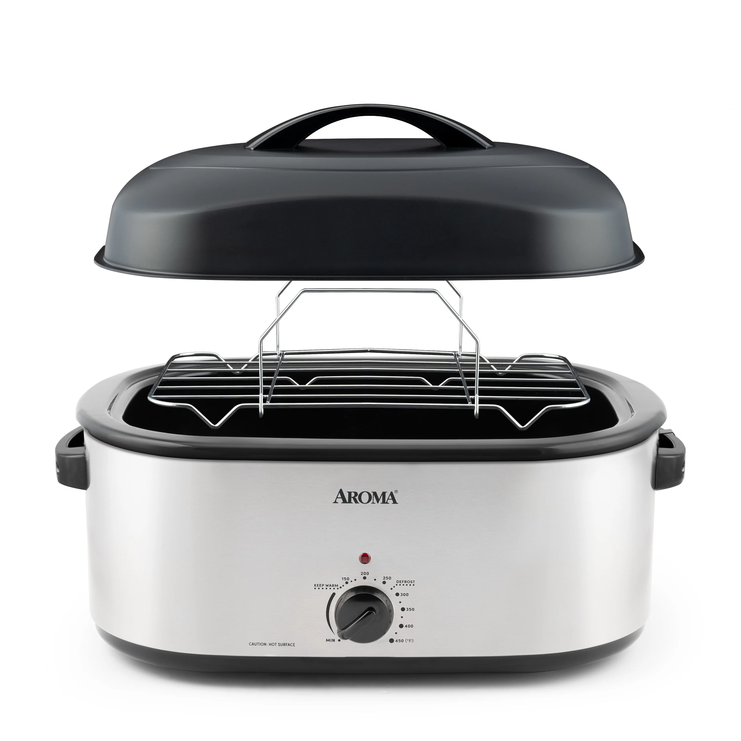 Aroma® 22 Quart Electric Roaster Oven with High-Dome & Self-Basting Lid, Stainless Steel