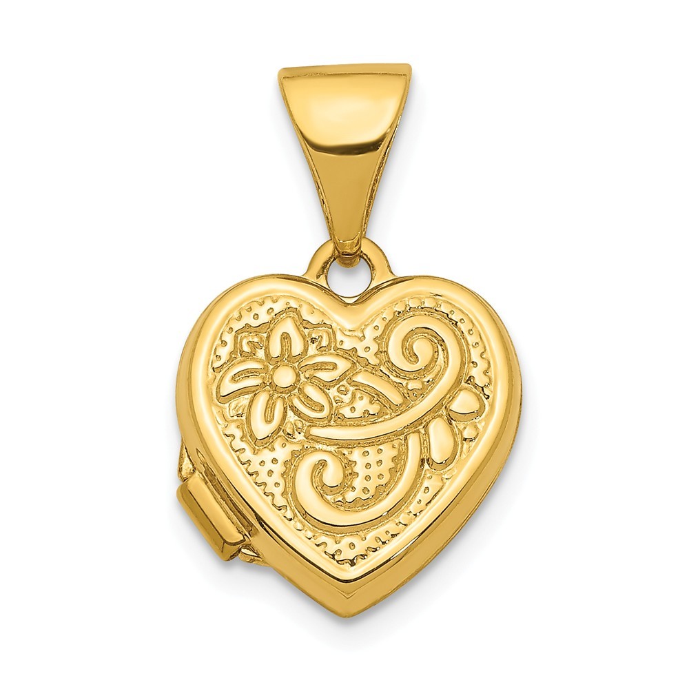 14k Engravable Gold 10mm Love Heart Locket Pendant Necklace Jewelry Gifts for Women - .6 Grams