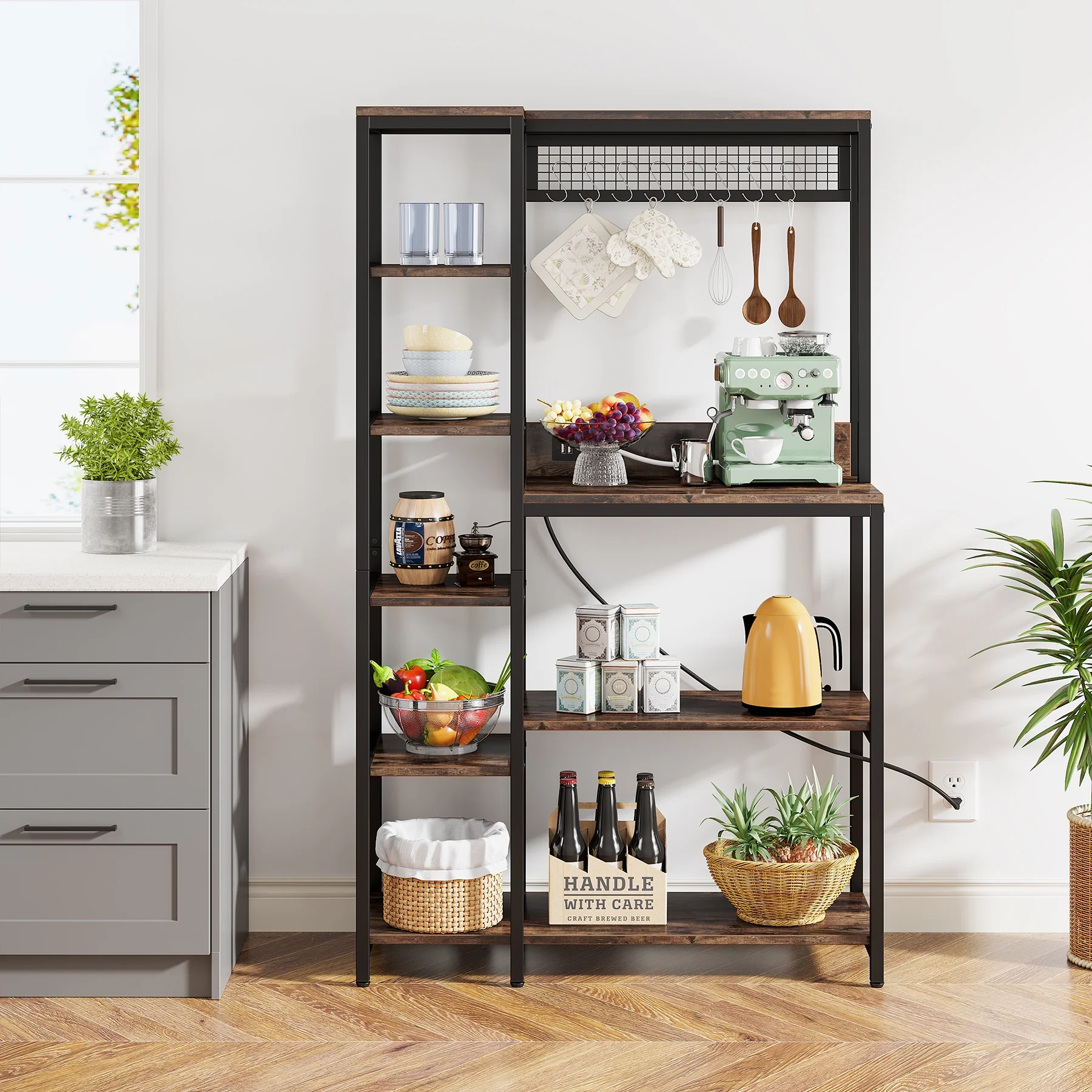 Tribesigns Kitchen Bakers Rack with Power Outlets, 10-Tier Microwave Oven Stand with Storage