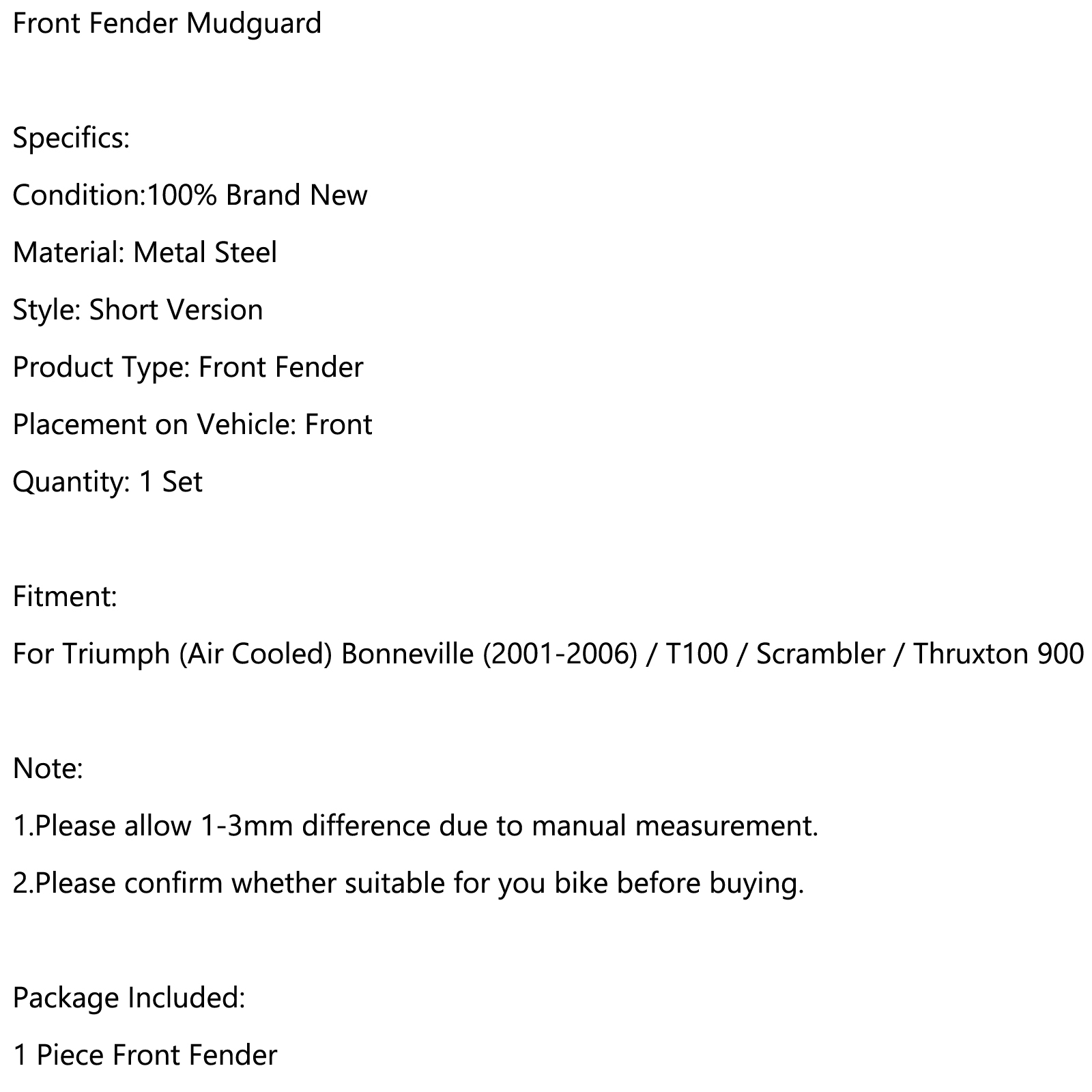 Motor Genic Short Front Fender Mudguard For Triumph Bonneville T100 Scrambler Thruxton 01-16