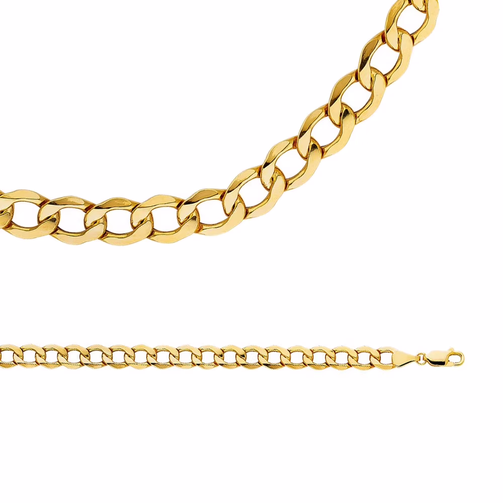 Cuban Necklace Solid 14k Yellow Gold Chain Bevelled Hollow Curb Links Genuine Light, 6.7 mm - 20 inch