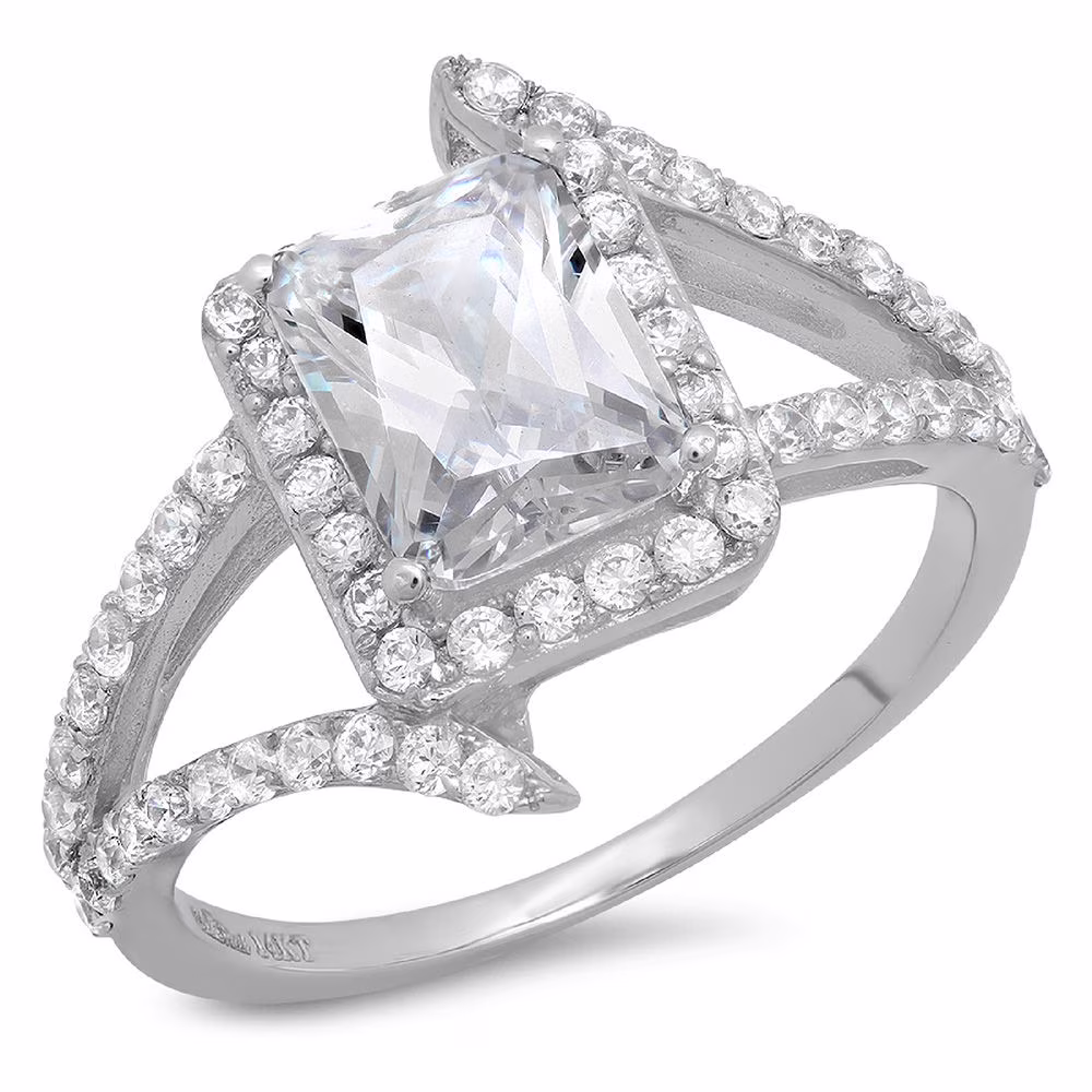 2.1 ct emerald cut clear simulated diamond 18k white gold anniversary engagement halo ring size 5.25