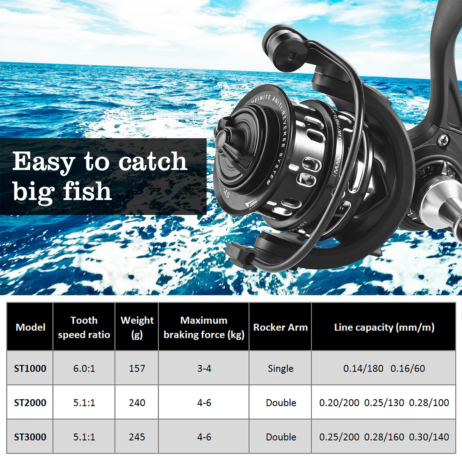 Andoer Fishing Reels Spinning Carbon Fiber Fishing Wheel for Saltwater and Freshwater