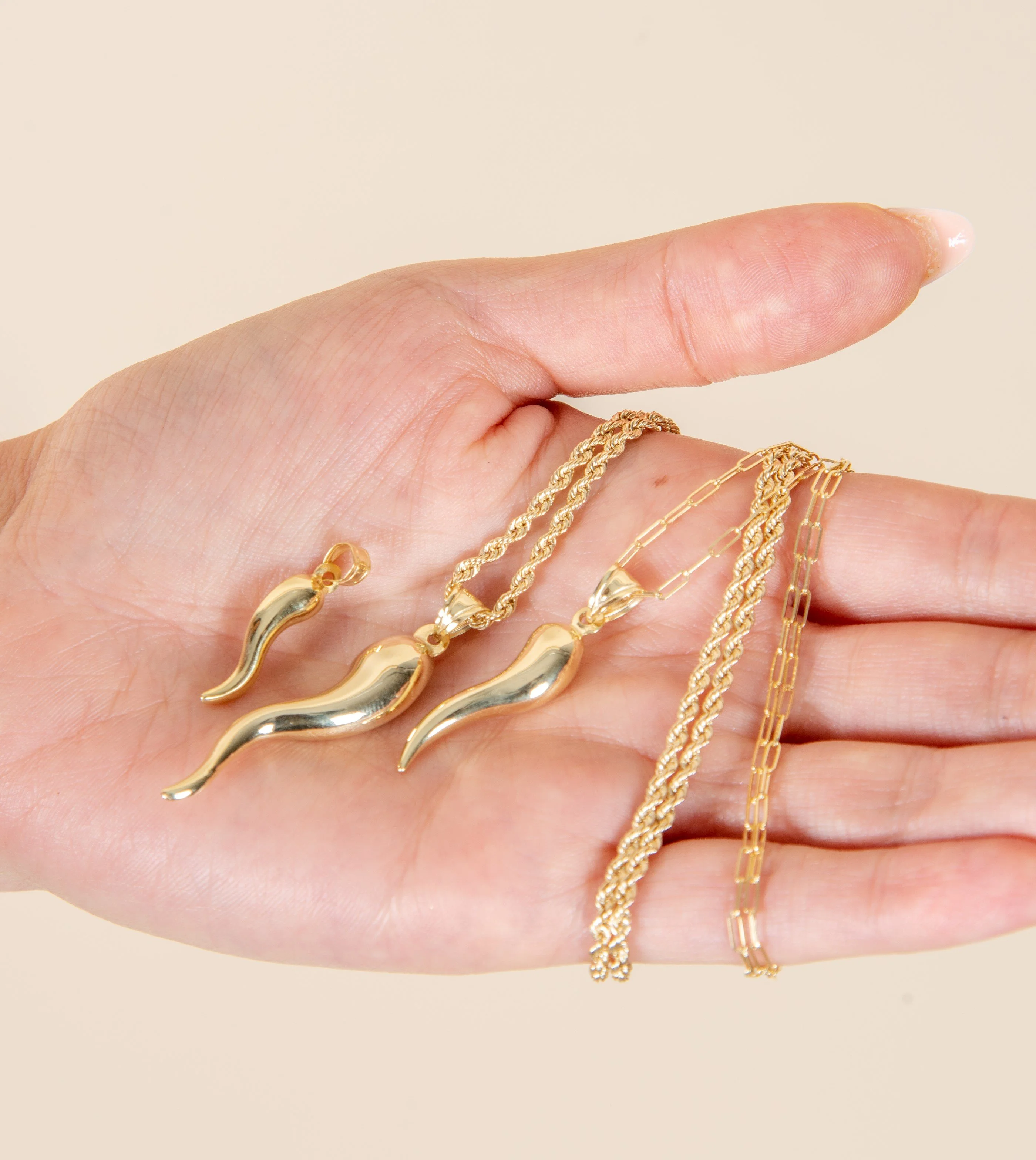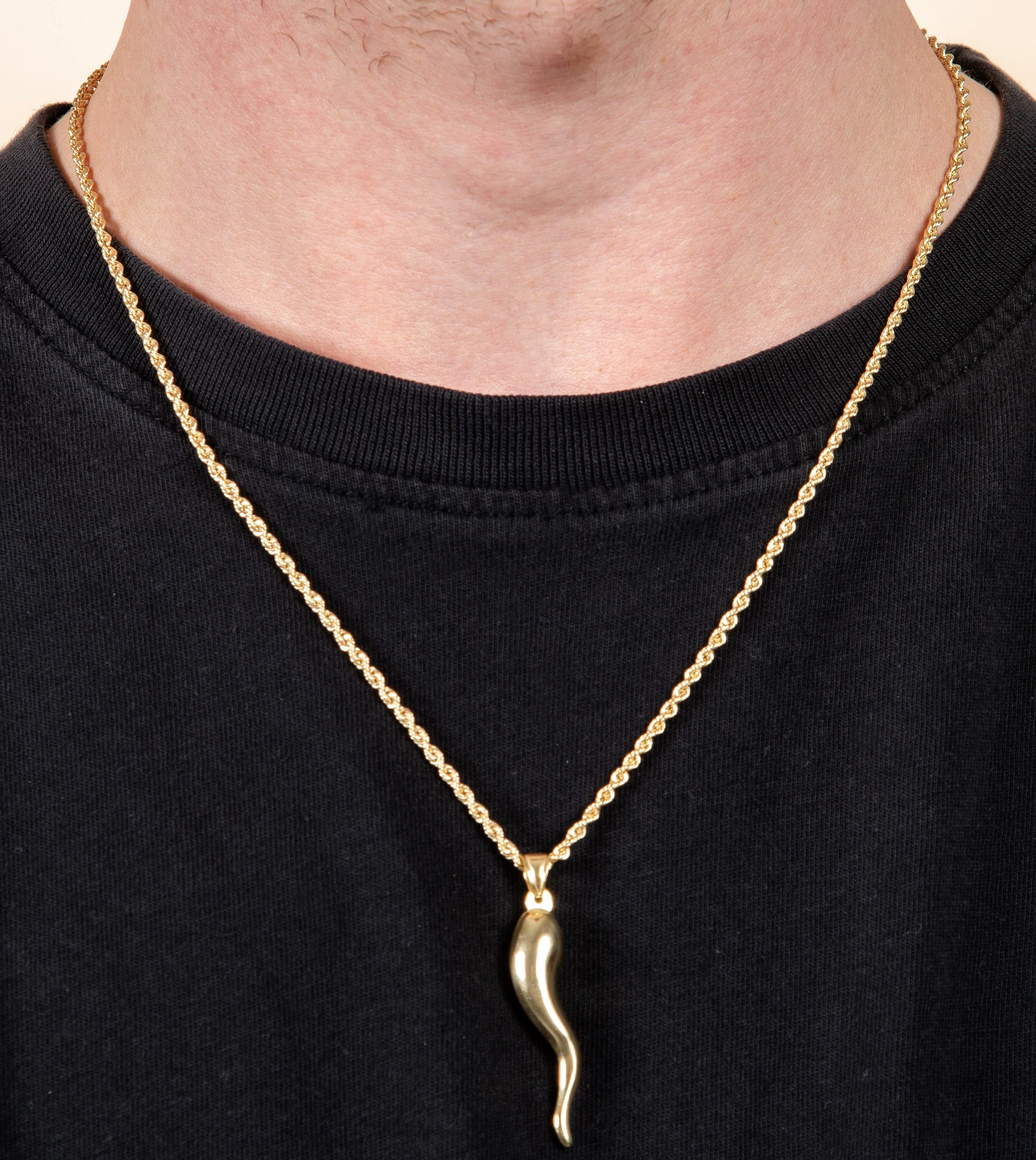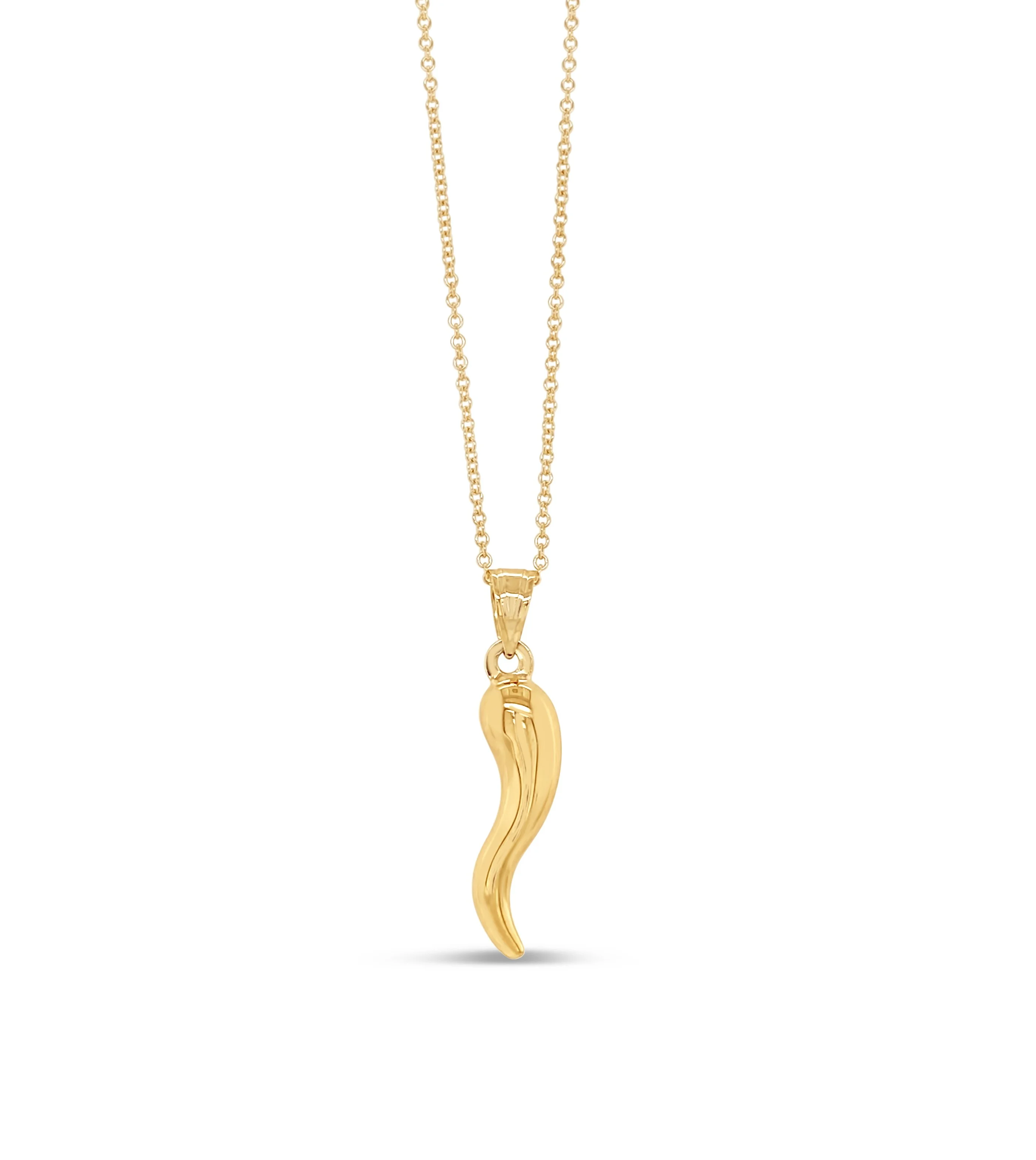 Olive & Chain 14k Yellow Gold Cornicello Italian Horn Charm Necklace 24inch for Men & Women