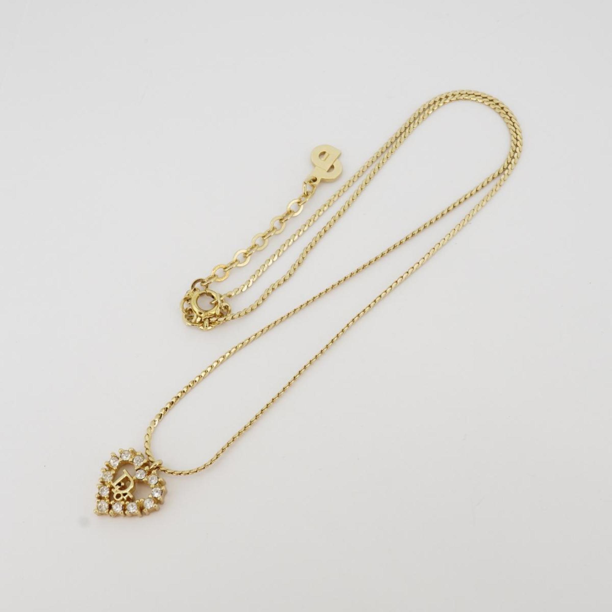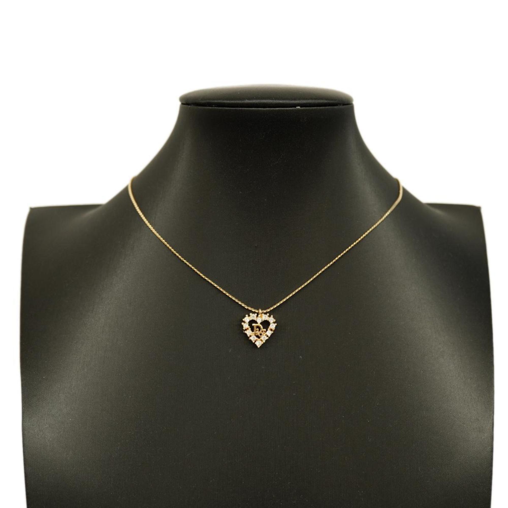 Pre-Owned Christian Dior Necklace Heart Motif Rhinestone GP Plated Gold Ladies (Good)