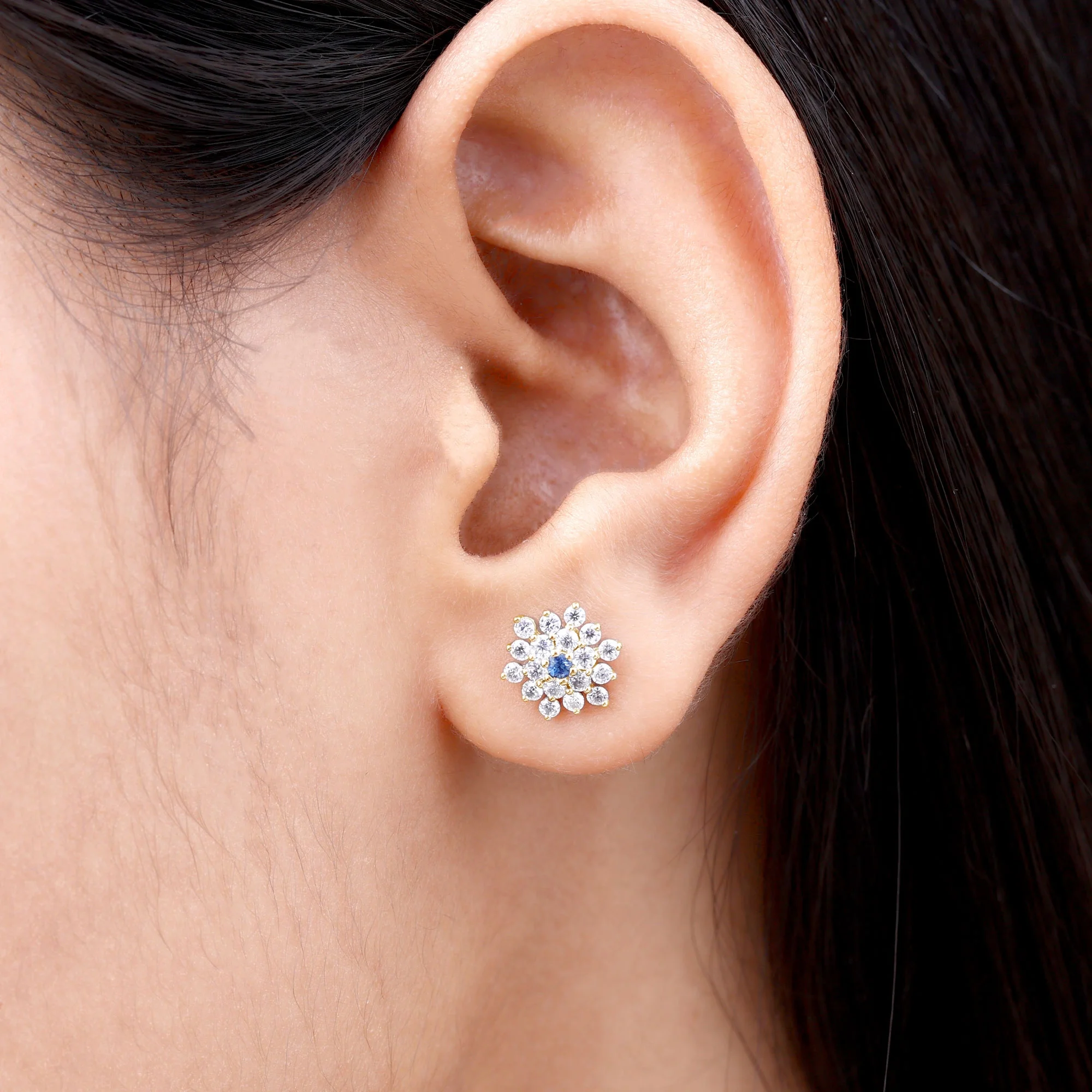 Statement Blue Sapphire Floral Earrings with Diamond for Women (1.25 CT), 10K Yellow Gold