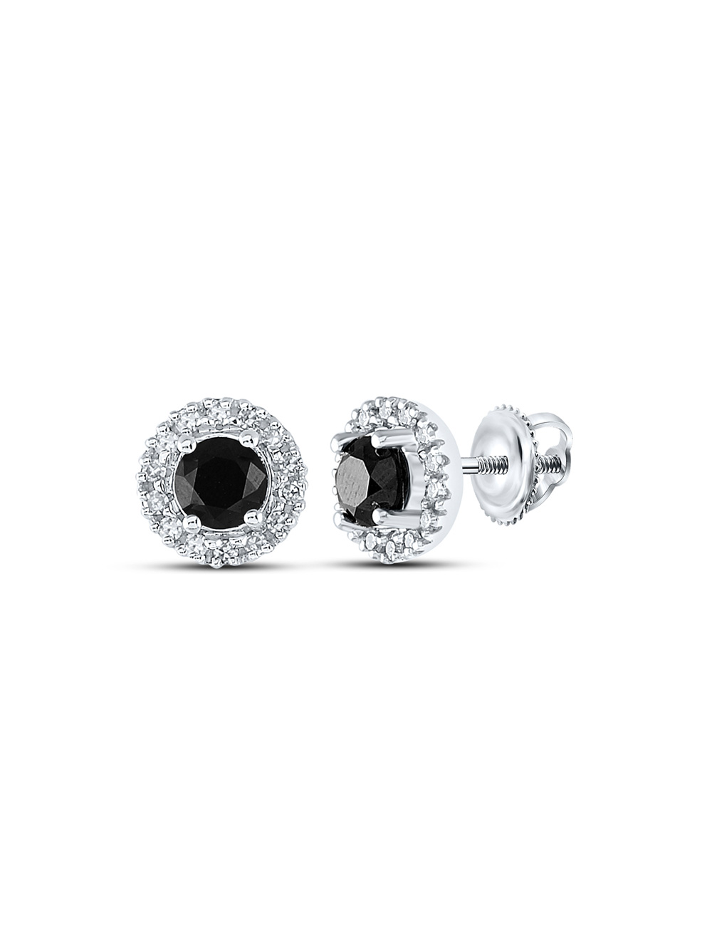 3Gems Jewelers 10kt White Gold Womens Round Black Color Enhanced Diamond Stud Earrings 1 Cttw