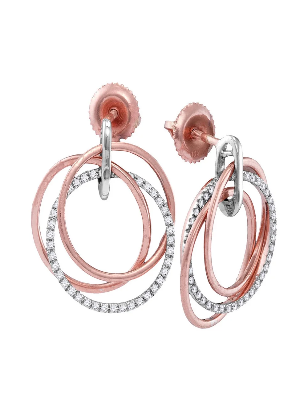 3Gems Jewelers 10kt Rose Gold Womens Round Diamond Circle Dangle Earrings 1/4 Cttw