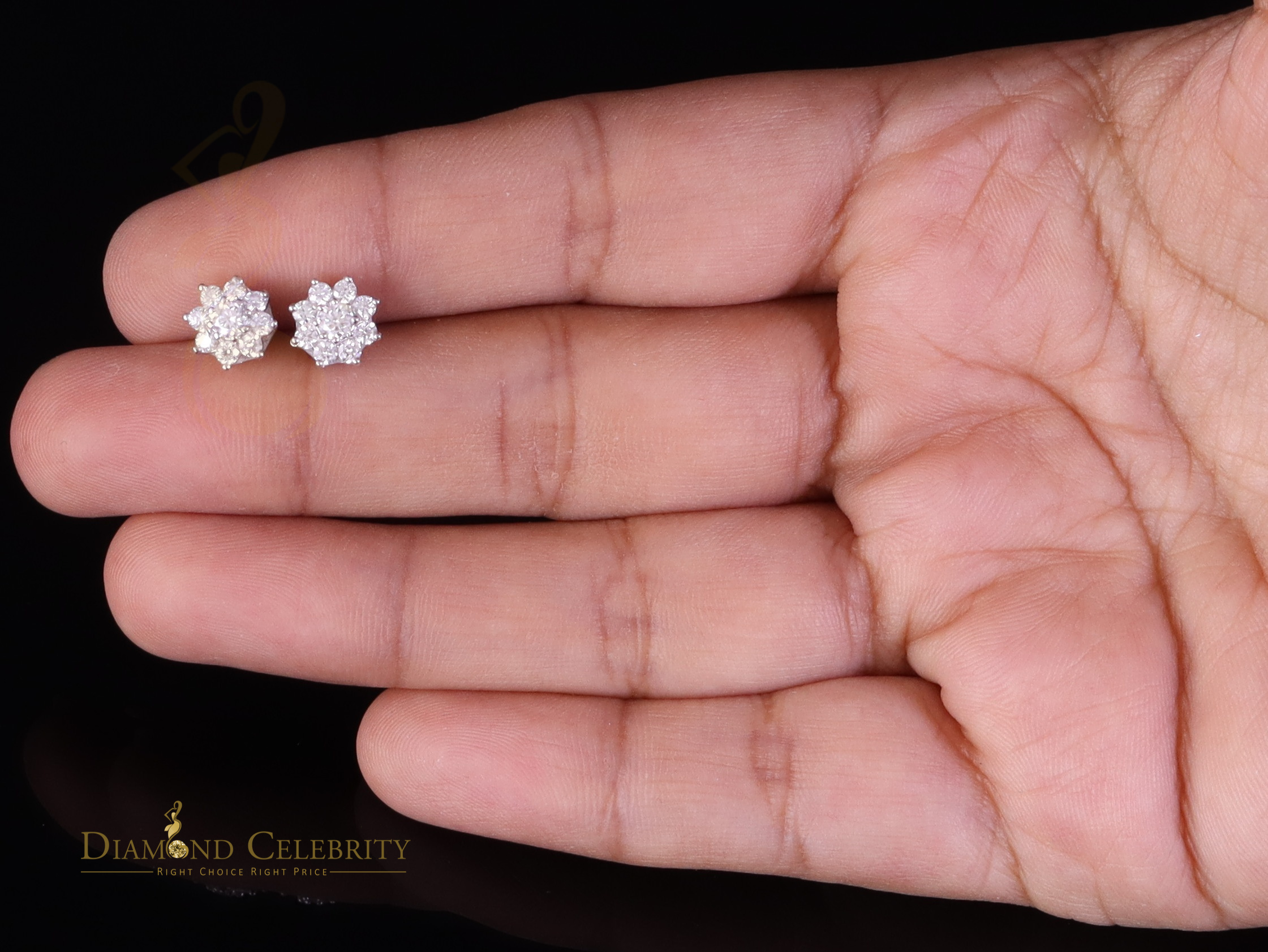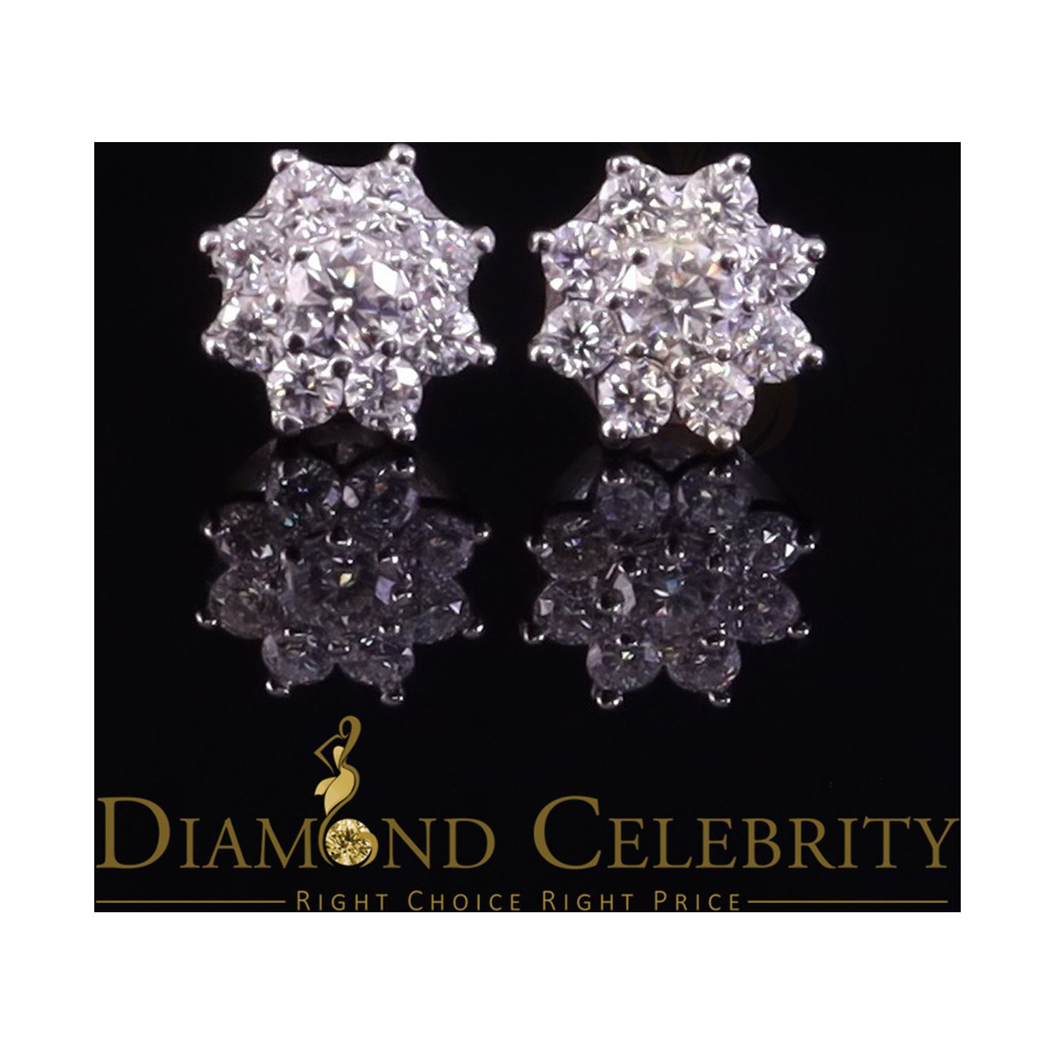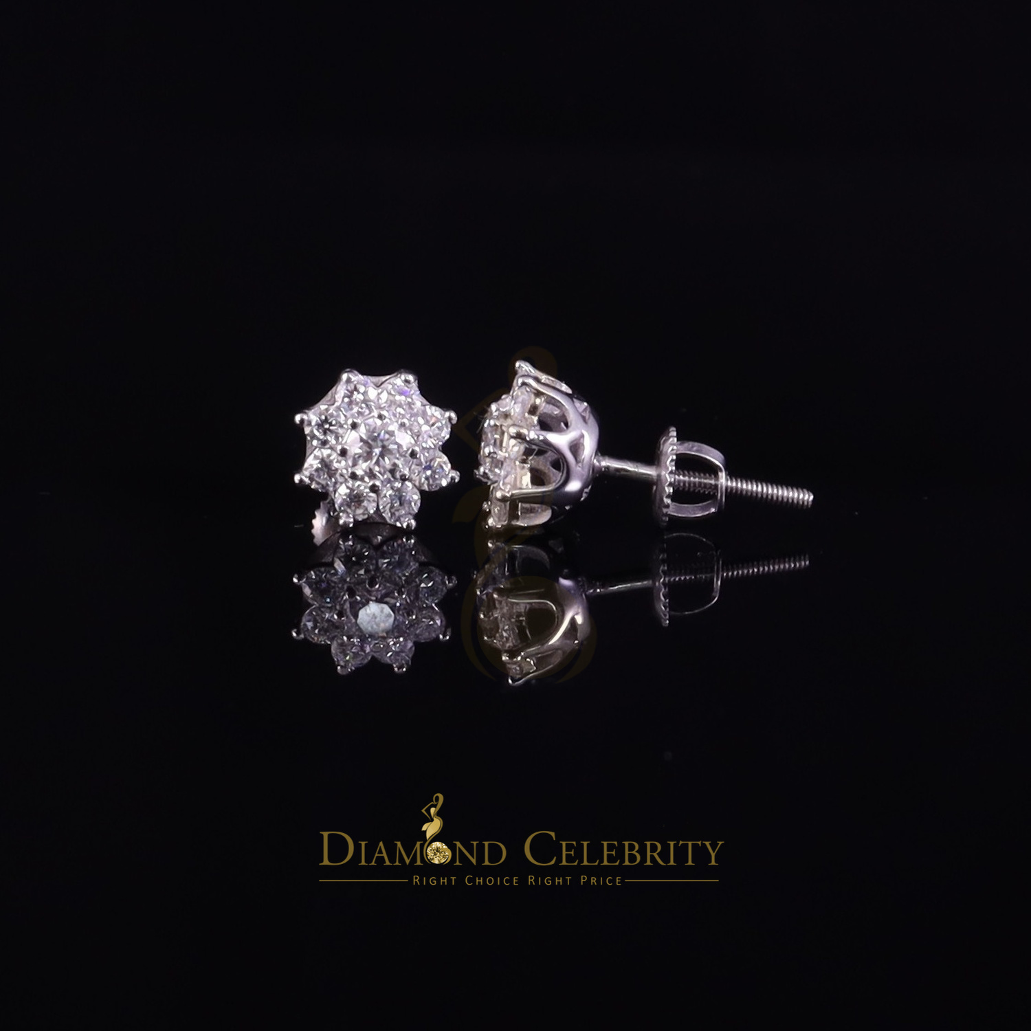 Diamond Celebrity's Floral Stud Earrings for Men's/Womens 925 Silver White 1.00ct VVS 'D' Moissanite