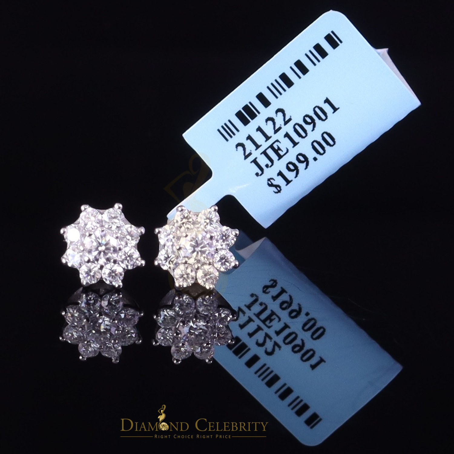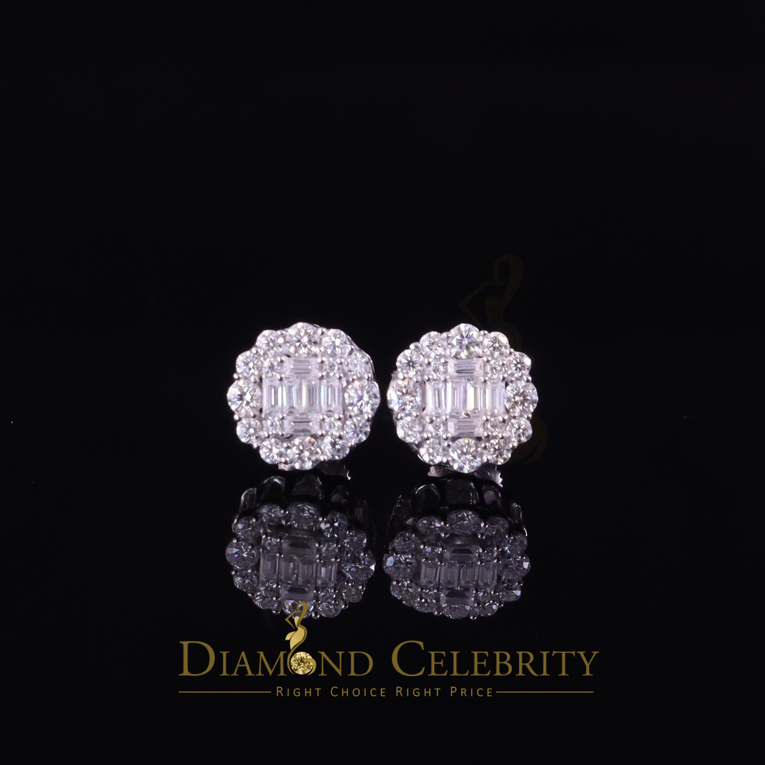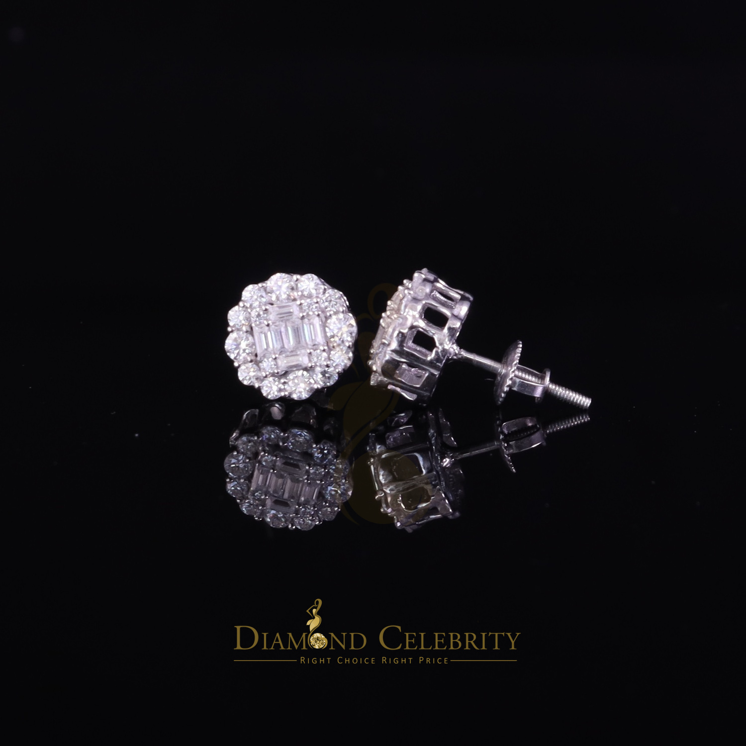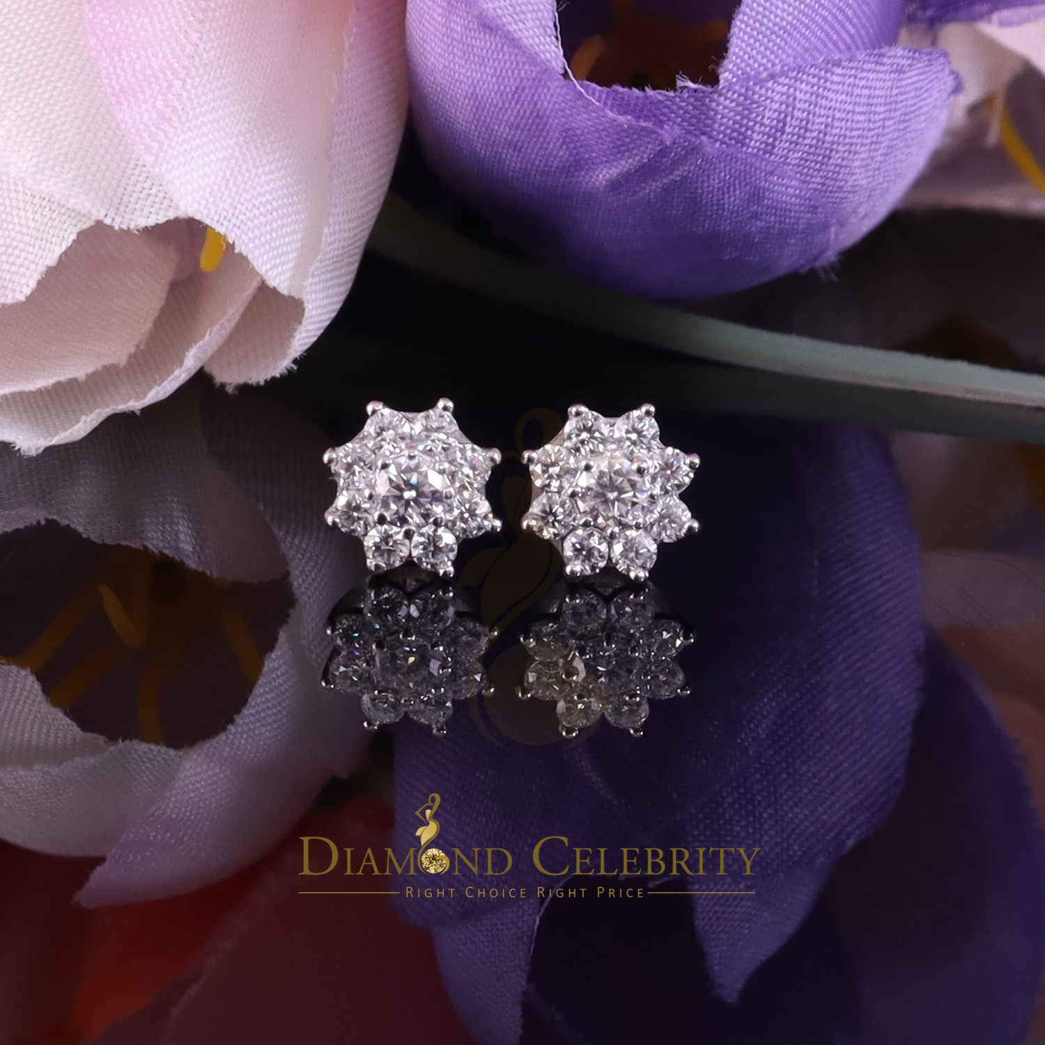 Diamond Celebrity's Floral Stud Earrings for Men's/Womens 925 Silver White 1.00ct VVS 'D' Moissanite