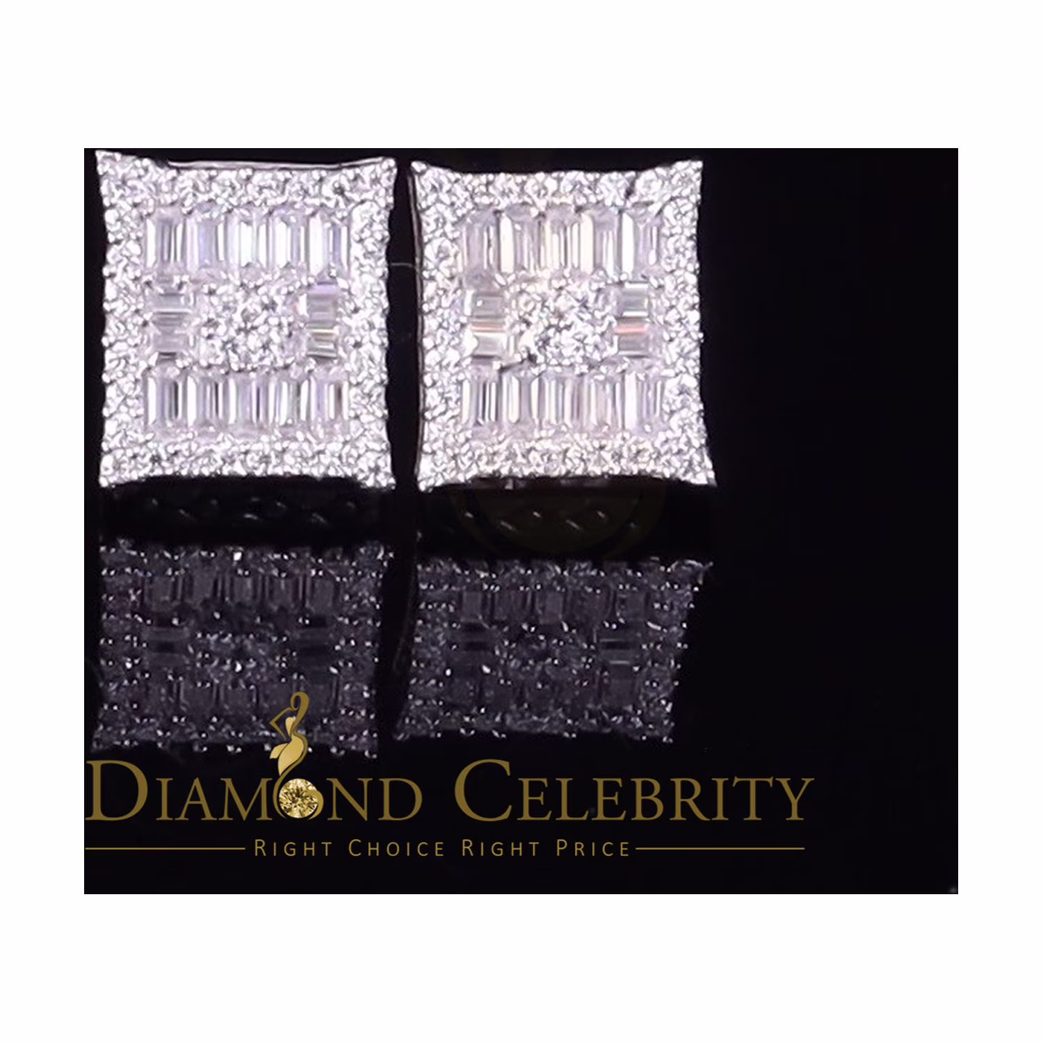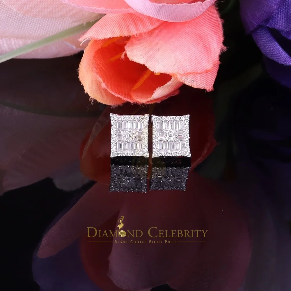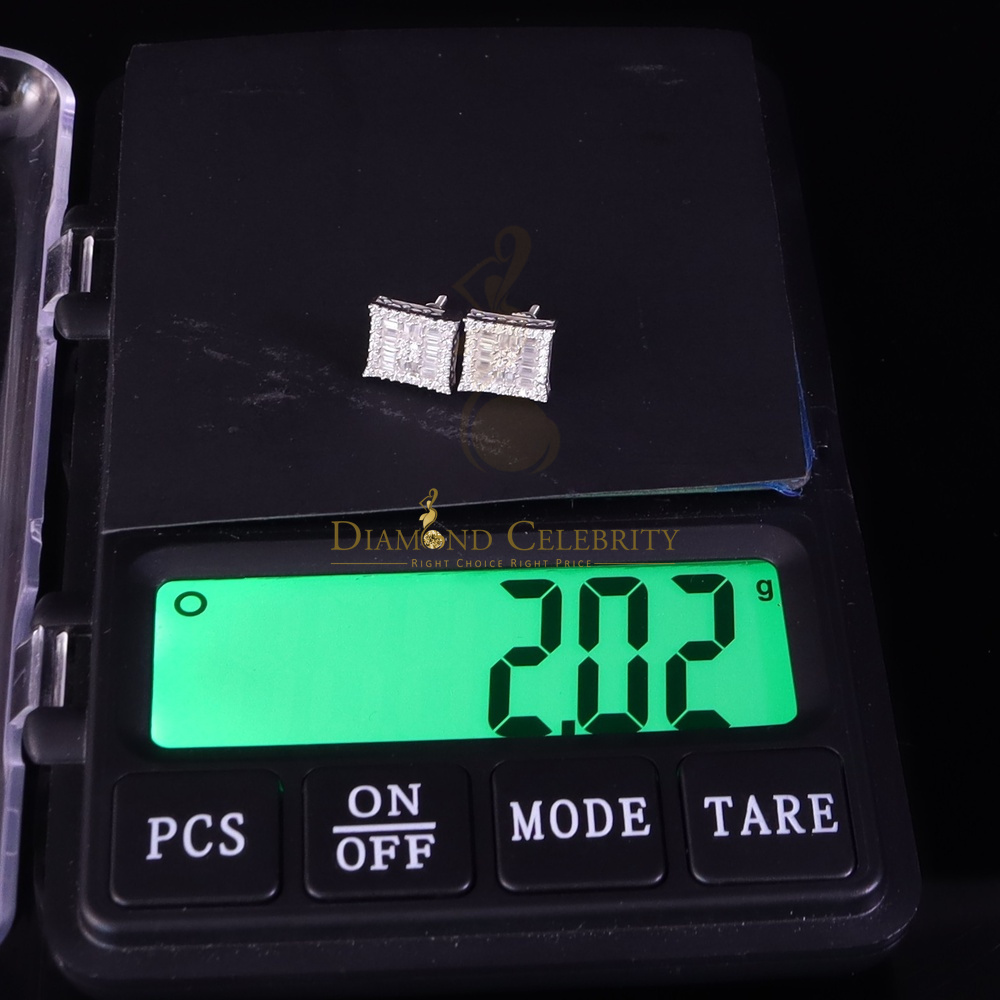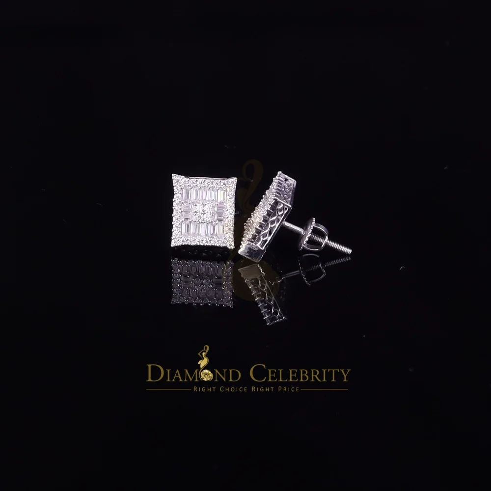 Diamond Celebrity's Men's/Women's 925 Silver White 1.00ct VVS 'D' Moissanite Baguette Stud Earrings
