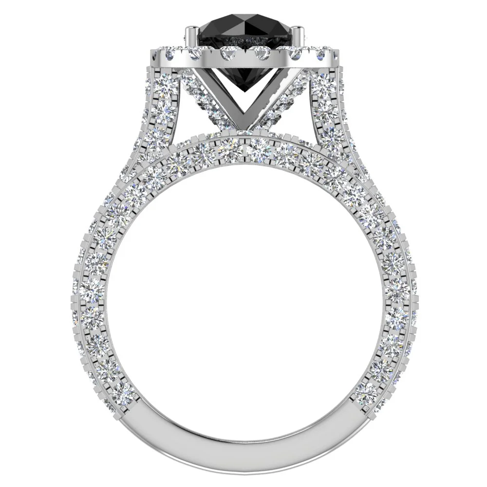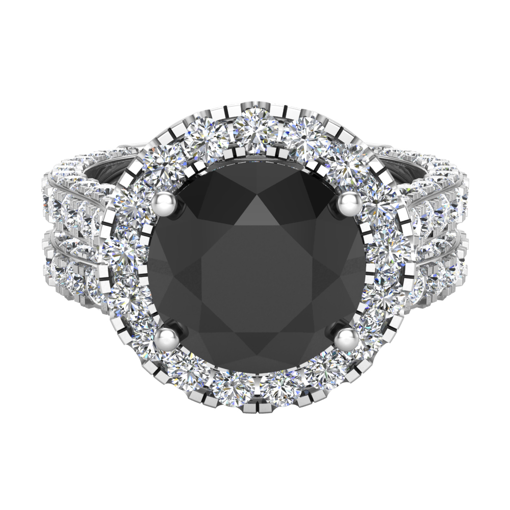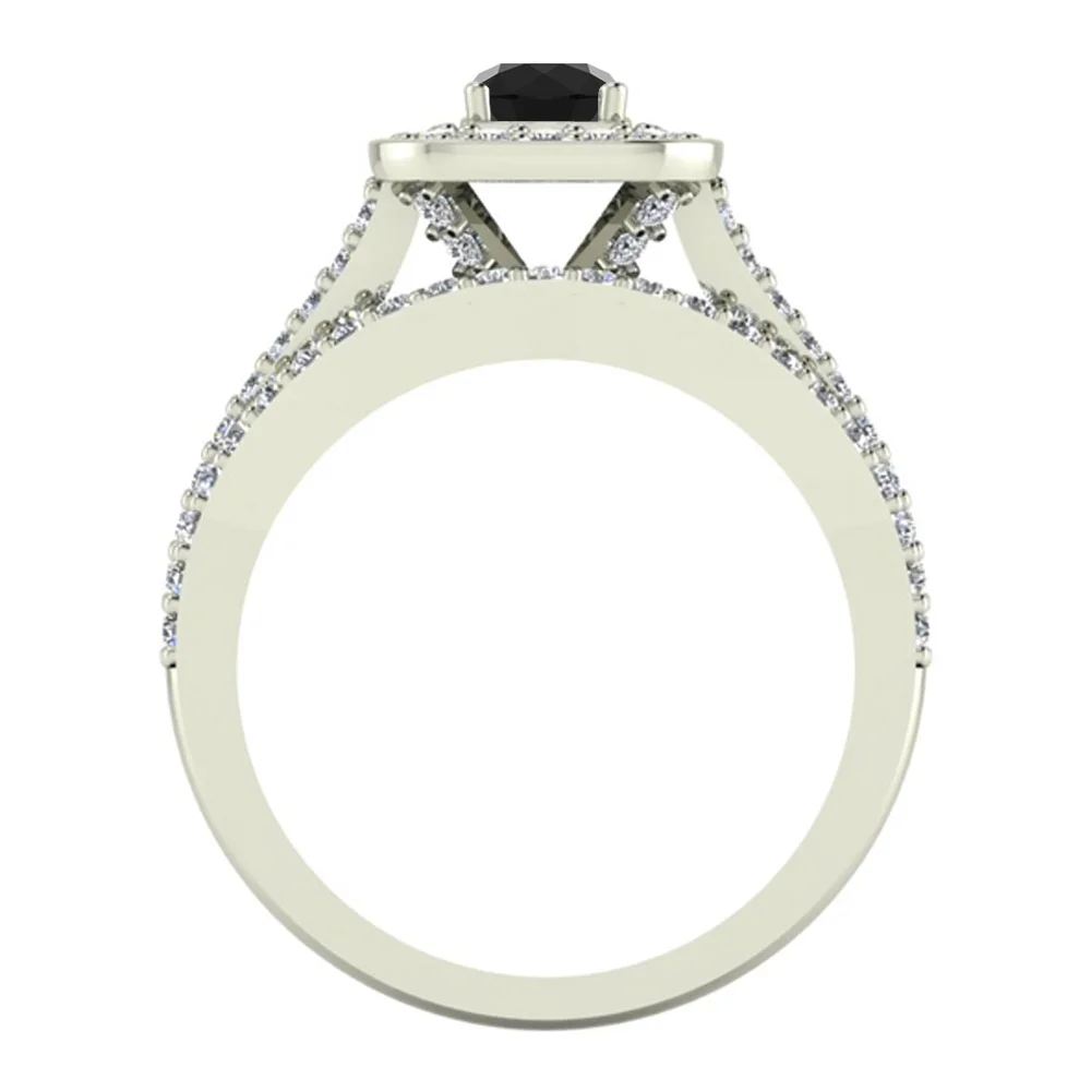 Black Diamond Wedding Ring Set 18K White Gold Halo Rings for Women 8.00 MM 5.90 Carat ( G , VS1 )