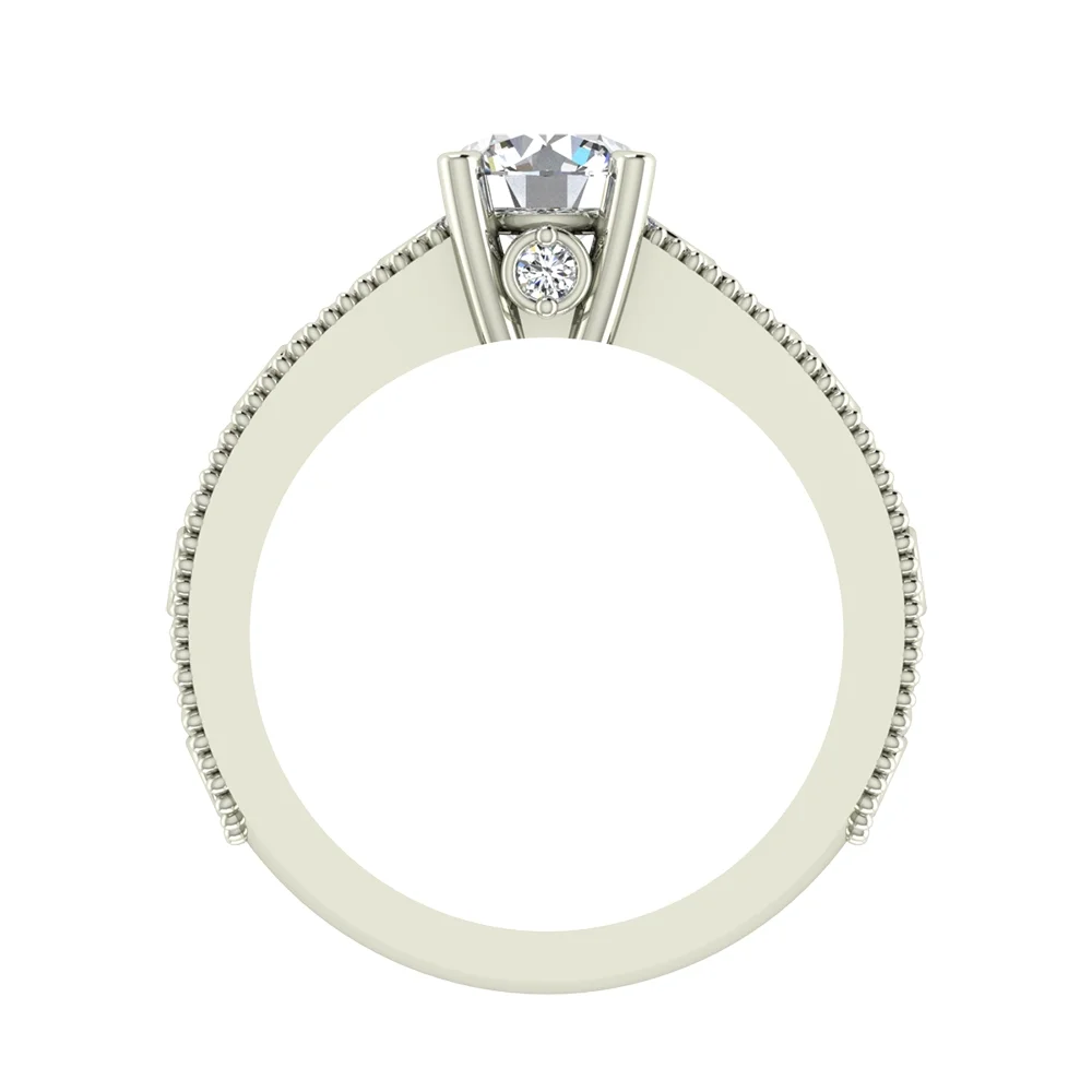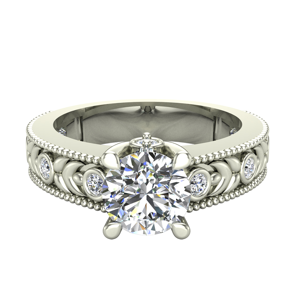 Solitaire Diamond Engagement Ring for Women Embellished Shank GIA certified Round brilliant 18K White Gold 1.35 carat (G,VS1)