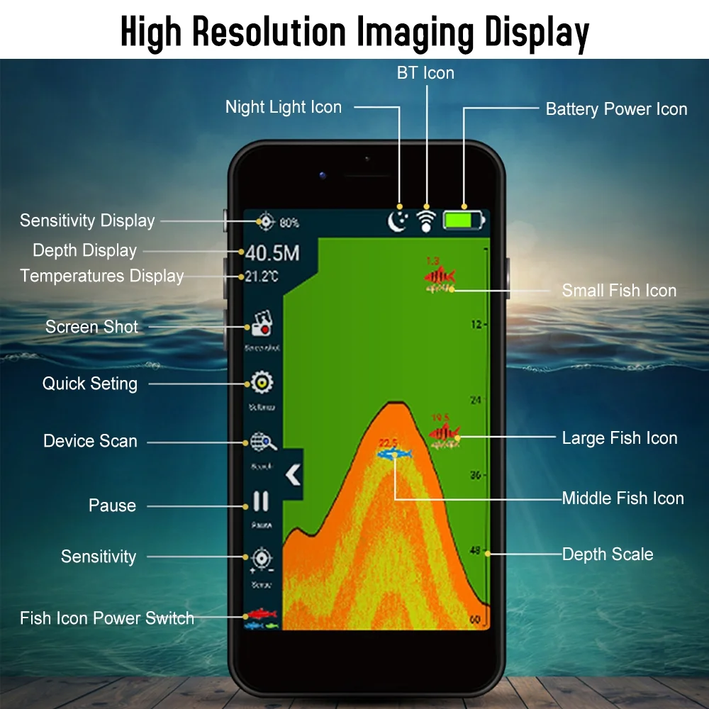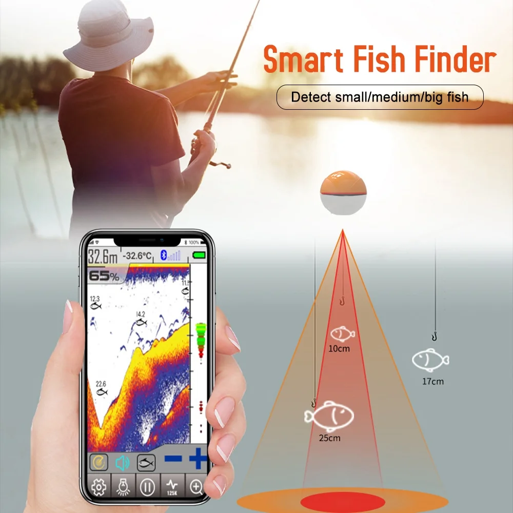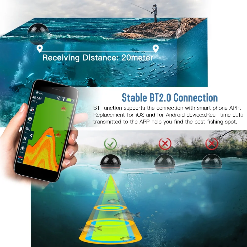 Andoer Wireless BT Smart Fish Finder Portable Sonar Fishfinder for Kayak Boat Fishing