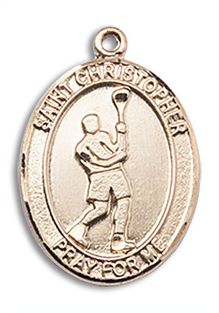 Extel Medium 14kt Gold Filled St. Christopher Lacrosse Medal Pendant Necklace Charm for Lacrossse Player