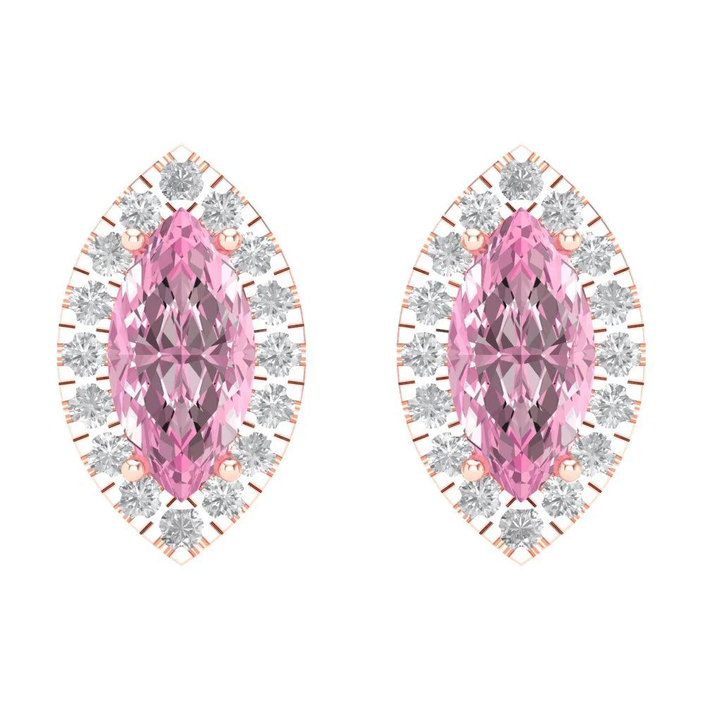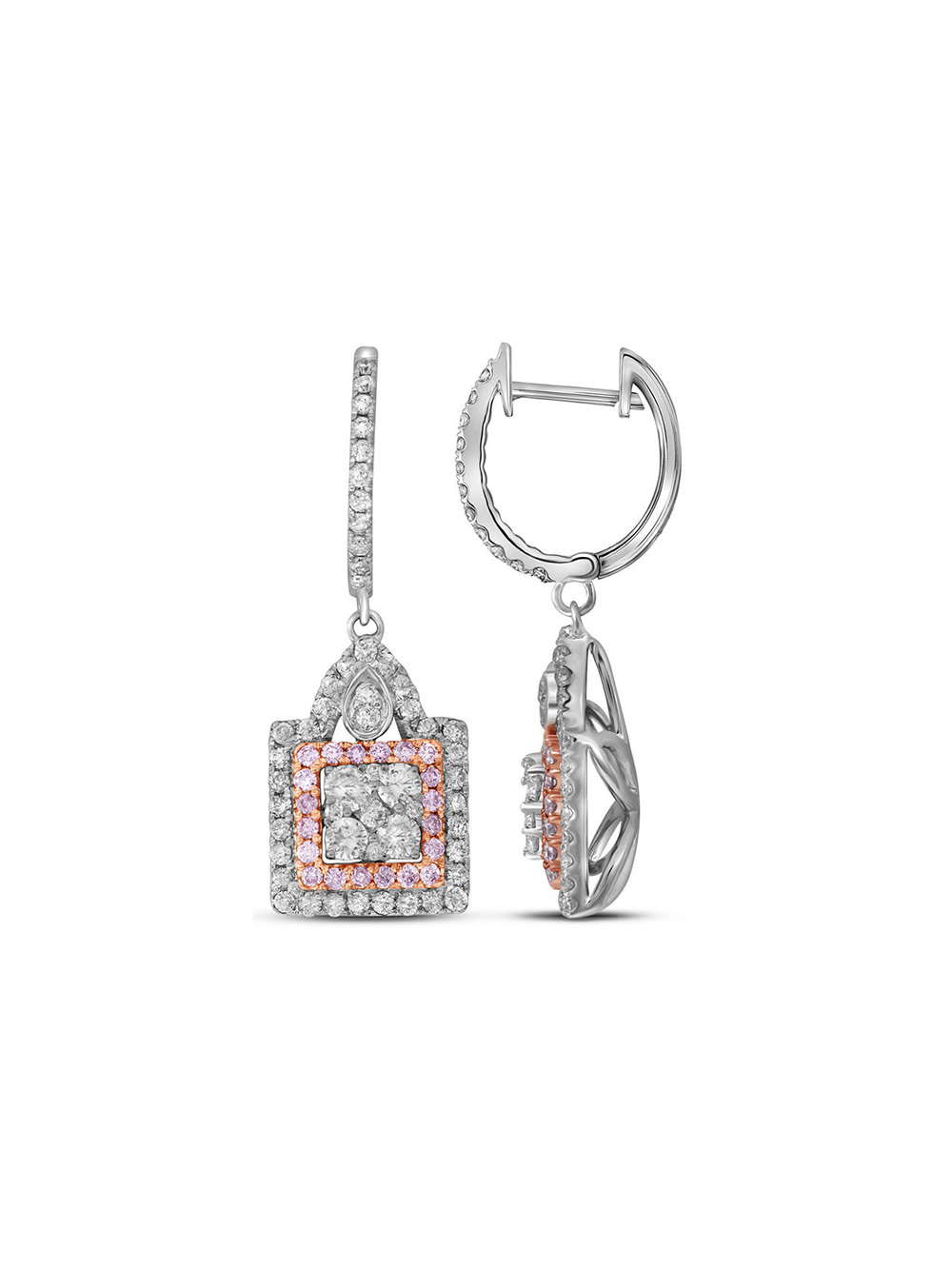 3Gems Jewelers 14kt White Gold Womens Round Pink Diamond Square Cluster Dangle Earrings 1 Cttw
