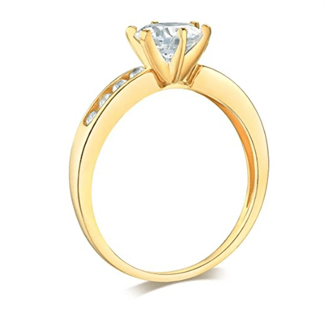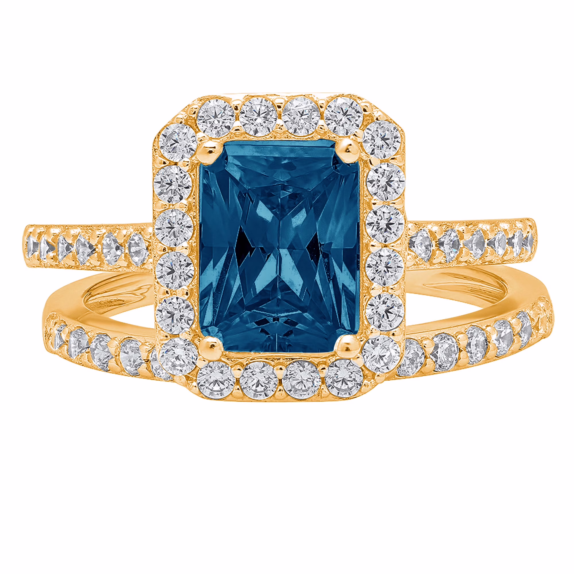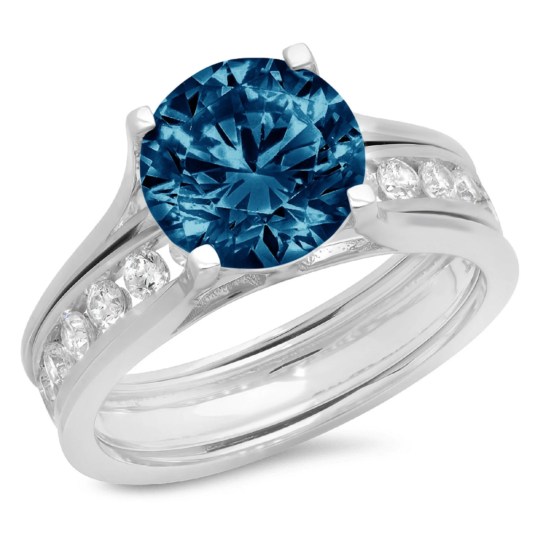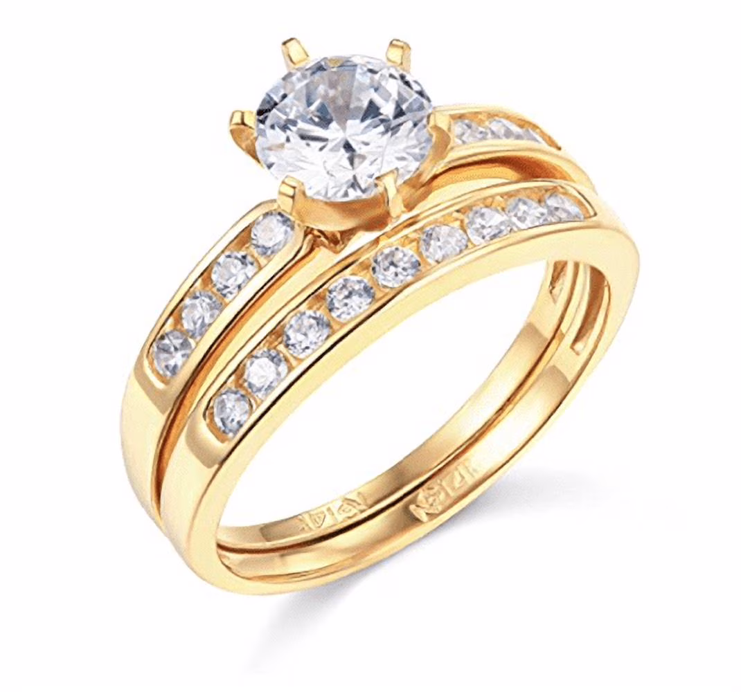2.10 Ct Round Cut Real 14K Yellow Gold Engagement Wedding Ring Set Matching Band