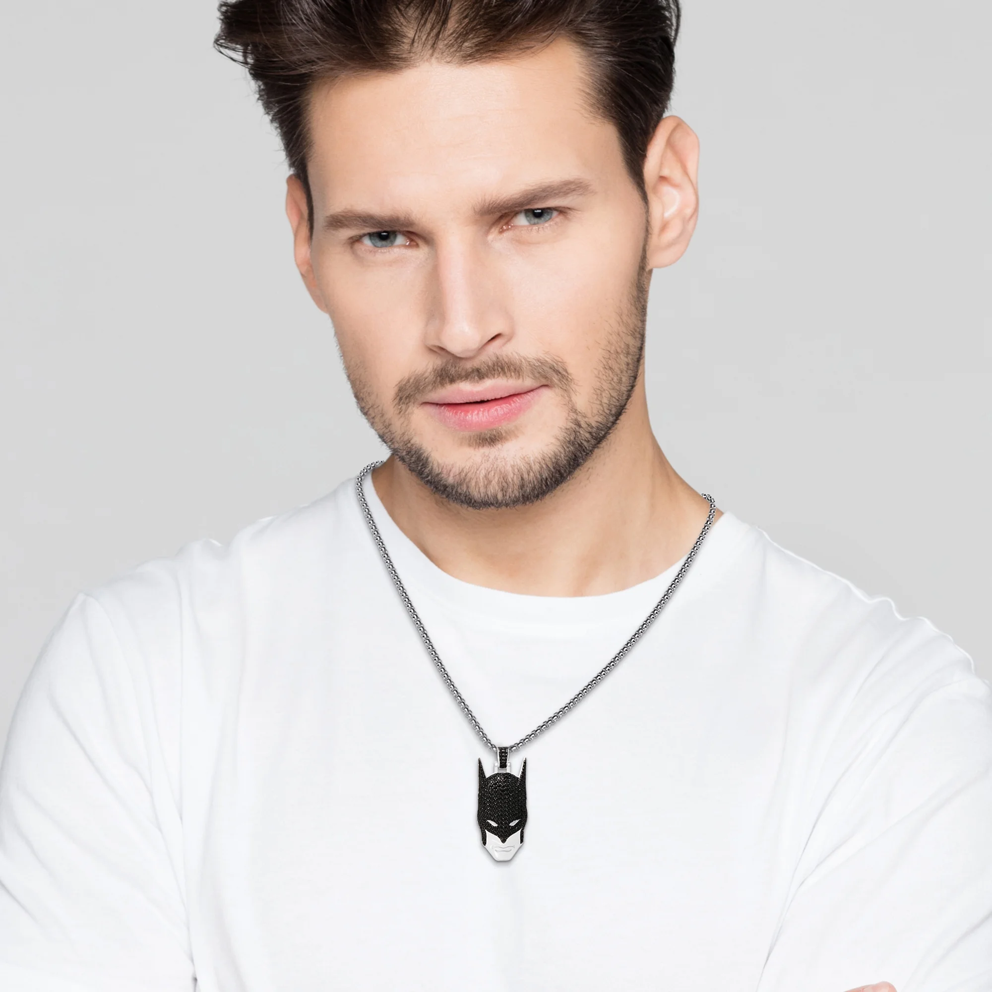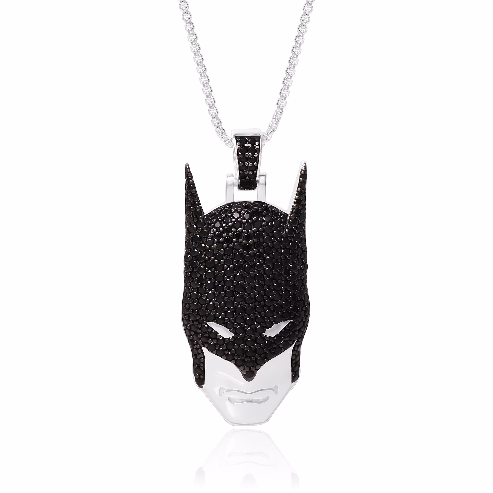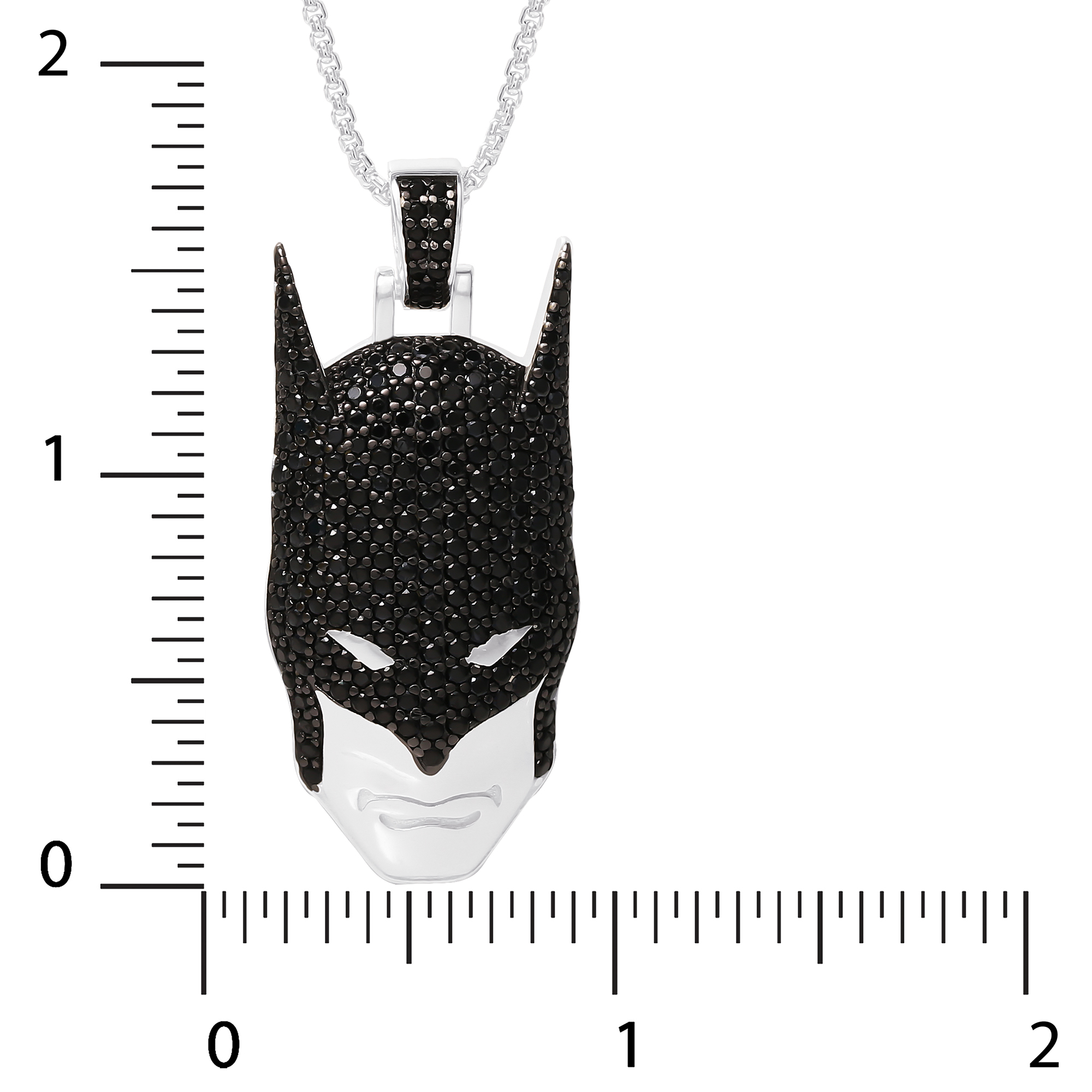 Justice League Mens Batman Pendant Necklace, Sterling Silver and Black CZ, 24"