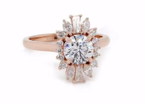 1.20ct Natural Diamond (G-H) Spray Halo Engagement Ring 14kt Rose Gold SI1
