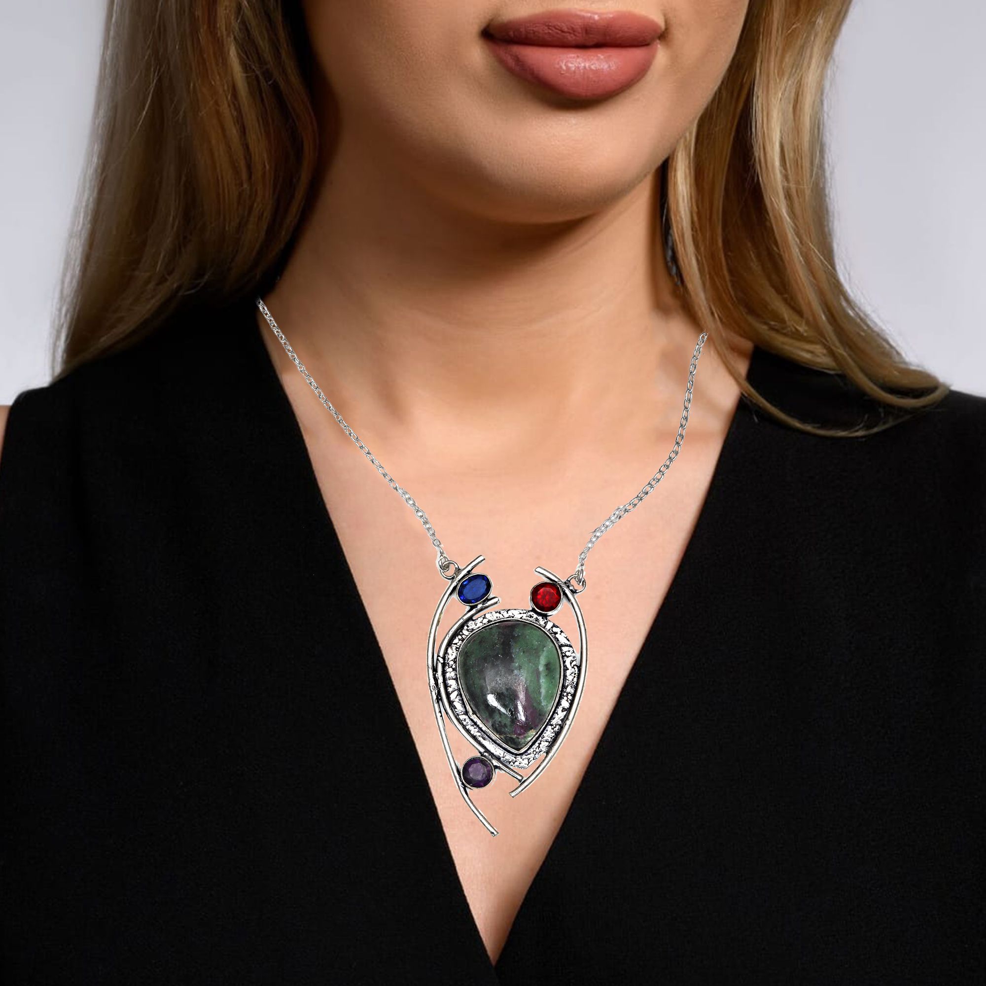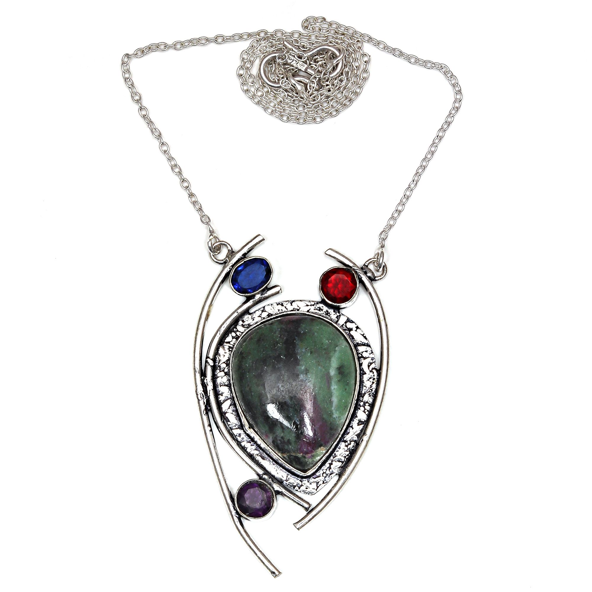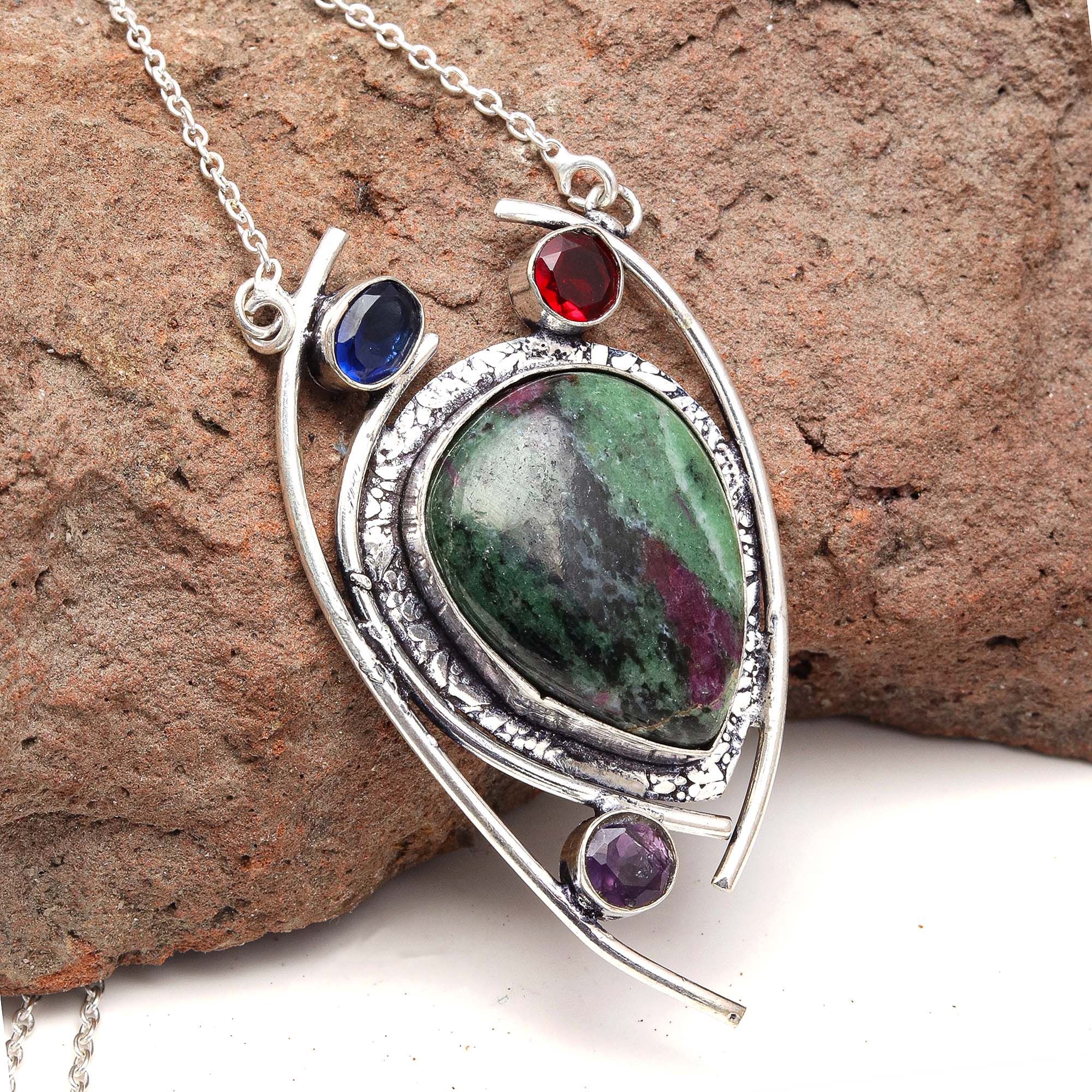 Ruby Zoisite Gemstone Mother's Day Handmade 925 Silver Jewelry Necklace 20 in