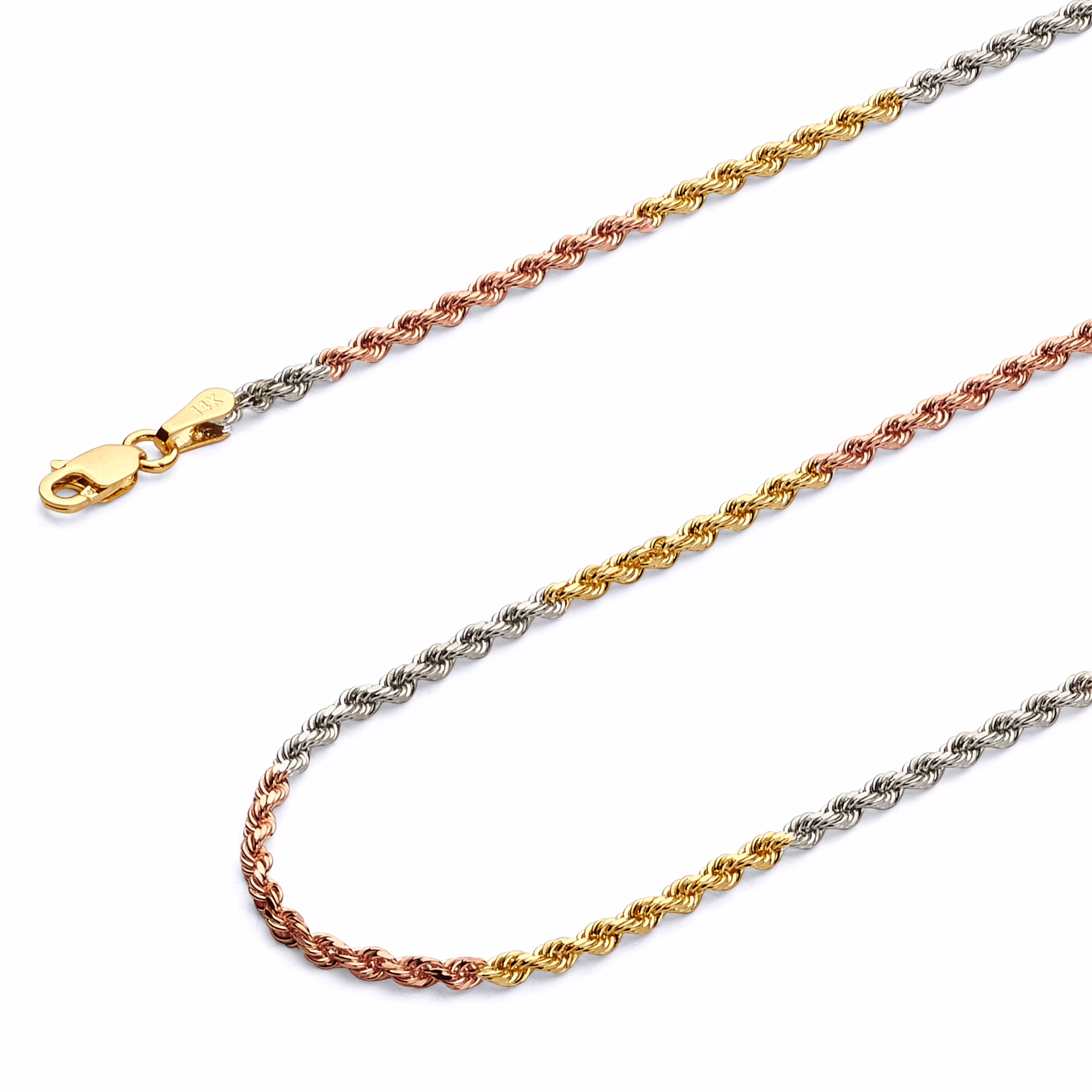 Wellingsale 14k Tri 3 Color Gold Polished Solid 2.0mm Solid Rope Diamond Cut Chain Necklace - 22"