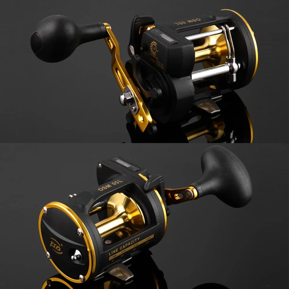 Walmeck Full Metal Trolling Fishing Reels Right Hand Drum Wheel Boat Sea Fishing Reel