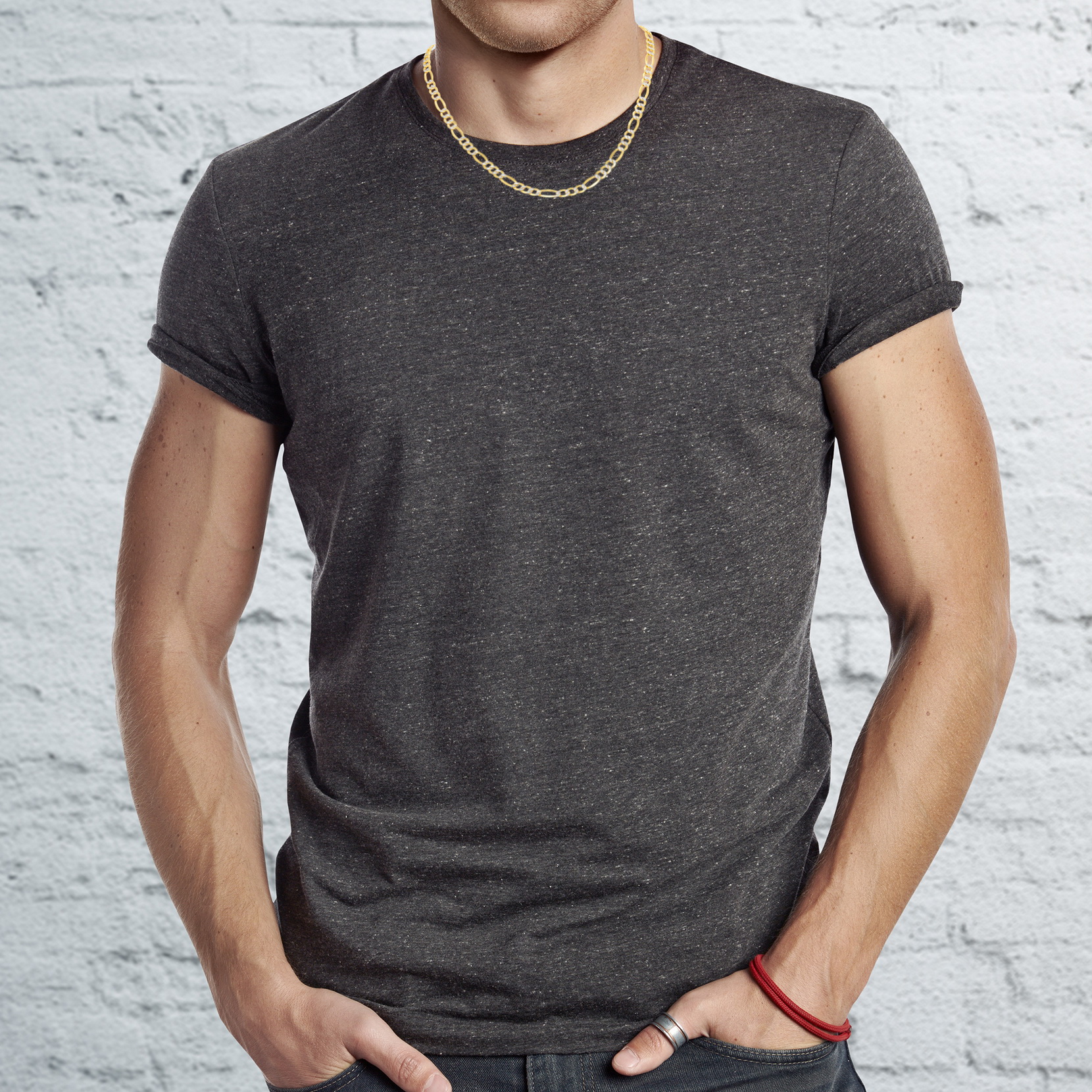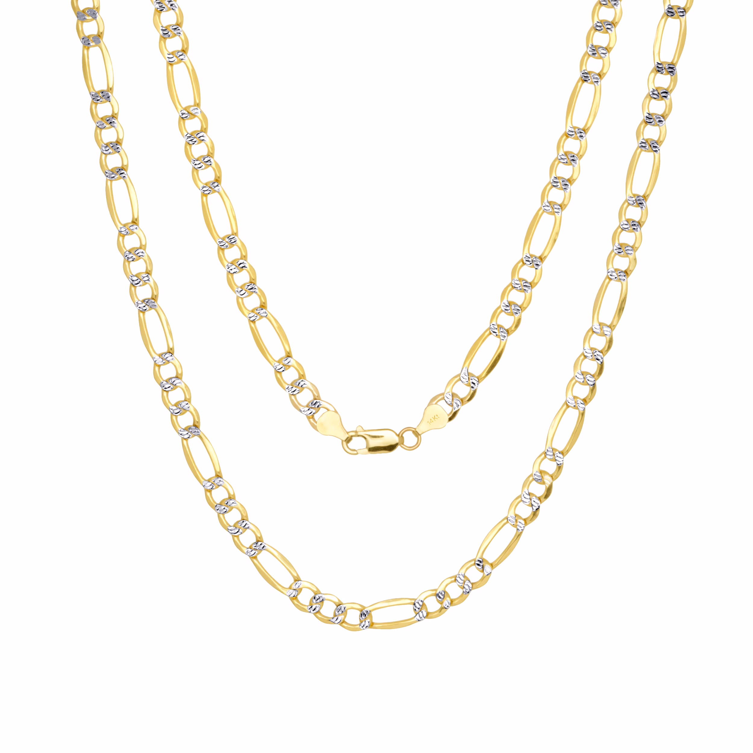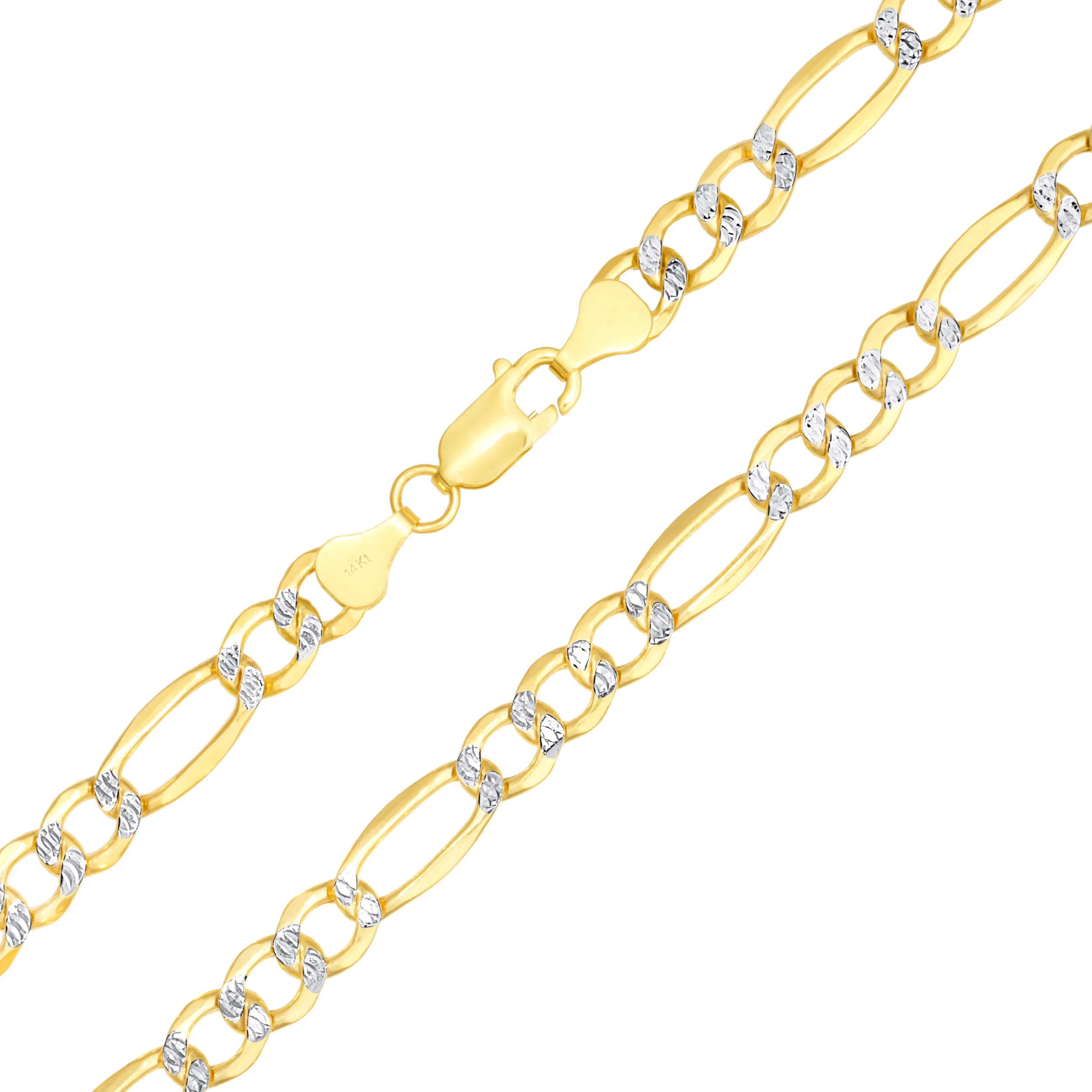 Nuragold 14k Yellow Gold Solid 7.5mm Figaro Chain Link Diamond Cut Pave Two Tone Necklace, Mens Jewelry 20" - 30"