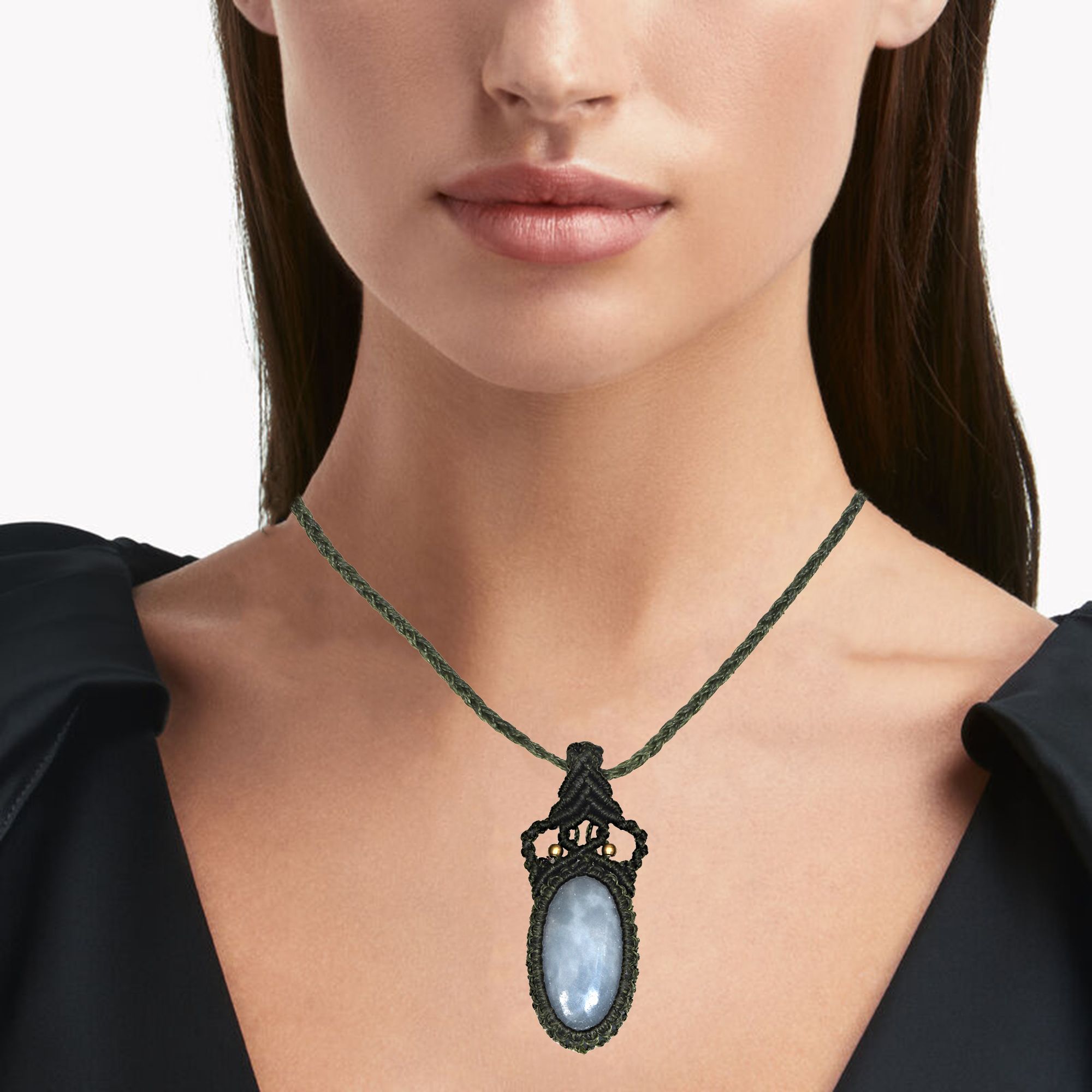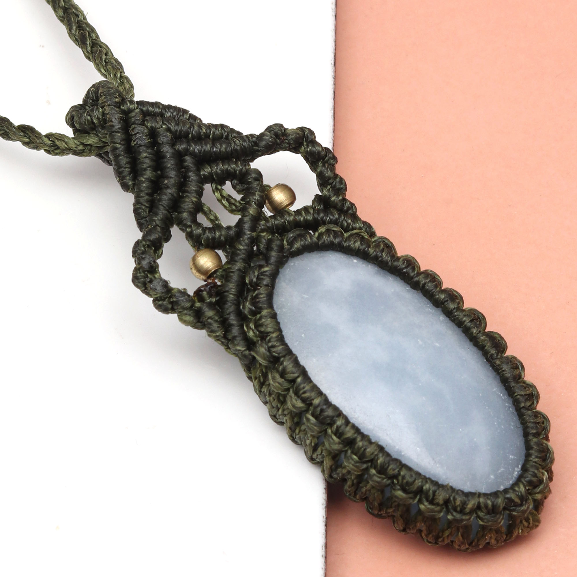 Owyhee Blue Opal Macrame Thread Gemstone Handmade Jewelry Necklace 20-36''Ad