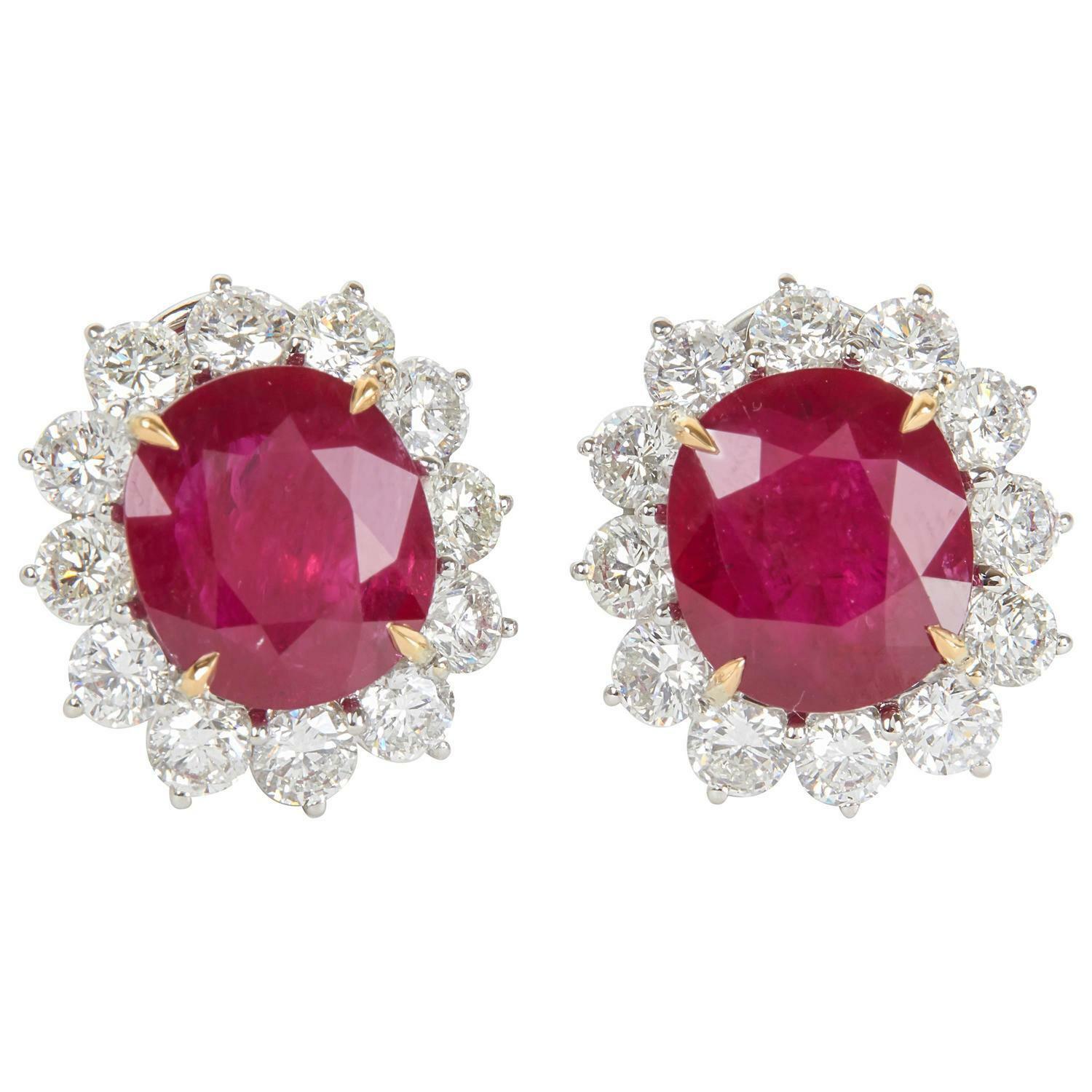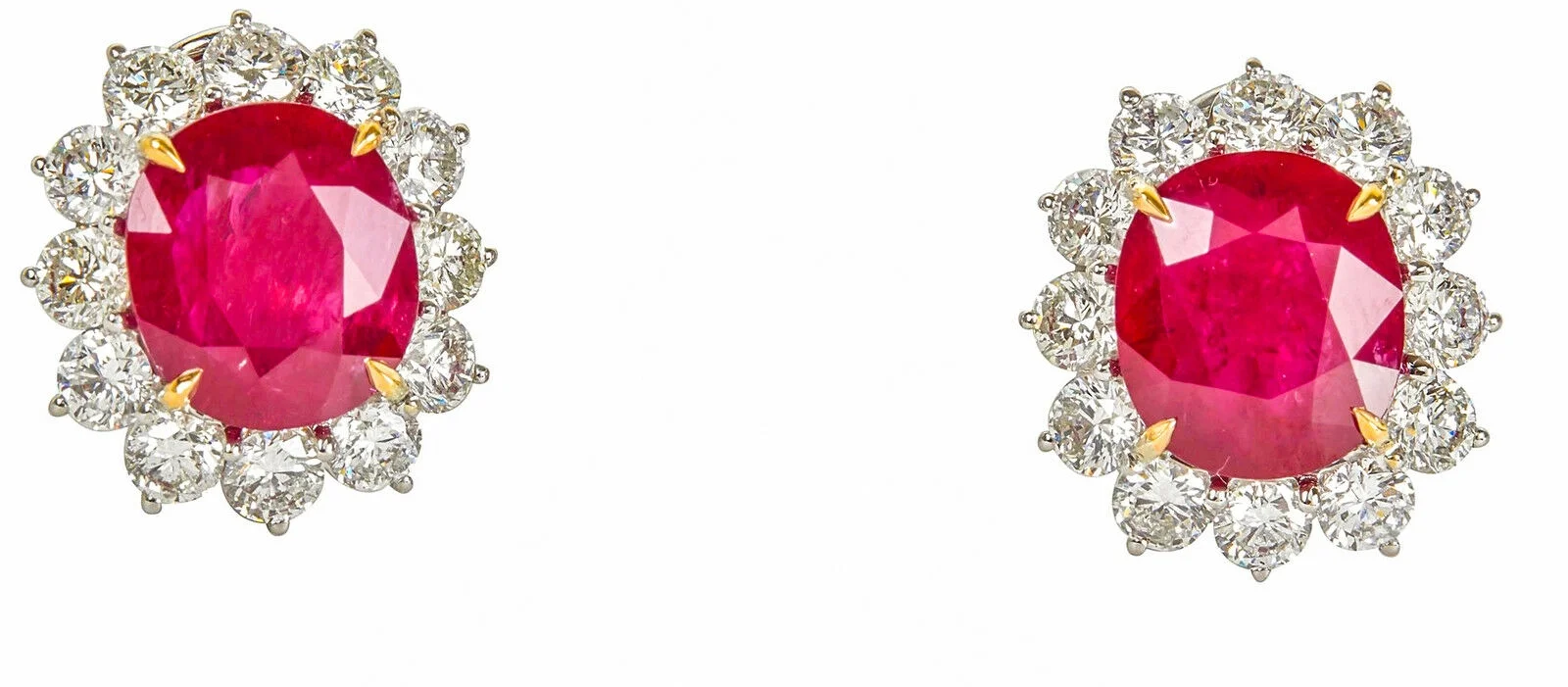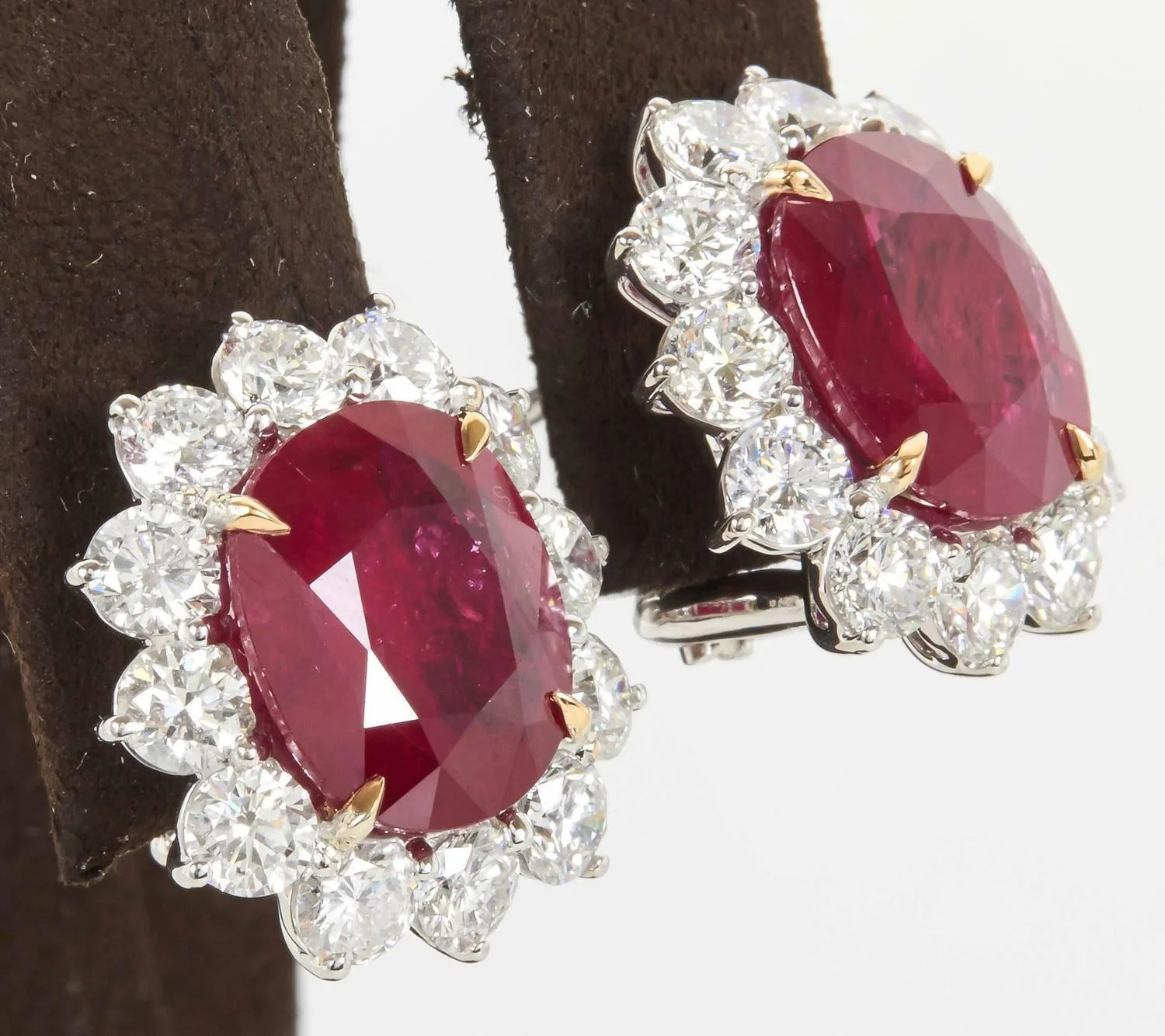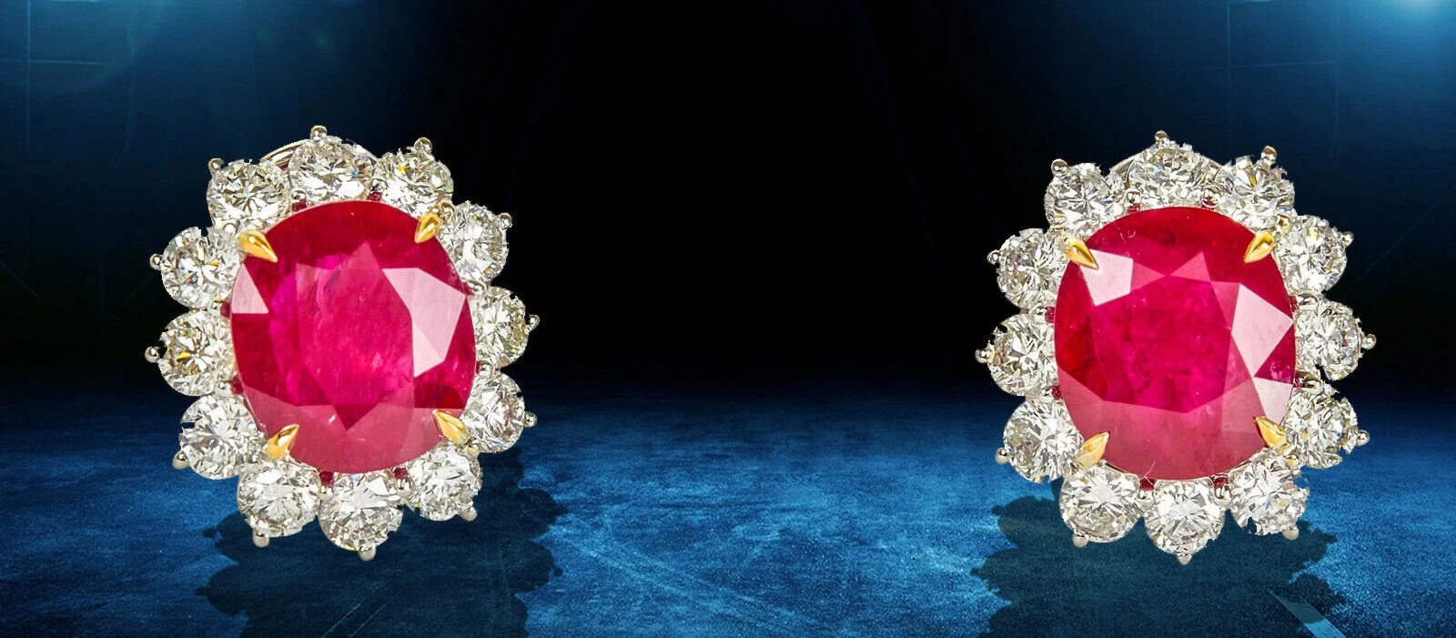 GIA CERTIFIED RUBIES OVAL SHAPE DIAMOND ROUND BRILLIANT SHAPE EARRING