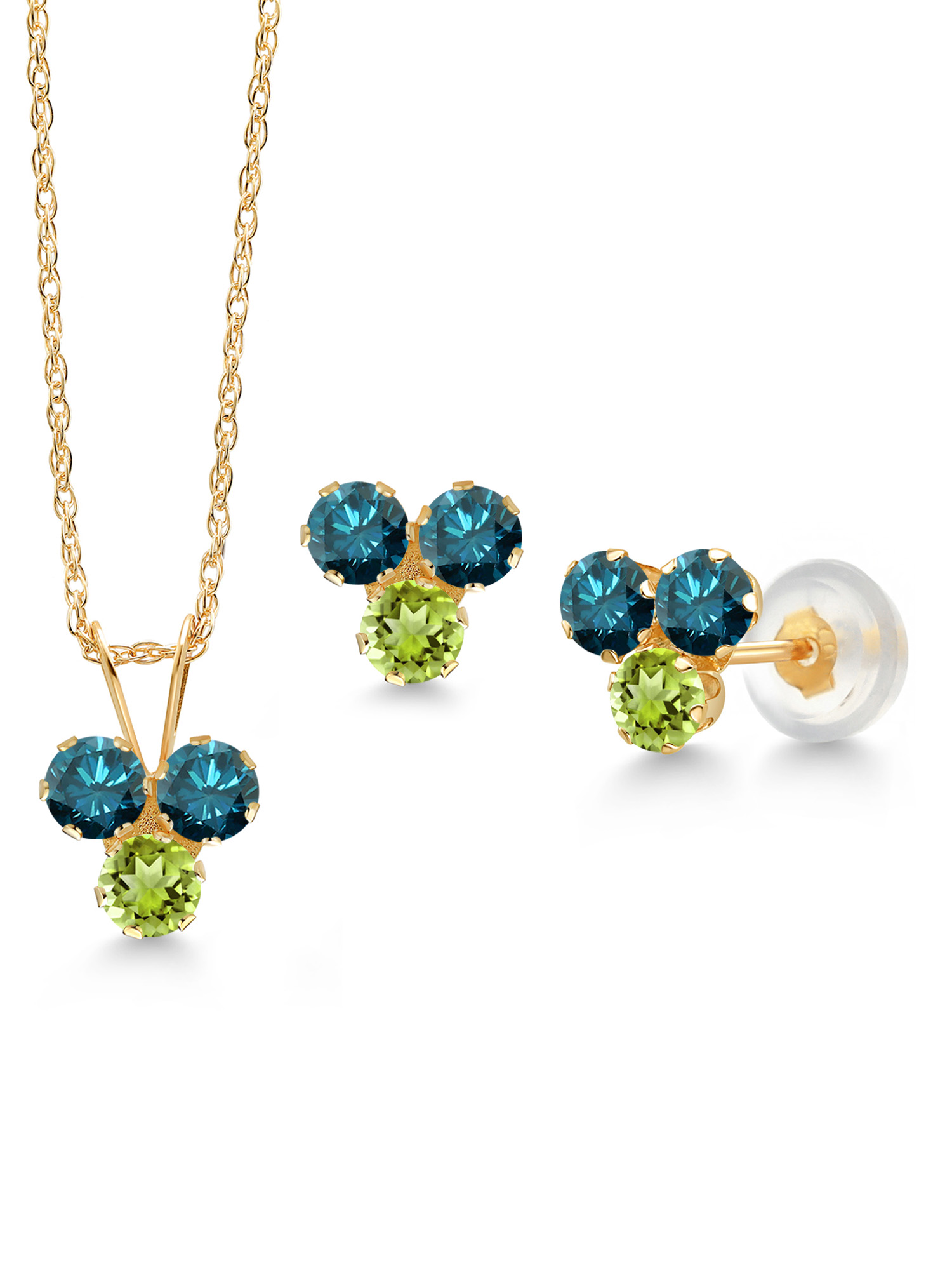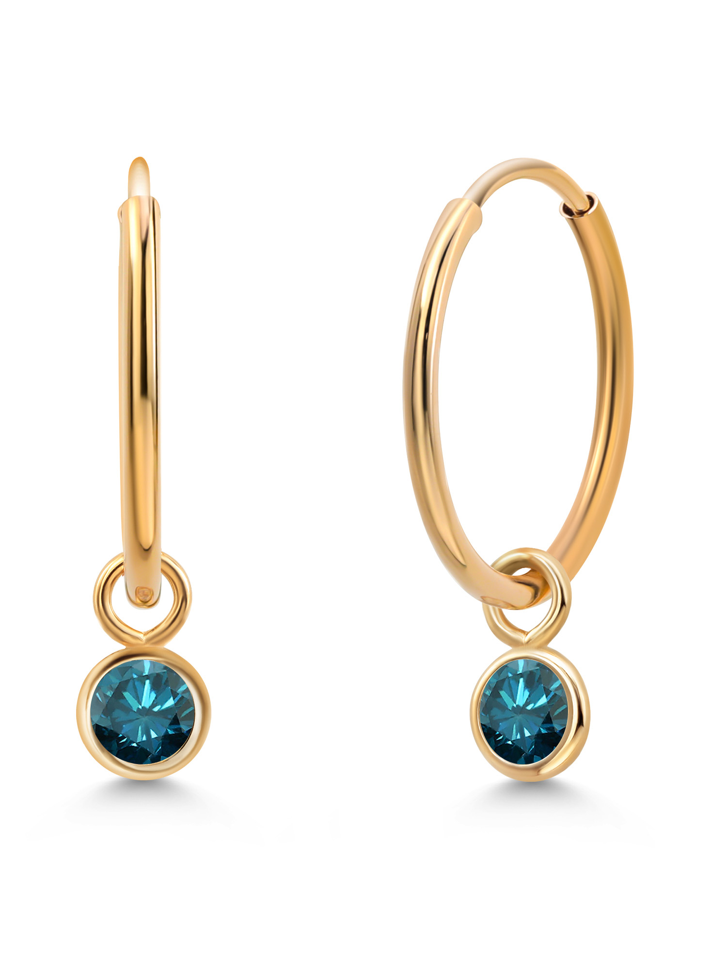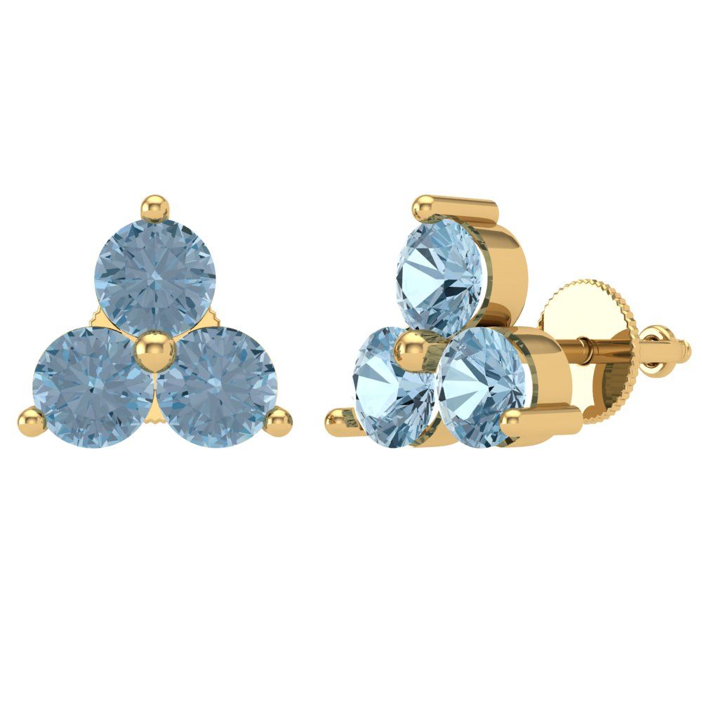 Gem Stone King 0.54 Ct Round Blue SI1-SI2 Diamond 18K Yellow Gold Plated Silver Stud Earrings