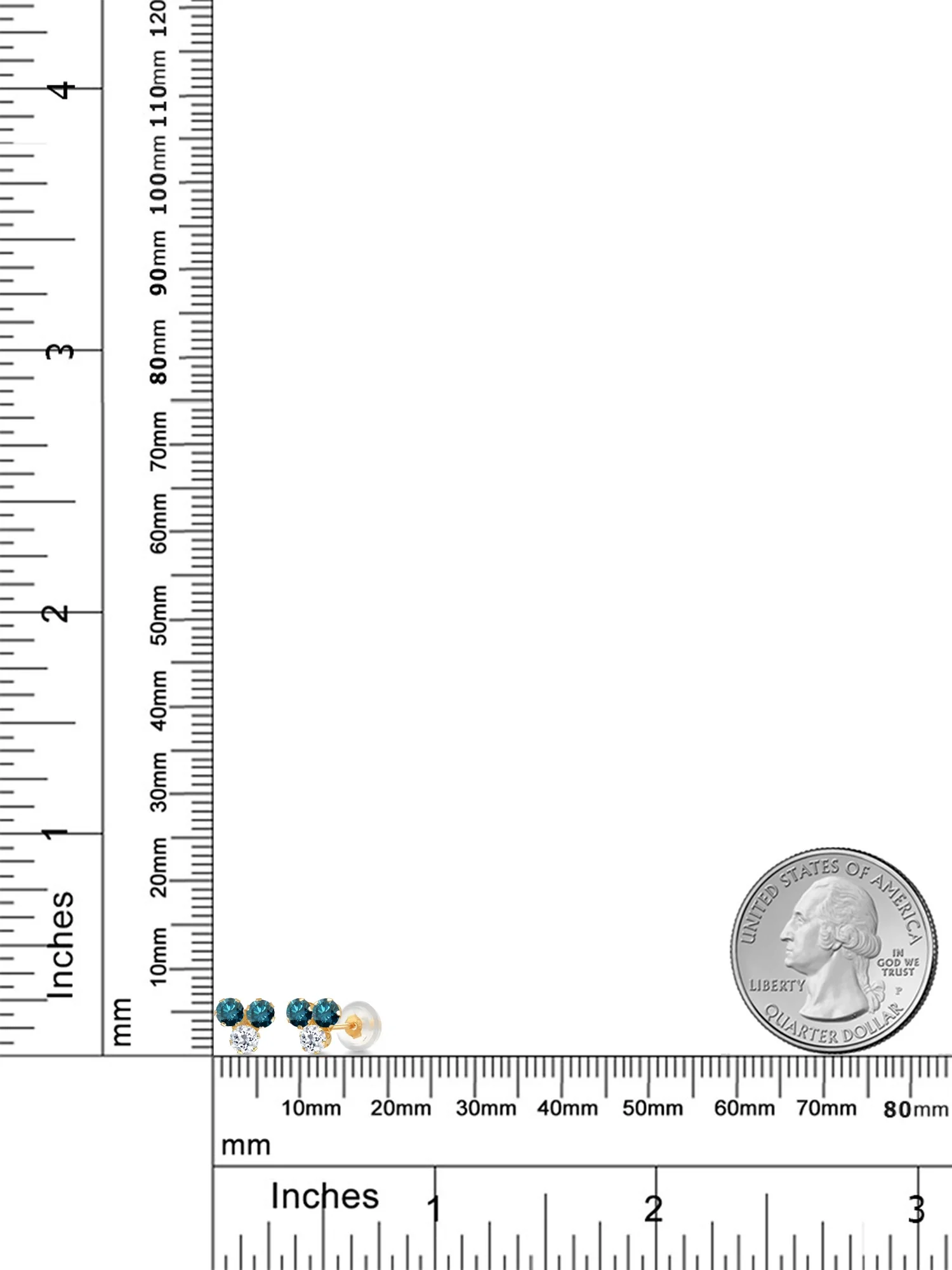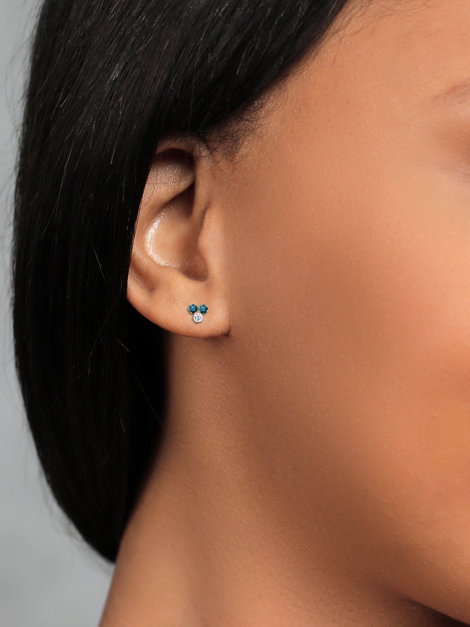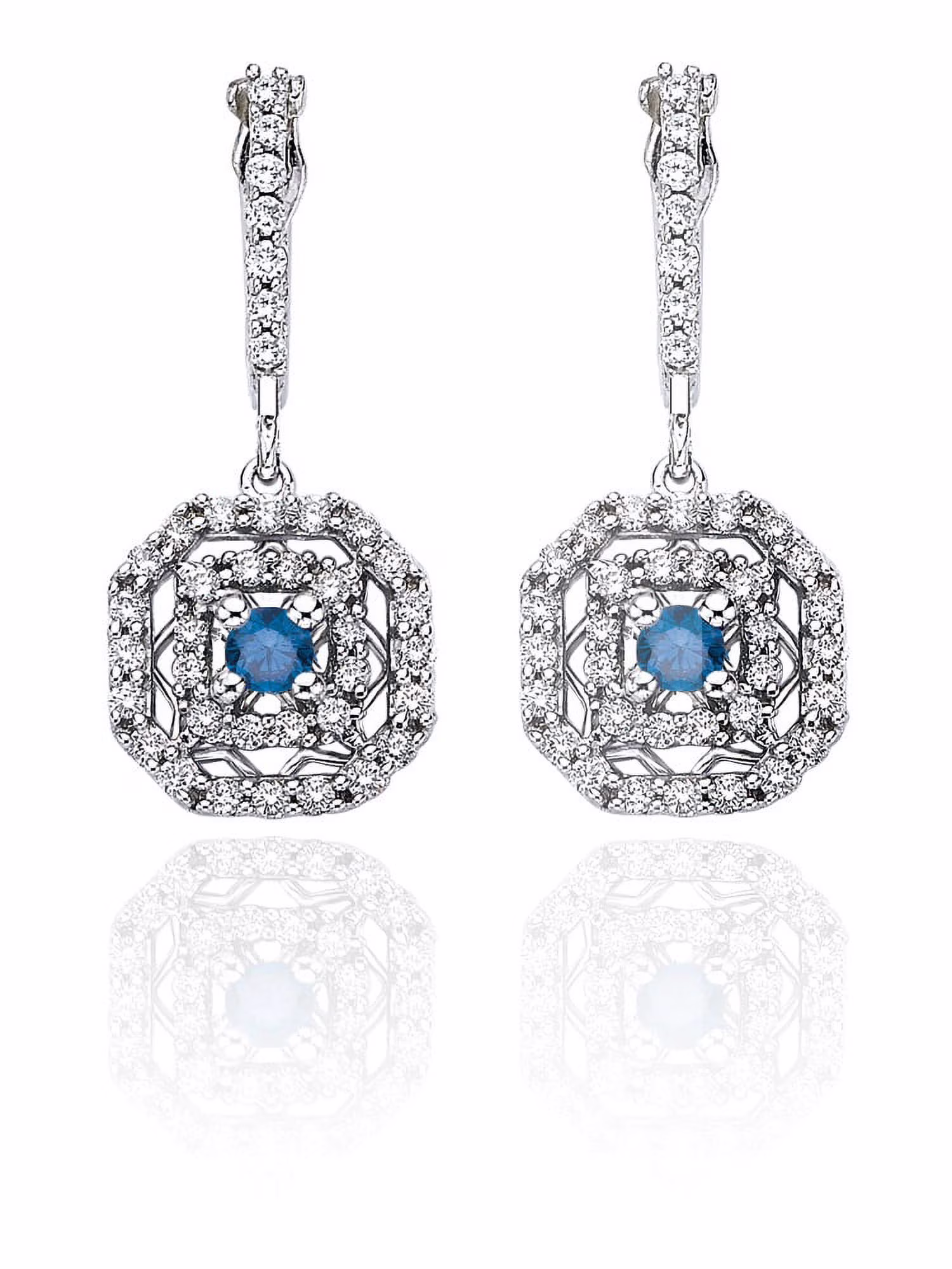 14K White Gold 1/2 ct. Diamond Fashion Earrings with Blue Center Diamond
