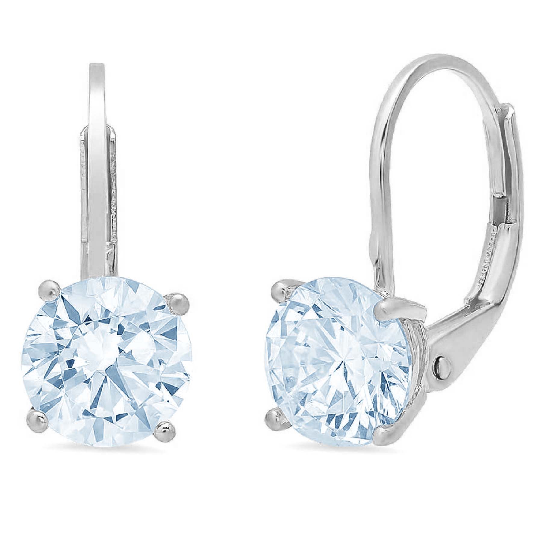 3 ct round cut drop dangle blue simulated diamond 18k white gold earrings lever back