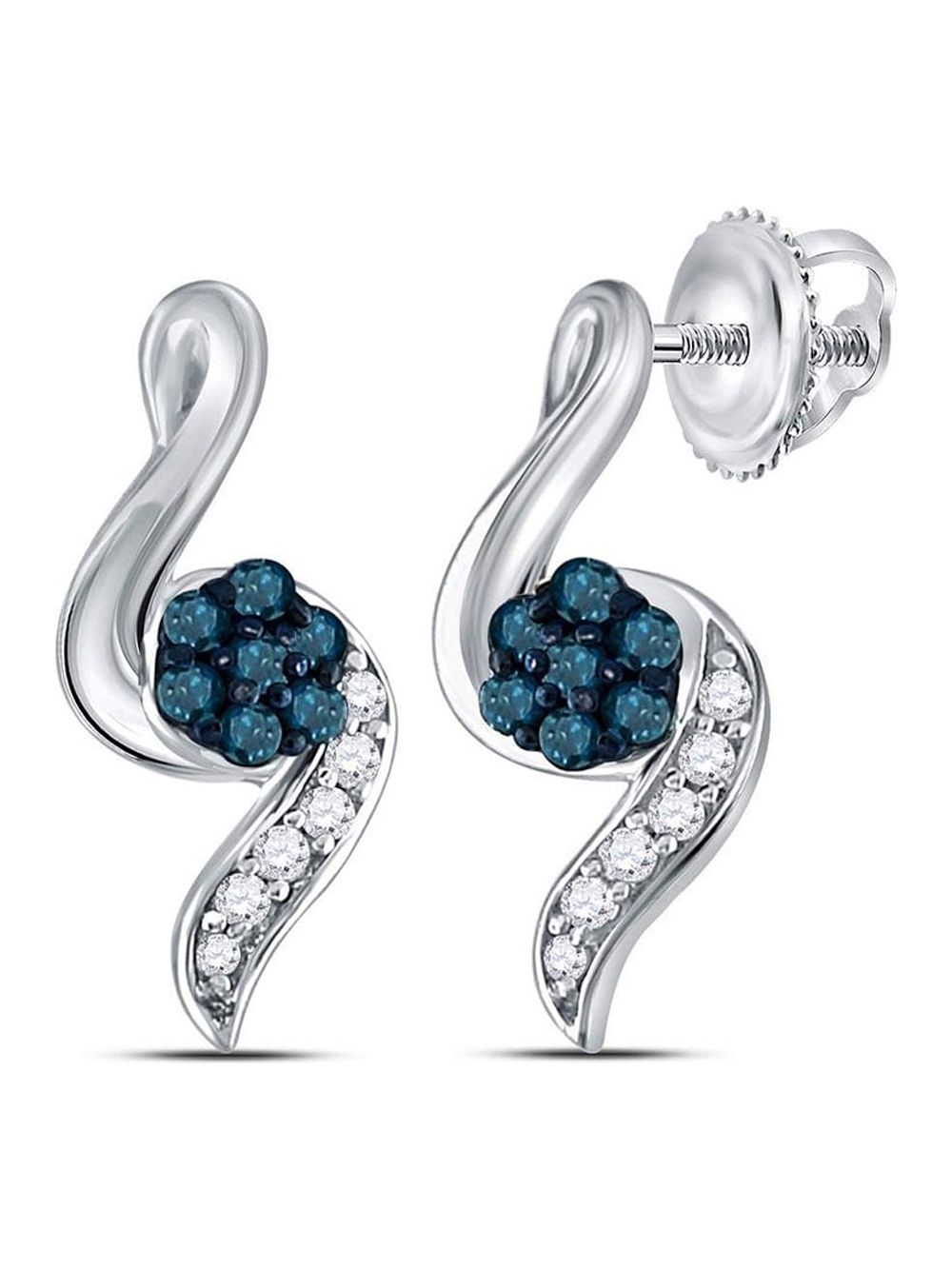 3Gems Jewelers Sterling Silver Womens Round Blue Color Enhanced Diamond Cluster Stud Earrings 1/5 Cttw