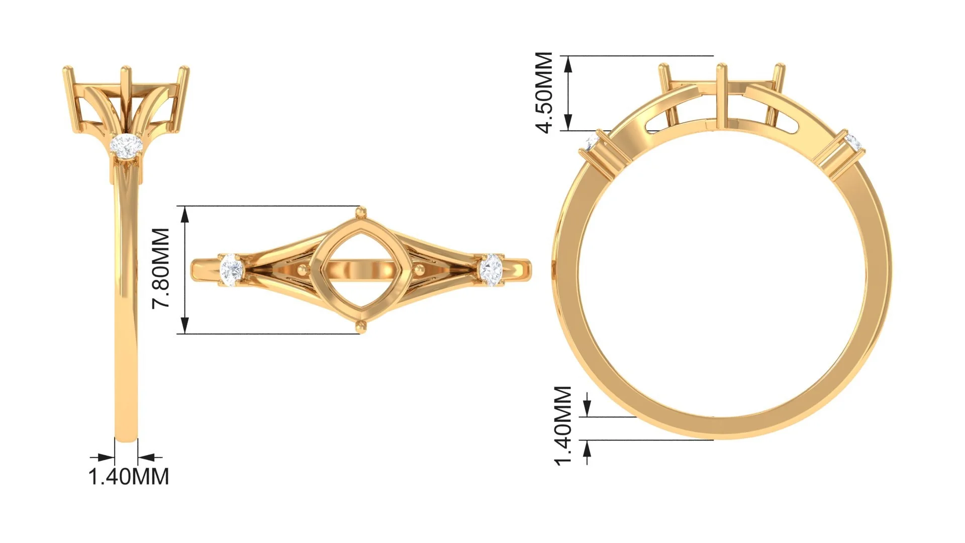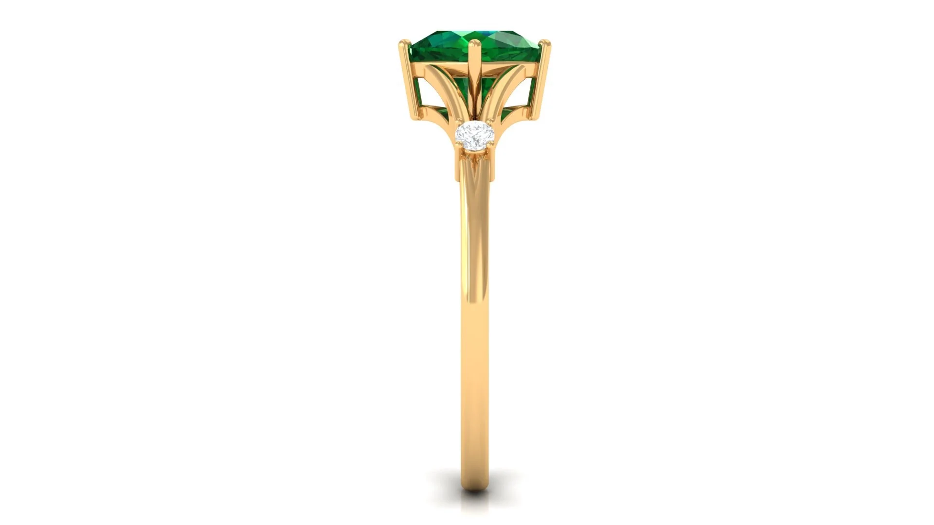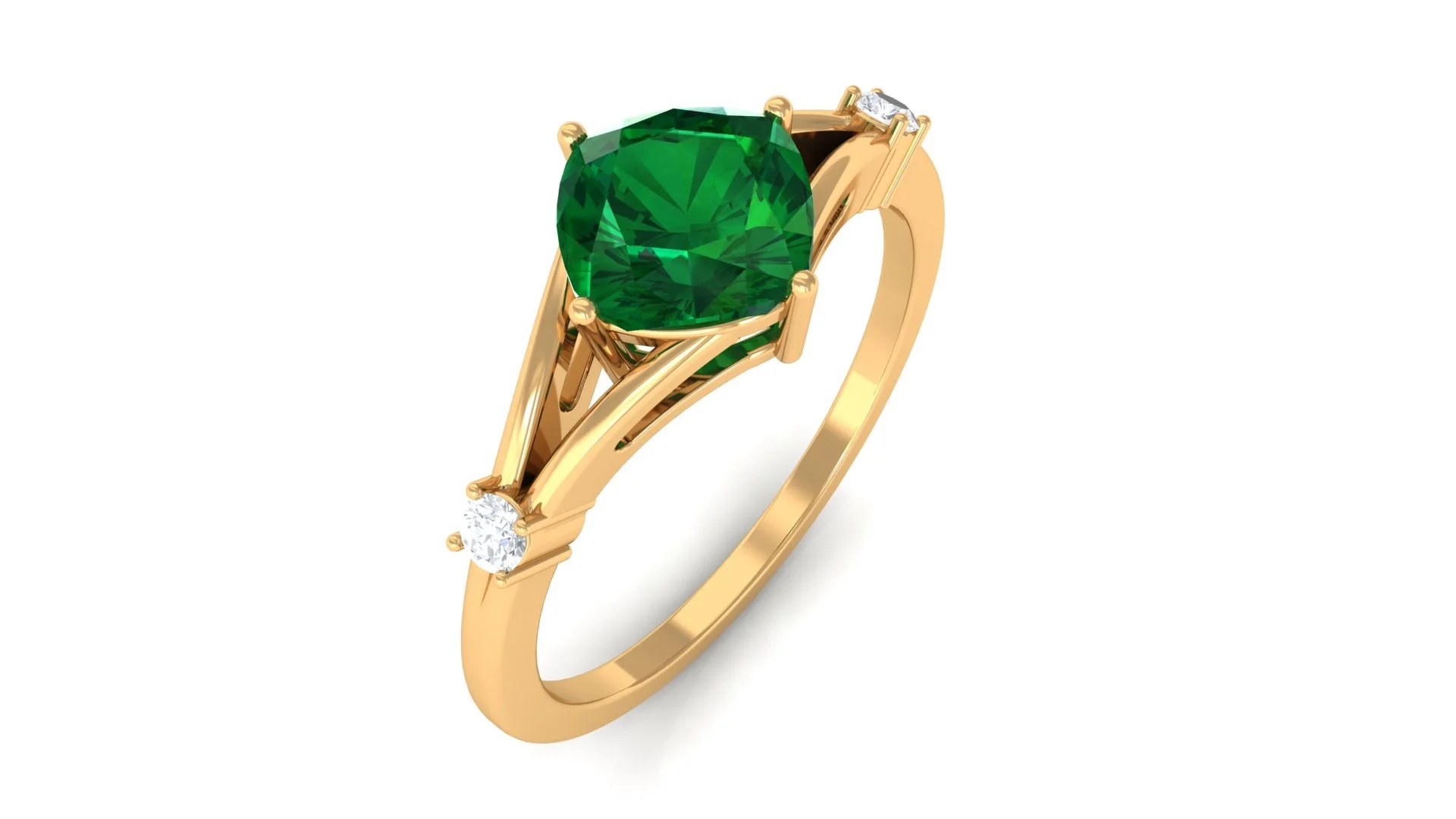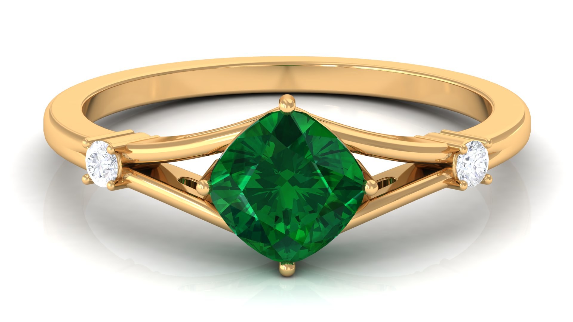 Cushion Cut Lab Grown Emerald Solitaire Ring with Diamond - 6 mm, 14K Yellow Gold, US 9.50