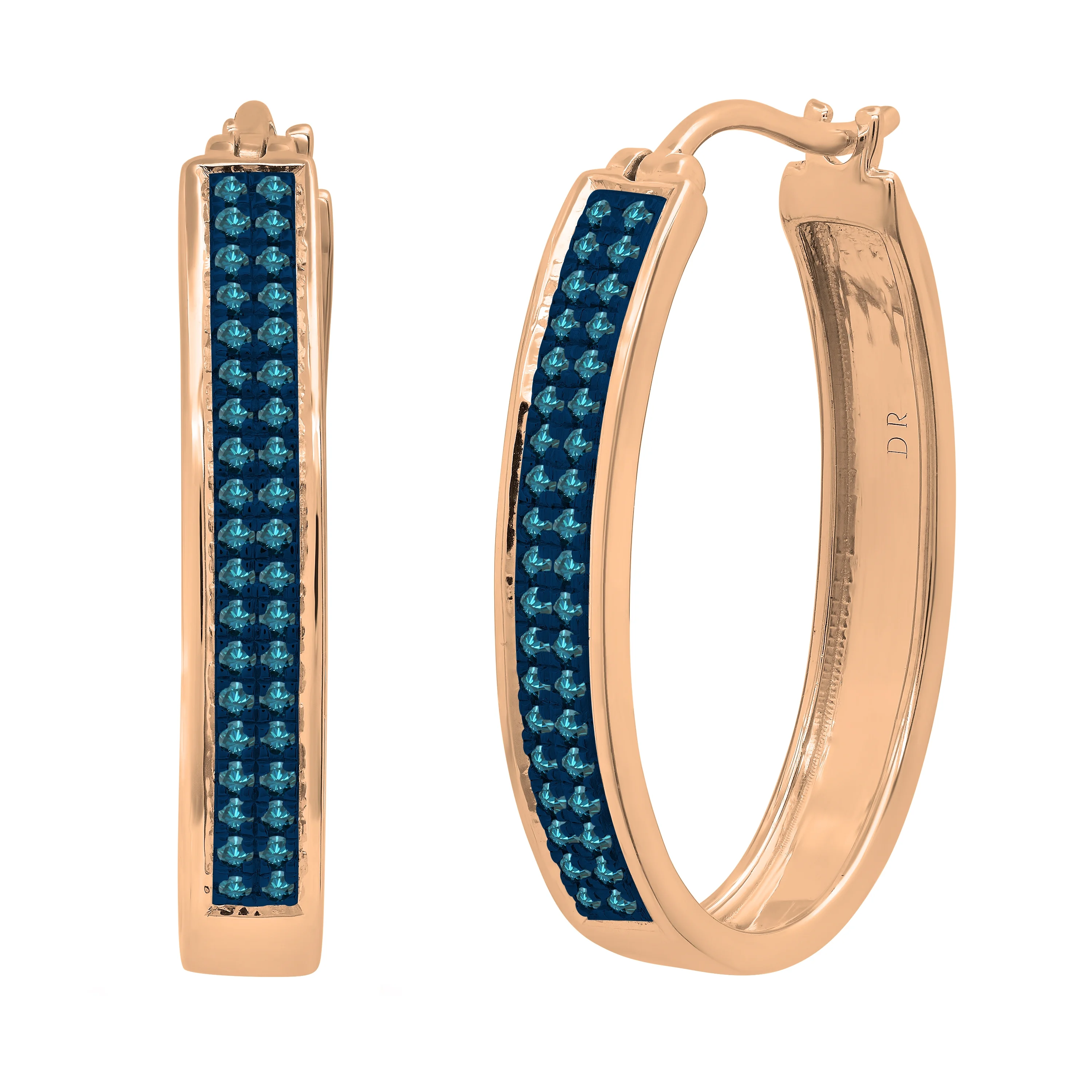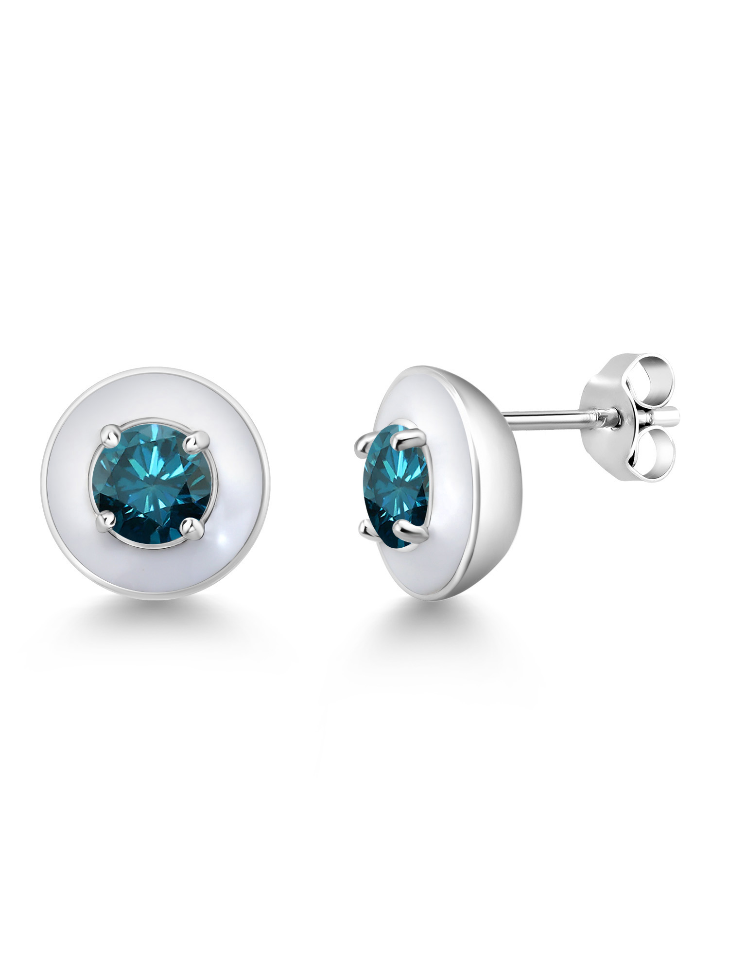 Gem Stone King 1.10 Ct Round Blue SI1-SI2 Diamond 925 Sterling Silver White Enamel Stud Earrings