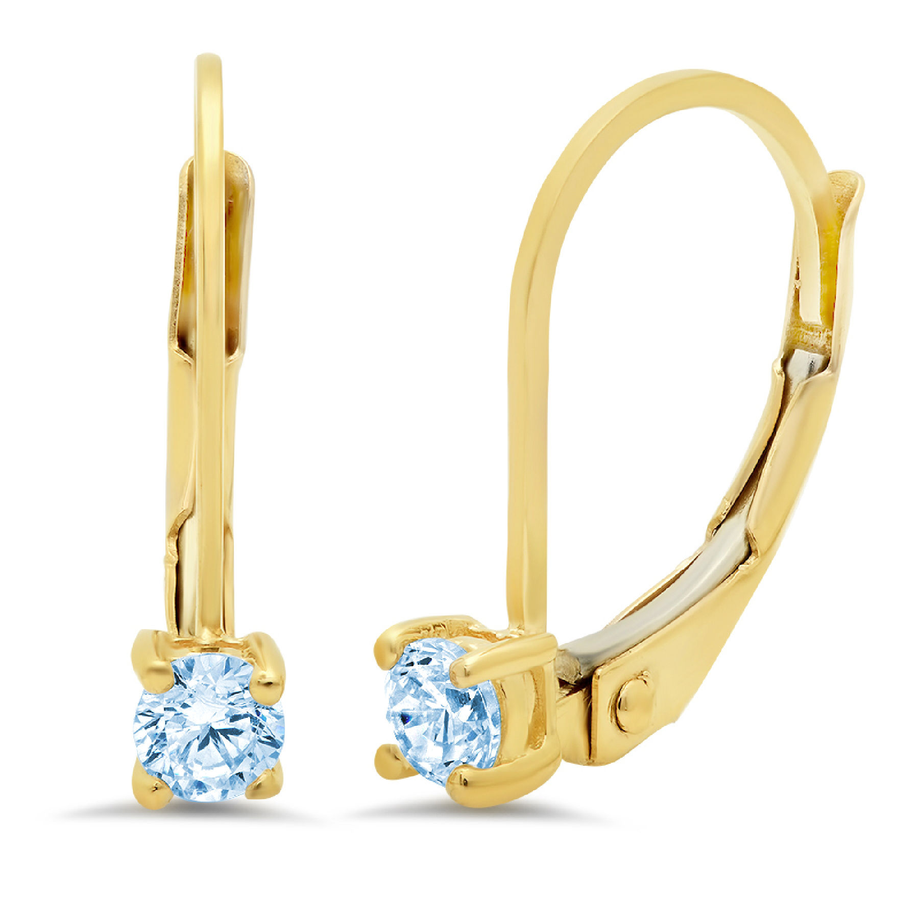 0.2 ct round cut drop dangle blue simulated diamond 18k yellow gold earrings lever back