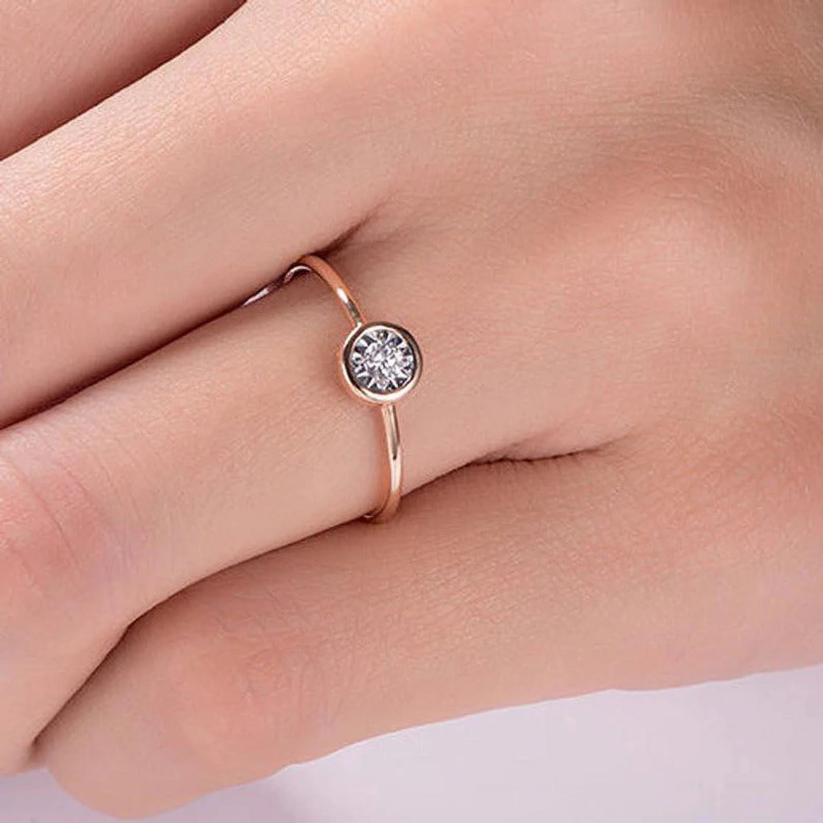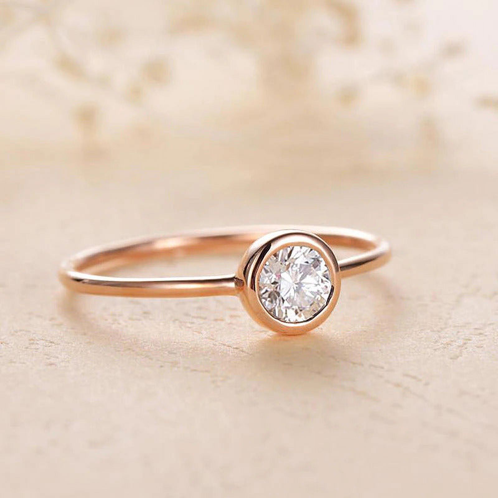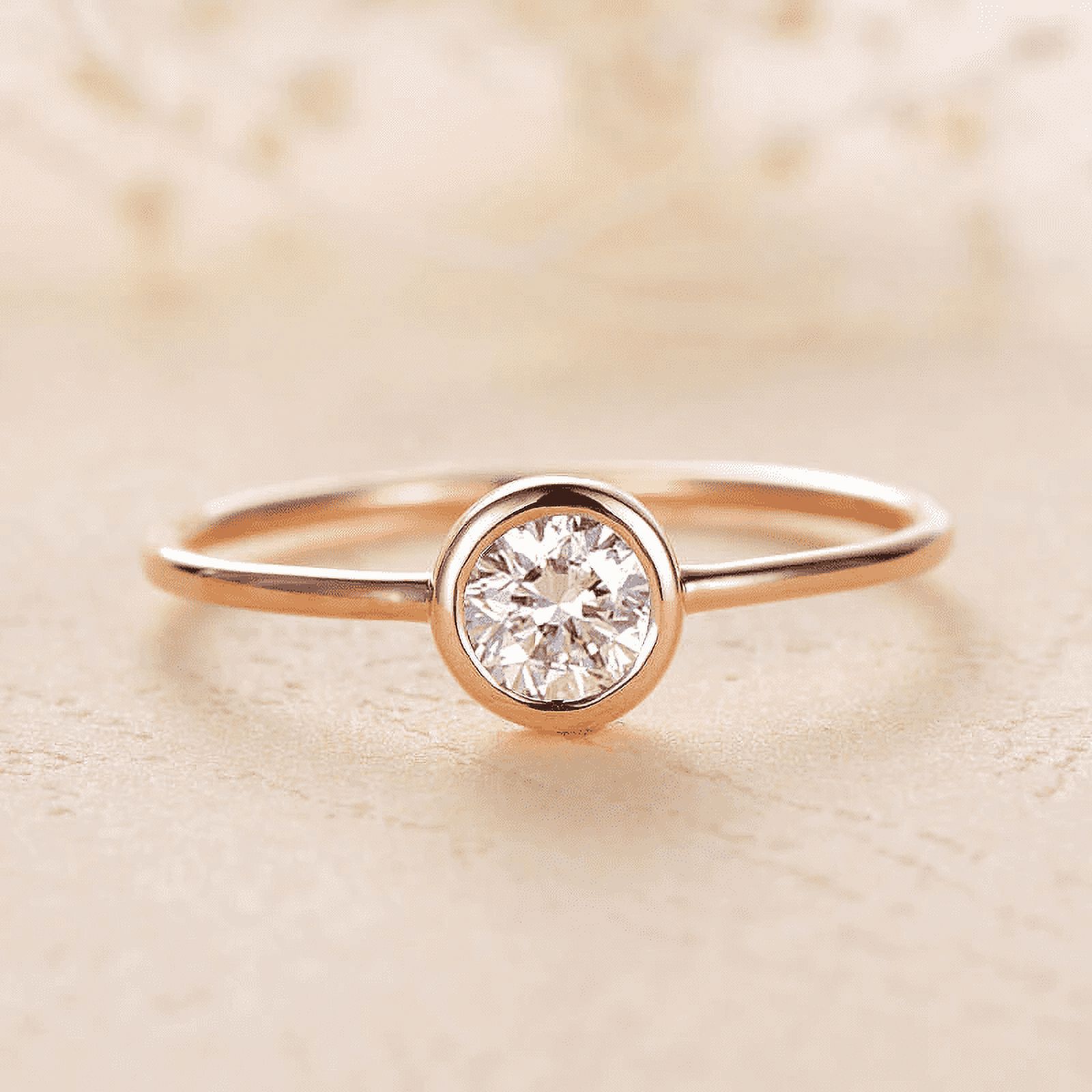 Solid 10K Yellow Gold 4Mm Moissanite Bezel Set Engagement Ring Women Minimalist
