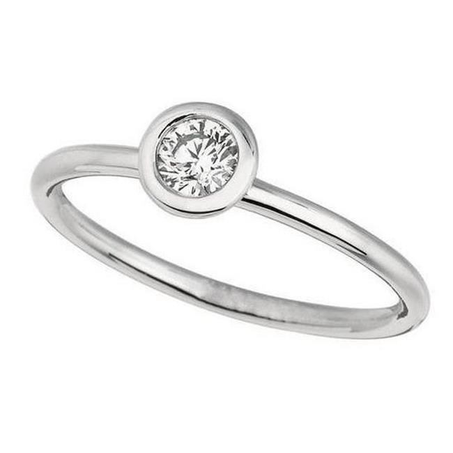 Harry Chad Enterprises 0.50 CT Round Diamond Bezel Set Engagement Ring, 14K White Gold - Size 6.5