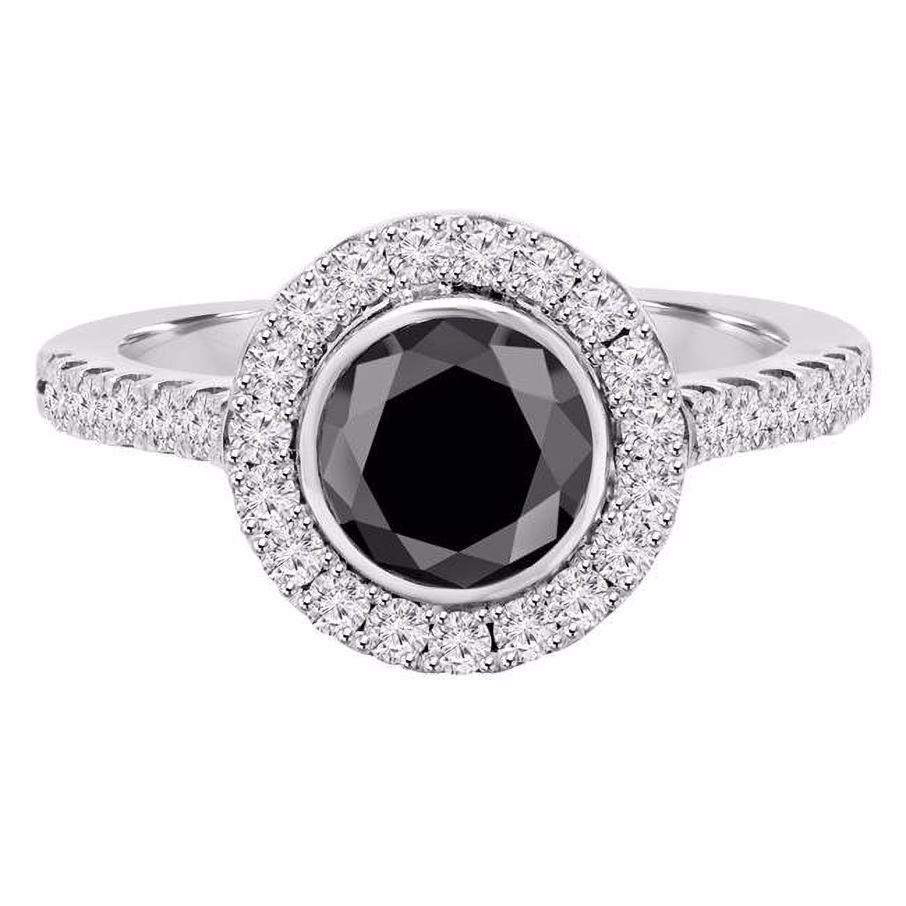 Majesty Diamonds 2 CTW Round Black Diamond Bezel Set Halo Engagement Ring in 14K White Gold with Accents - Size 7.5