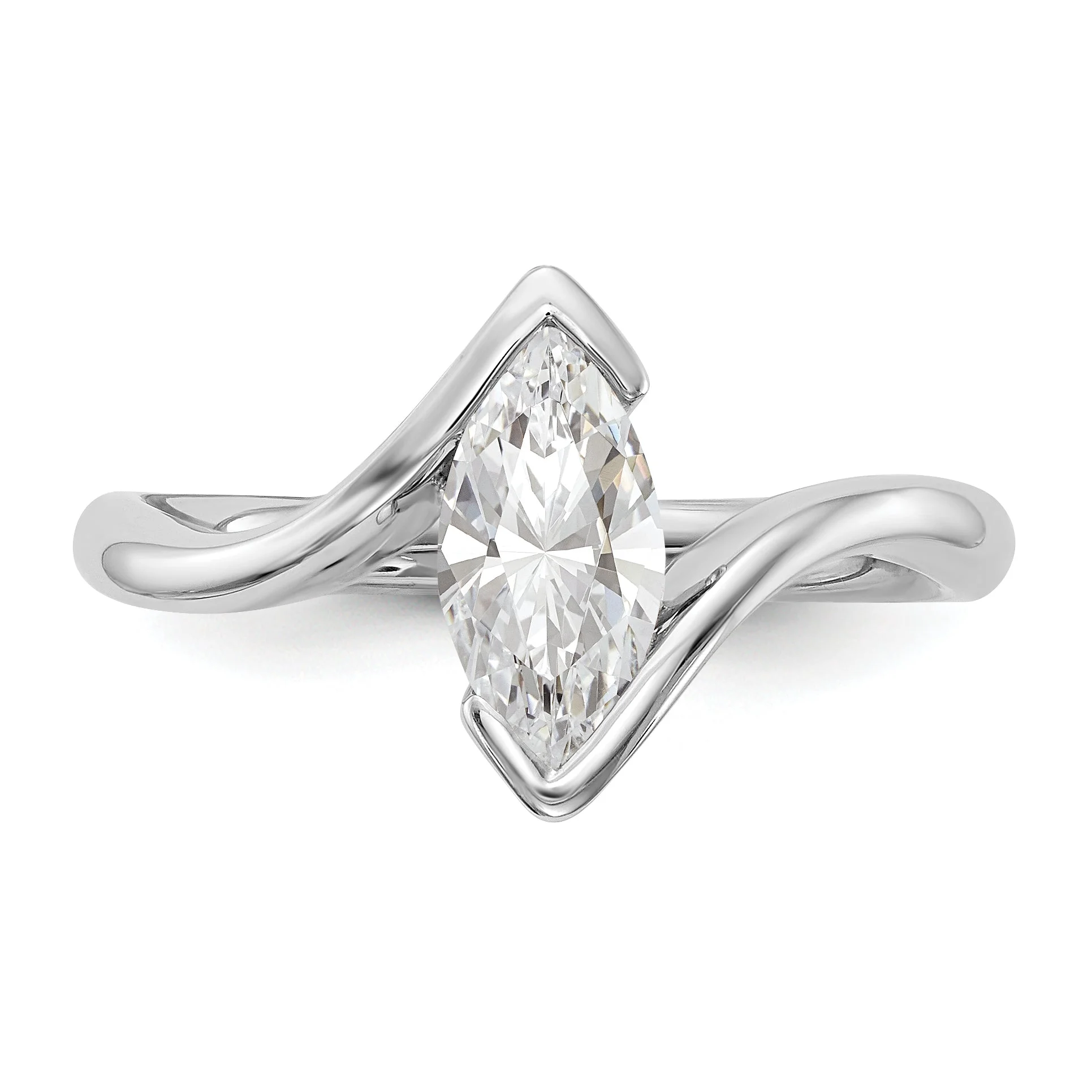 0.25ct. CZ Solid Real 14k White Gold Marquise Bezel Solitaire Engagement Ring