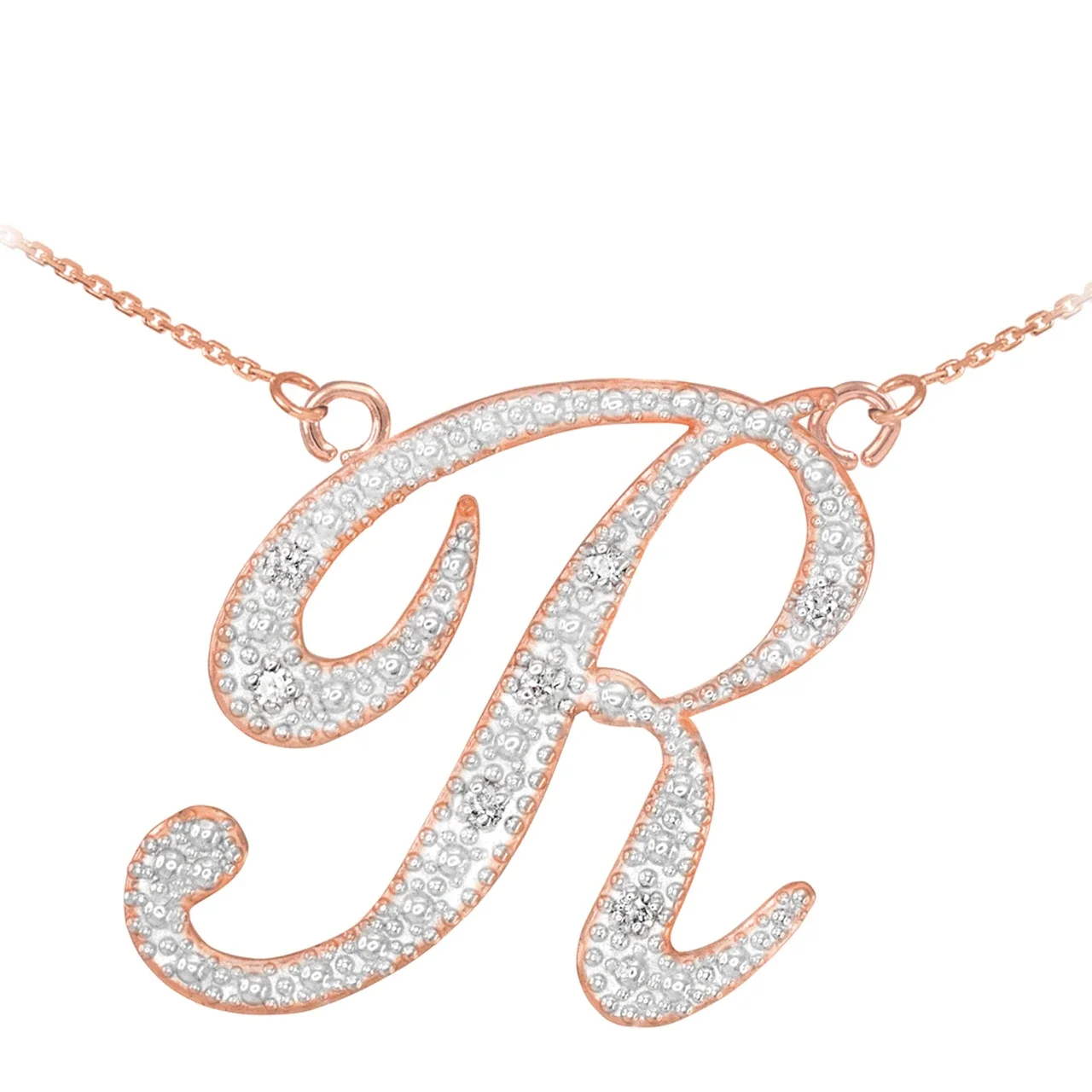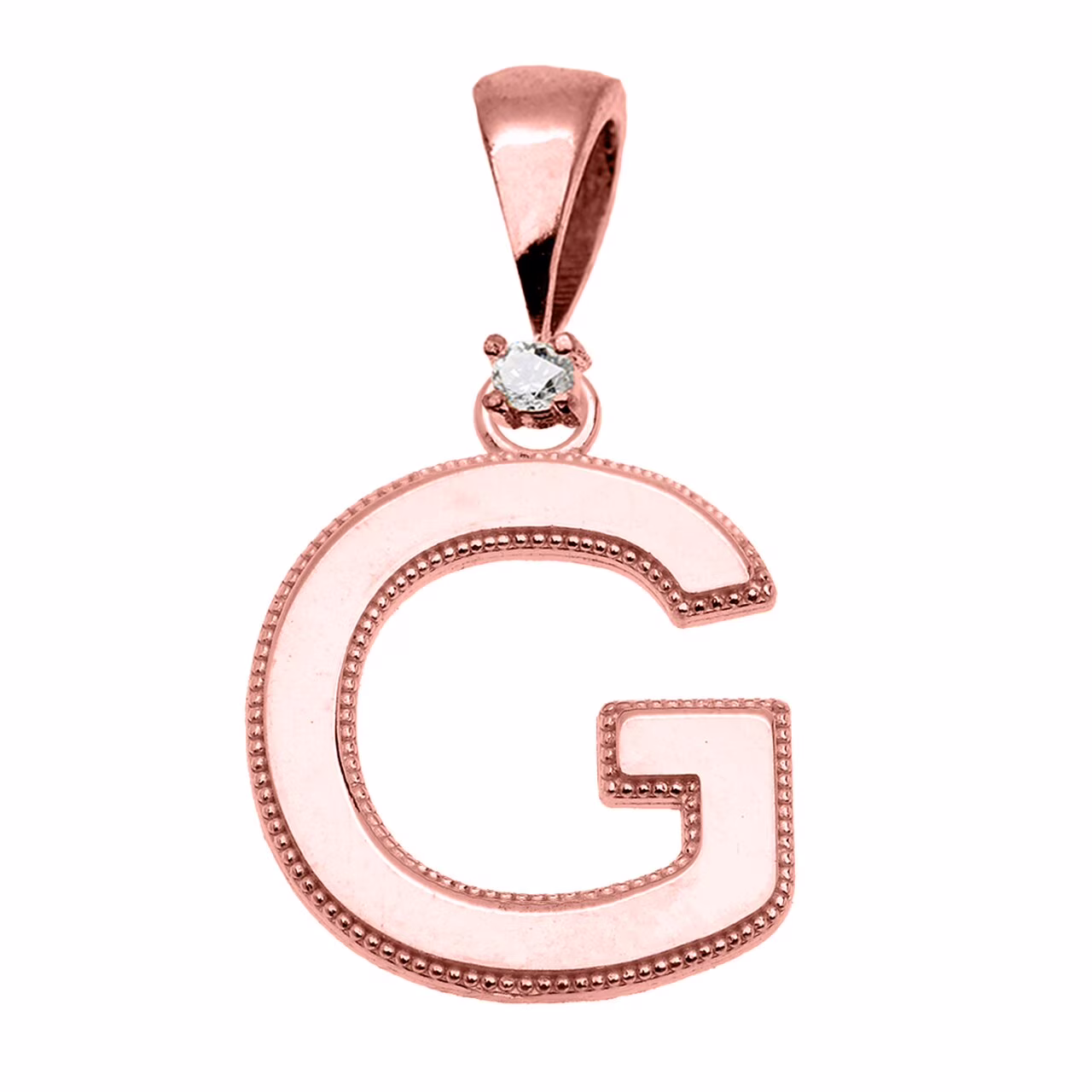 ROSE GOLD HIGH POLISH MILGRAIN SOLITAIRE DIAMOND "G" INITIAL PENDANT NECKLACE