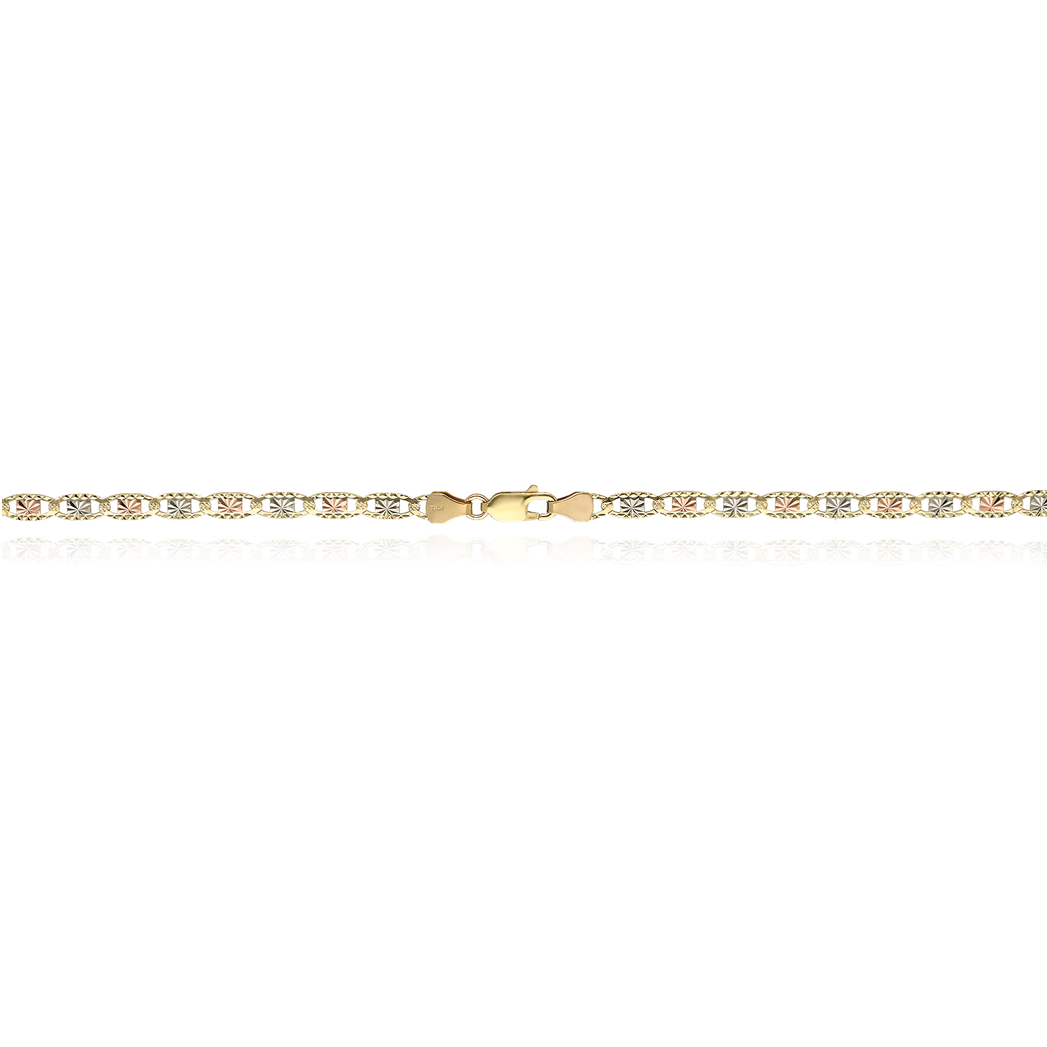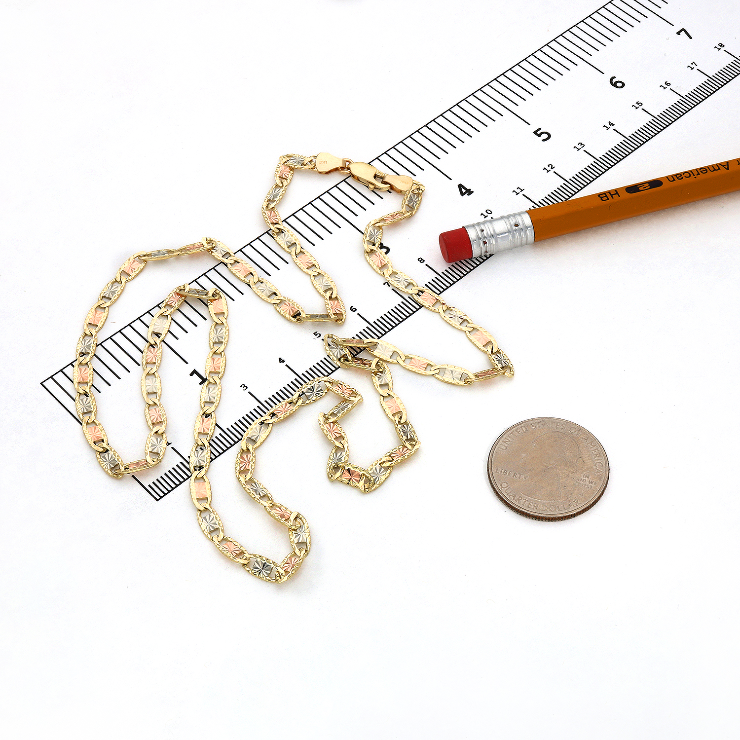 Solid 14K Gold Tri-Color 4mm Diamond-Cut Valentino Chain Necklace 18"-24"