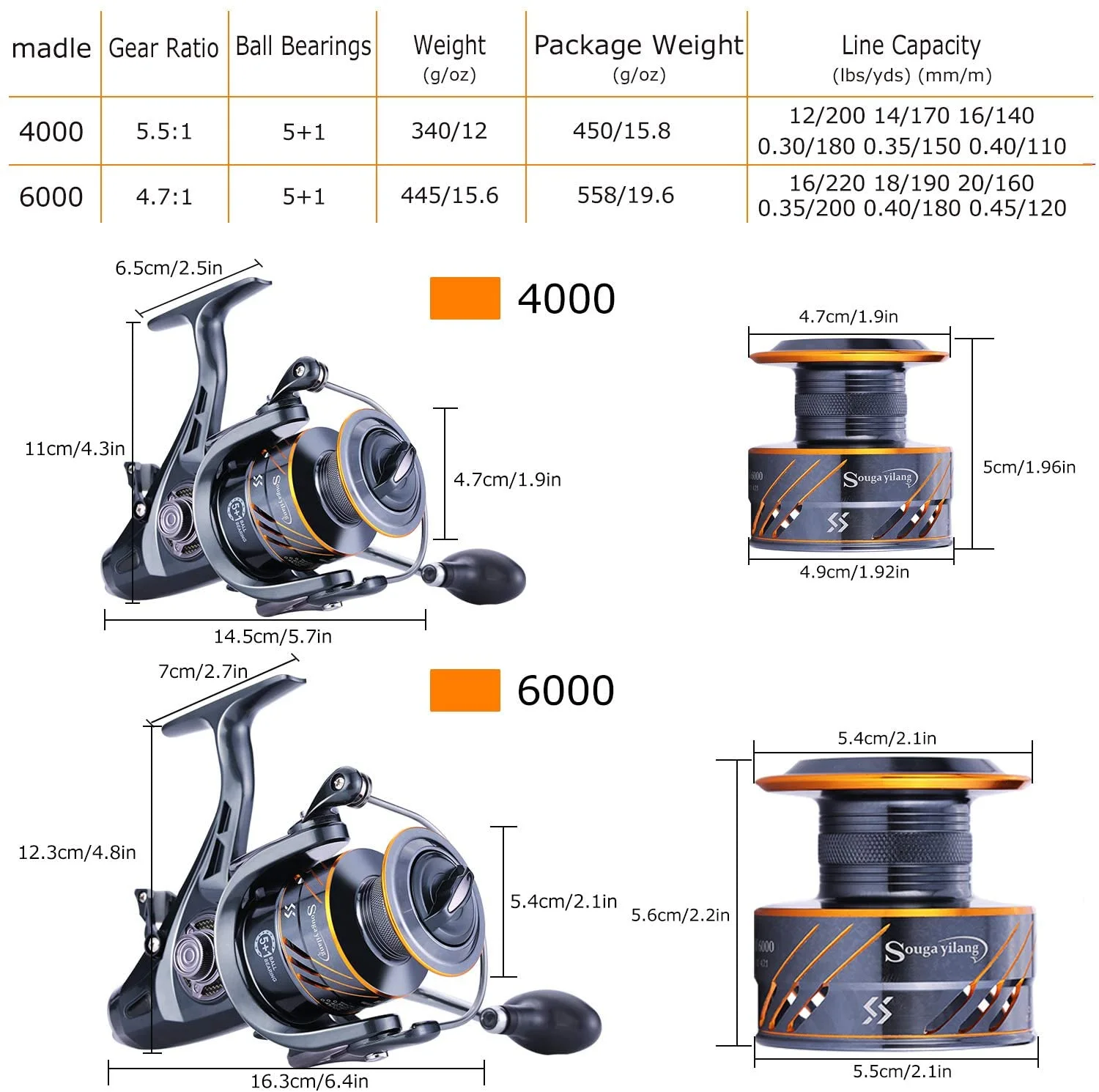 Sougayilang Spinning Reel 5+1BB Smooth Fishing Reels Max Drag 28LB for Freshwater