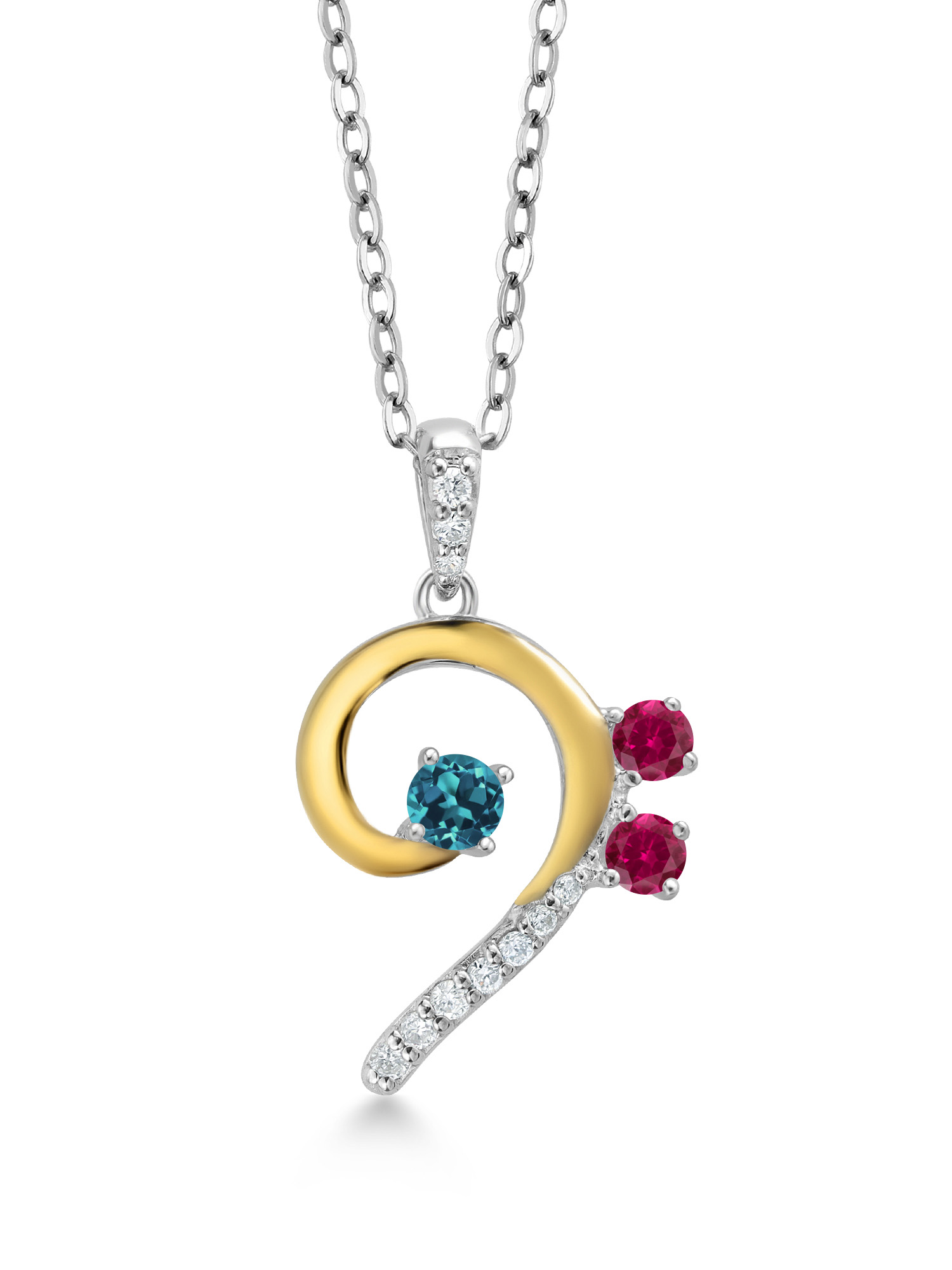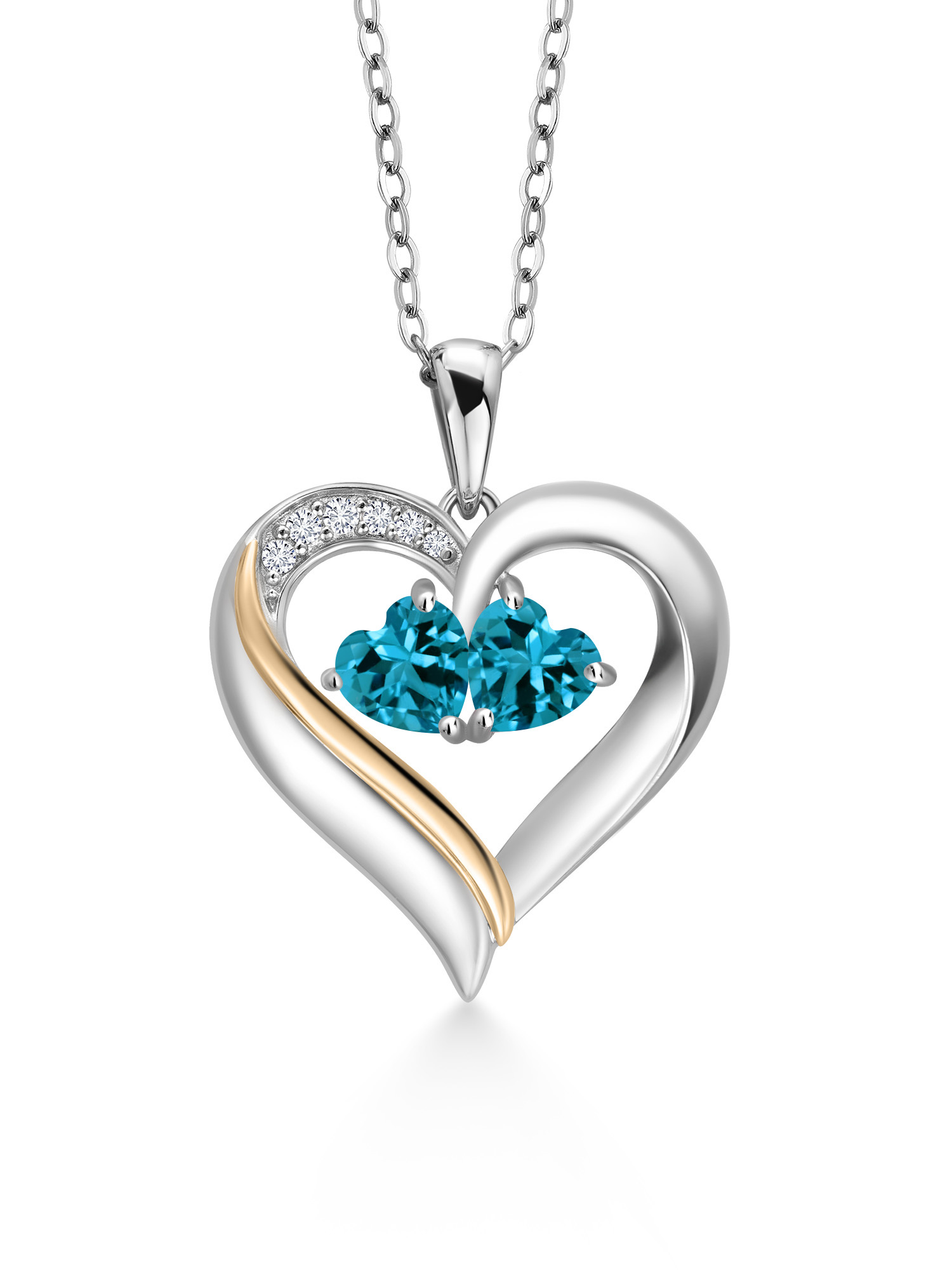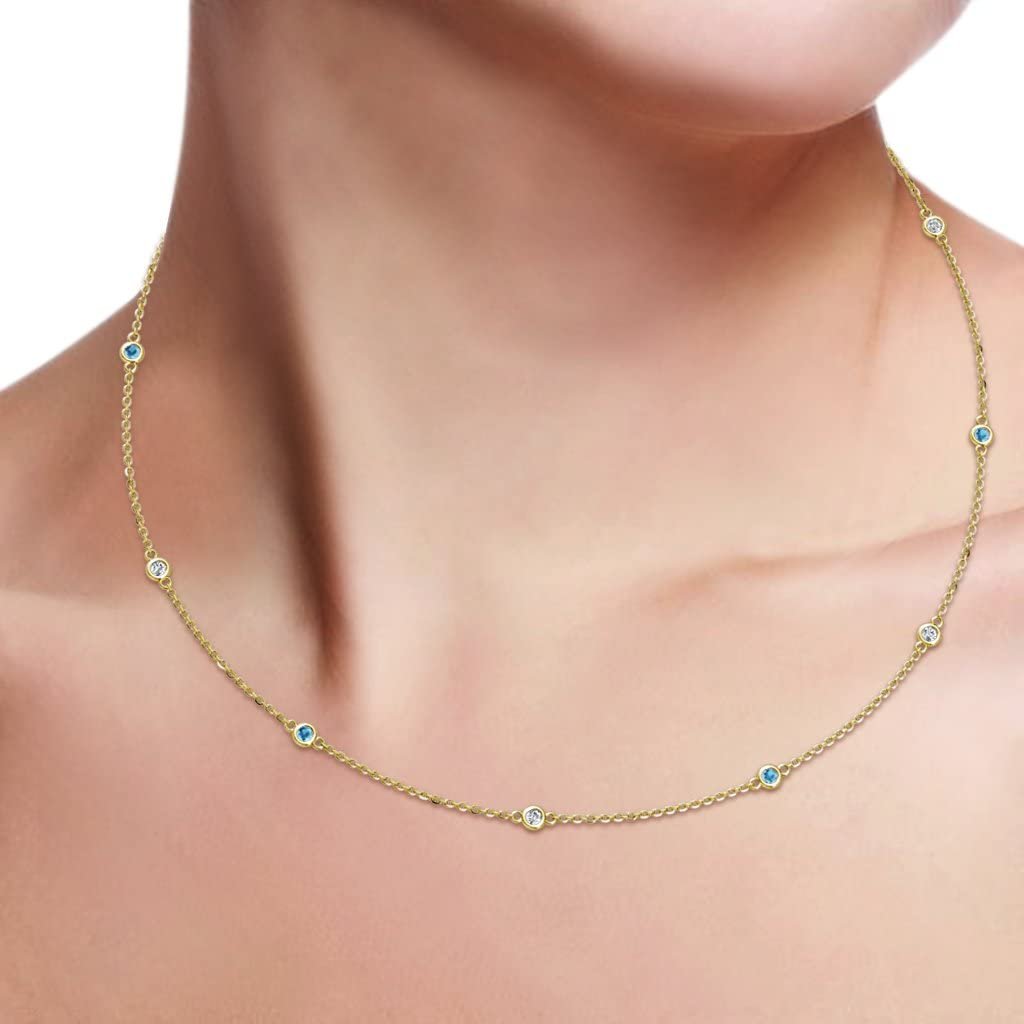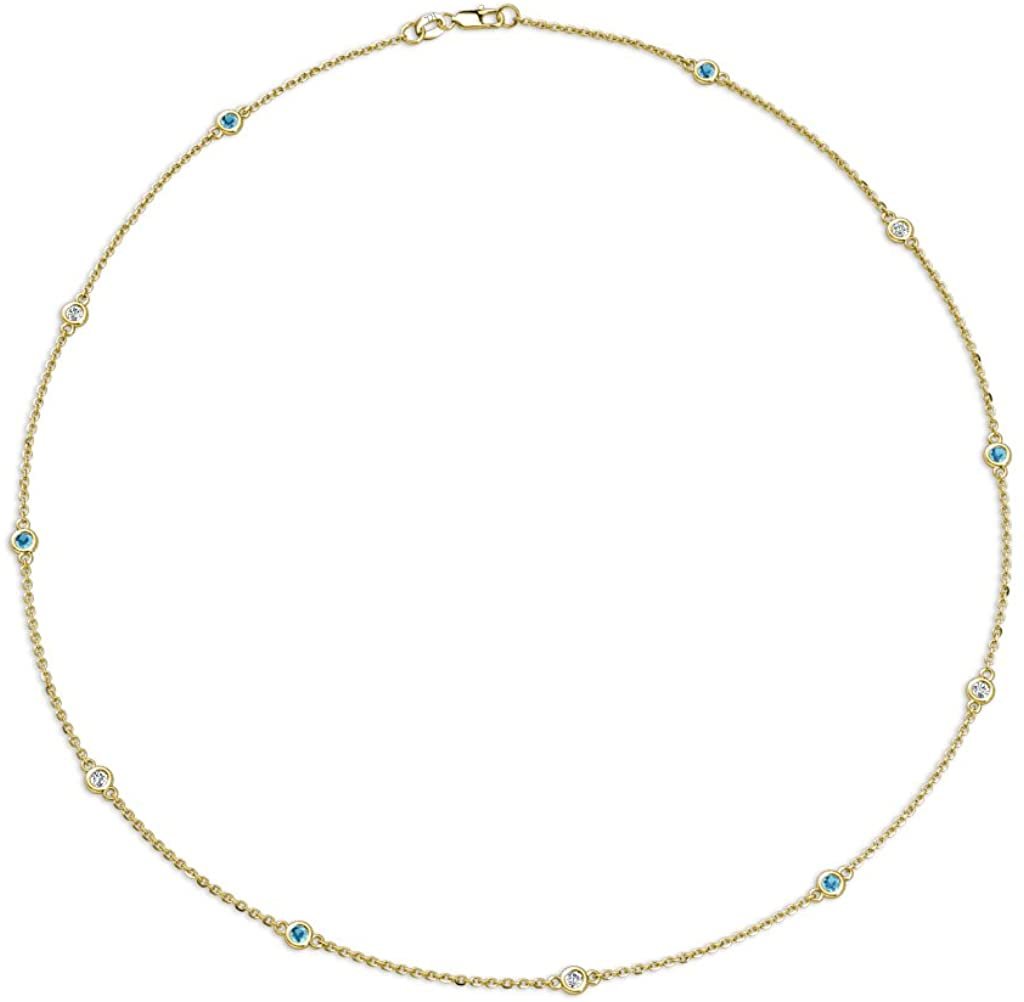 Petite London Blue Topaz & Diamond by Yard 11 Stations Necklace 0.35cttw 14K Yellow Gold.18 Inches Length